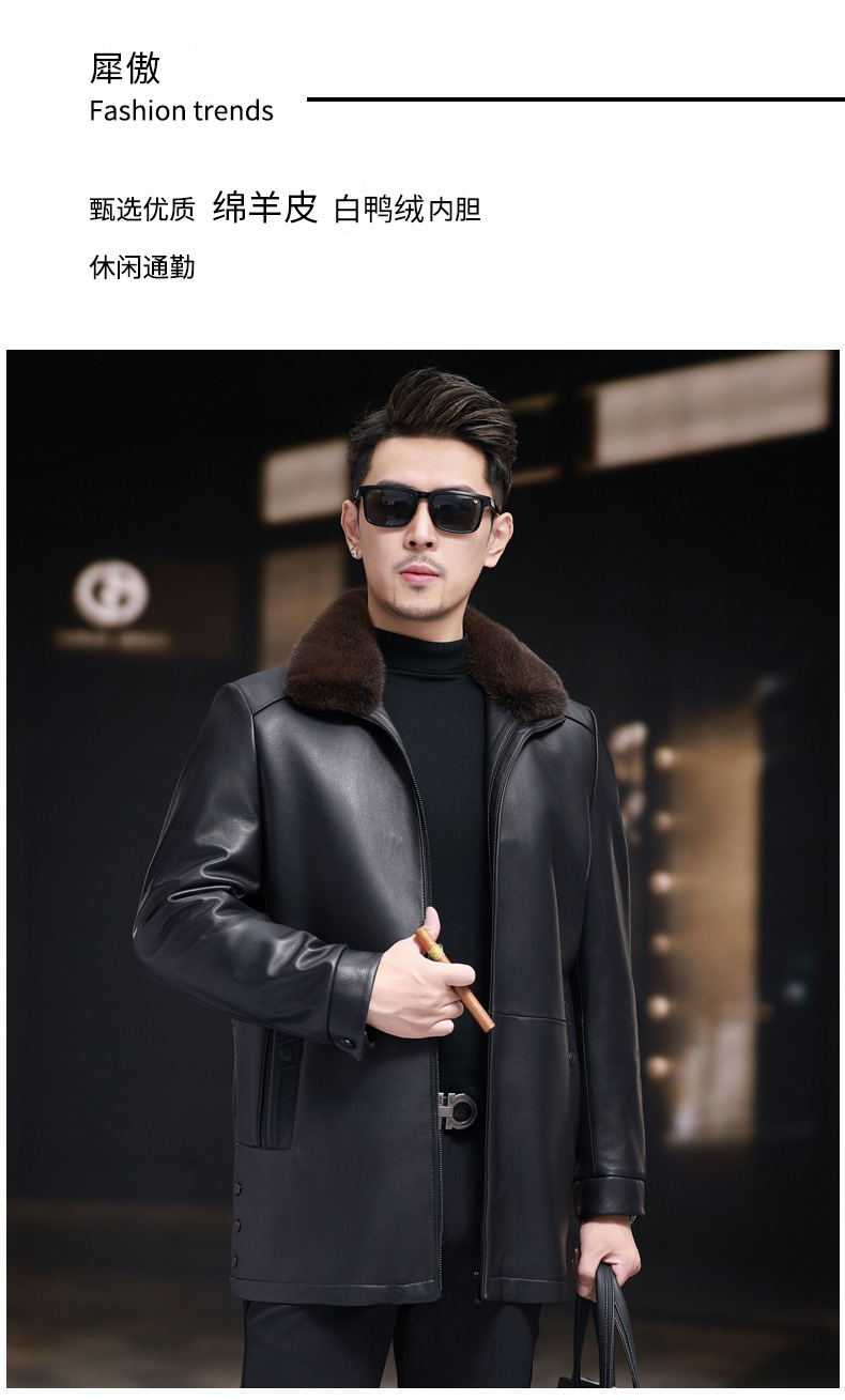 Áo khoác da cừu dành cho nam, thiết kế dáng dài vừa phải tạo sự lịch lãm. Bên trong có lớp áo lông vũ có thể tháo rời riêng biệt, giúp giữ ấm tốt khi trời lạnh. Cổ áo được điểm thêm lớp lông mềm mại, mang lại cảm giác ấm áp và thoải mái. Chất liệu da thật bền bỉ, phù hợp để mặc trong nhiều dịp khác nhau. Có thể kết hợp cùng quần tây hoặc quần jeans để tạo phong cách năng động, lịch sự. | Tên sản phẩm: Áo Da Nam Chất Liệu Da Bò - Thời Trang Nam | Mã sản phẩm: B5938 - Giá: 10.920.000đ | Mã nhà sản xuất: HADG-G06Hình ảnh sản phẩm