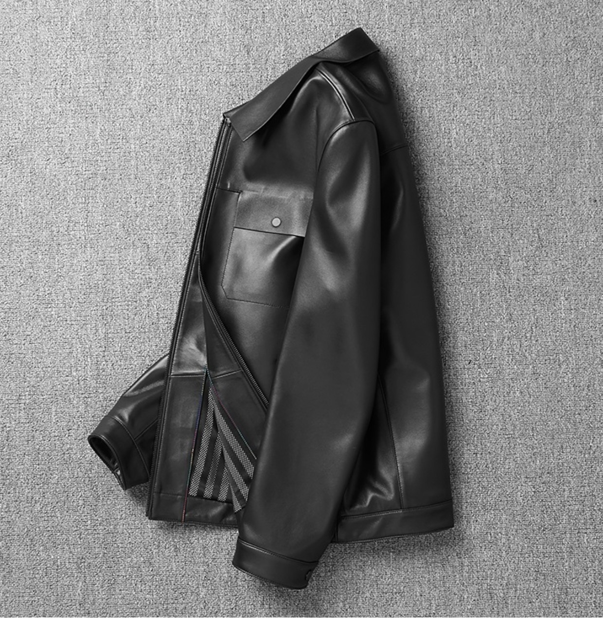 Áo khoác da nam thiết kế cổ bẻ, màu đen dễ phối đồ. Sản phẩm được làm từ chất liệu da cừu nguyên tấm, mang lại cảm giác mềm mại, thoải mái khi mặc. Kiểu dáng kết hợp hài hòa giữa phong cách thoải mái và nét lịch sự nhẹ, phù hợp cho nhiều dịp. Có thể mặc kết hợp với áo thun hoặc áo sơ mi tùy thích. Bảo quản nơi khô ráo, tránh ánh nắng trực tiếp. | Tên sản phẩm: Áo Da Nam Chất Liệu Da Bò Kín Cổ - Thời Trang Nam | Mã sản phẩm: B5181 - Giá: 4.220.000đ | Mã nhà sản xuất: HADGA-G06Hình ảnh sản phẩm