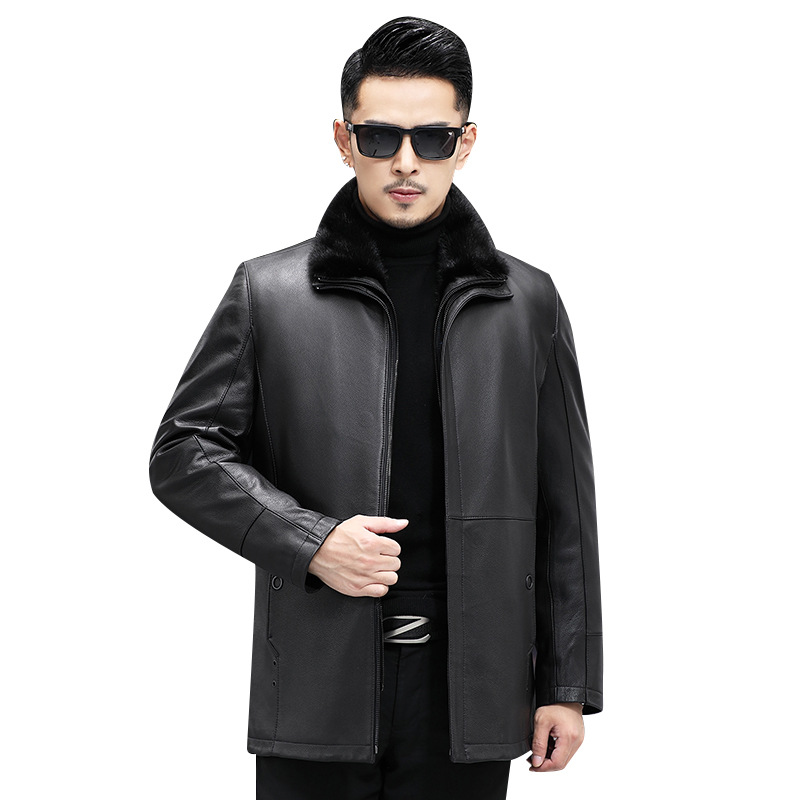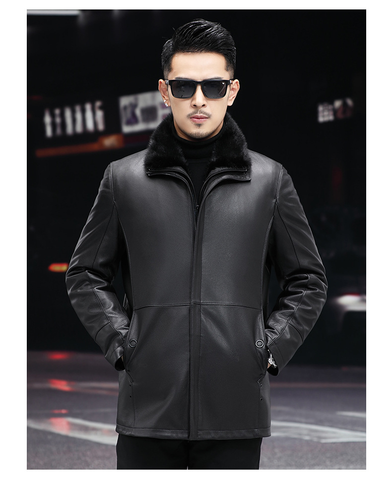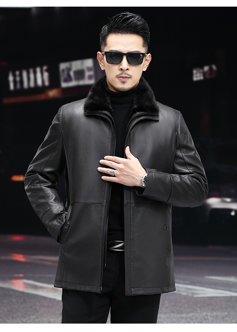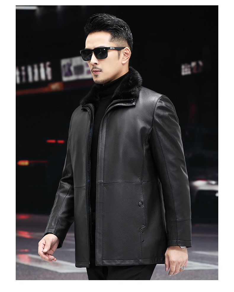 Áo khoác da thật dành cho nam, thiết kế với phần cổ áo bẻ và hạt vải li ti đặc trưng. Sản phẩm có lớp lót bên trong bằng da lông có thể tháo rời một cách dễ dàng, giúp giữ ấm hiệu quả trong mùa lạnh. Bạn có thể mặc nguyên chiếc áo hoặc chỉ sử dụng phần áo da bên ngoài khi thời tiết dịu mát hơn. Kiểu dáng nam tính, phù hợp cho nhiều dịp sử dụng hàng ngày. | Tên sản phẩm: Áo Da Nam Chất Liệu Da Bò Kín Cổ Hàng Mùa Xuân Thu Đông - Thời Trang Nam | Mã sản phẩm: B5160 - Giá: 18.500.000đ | Mã nhà sản xuất: HADGA-G06Hình ảnh sản phẩm