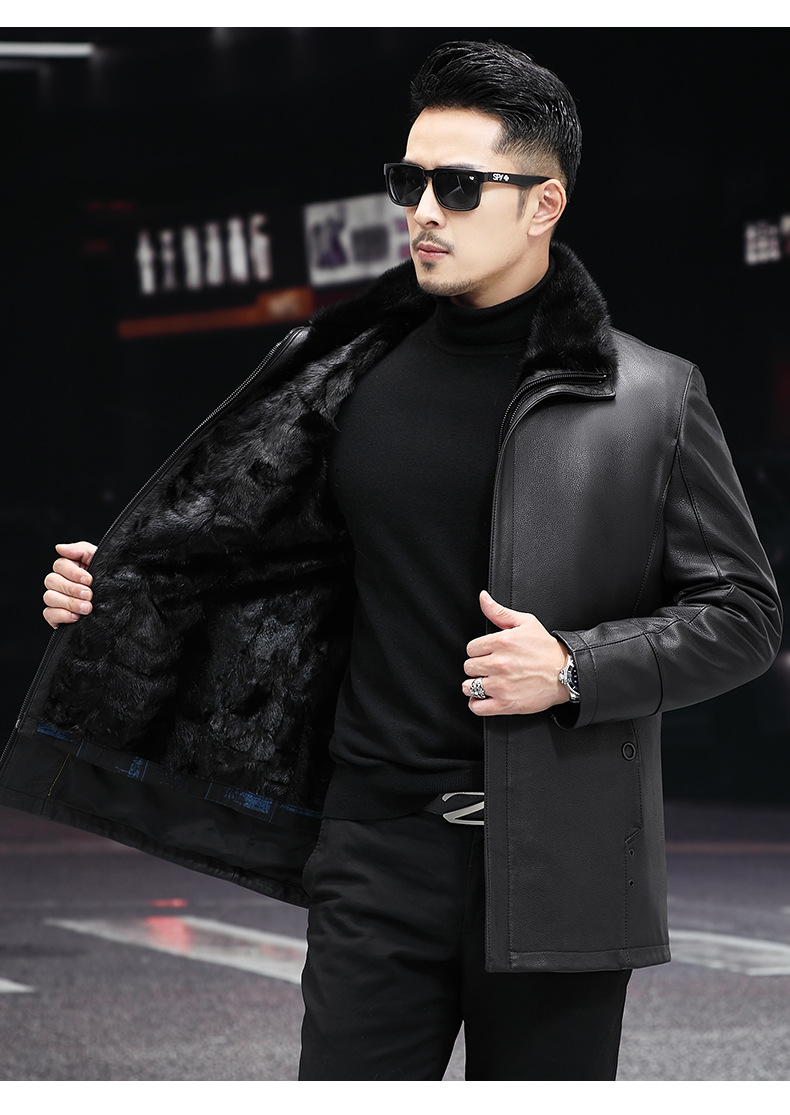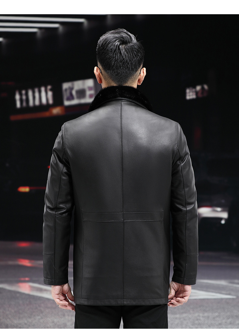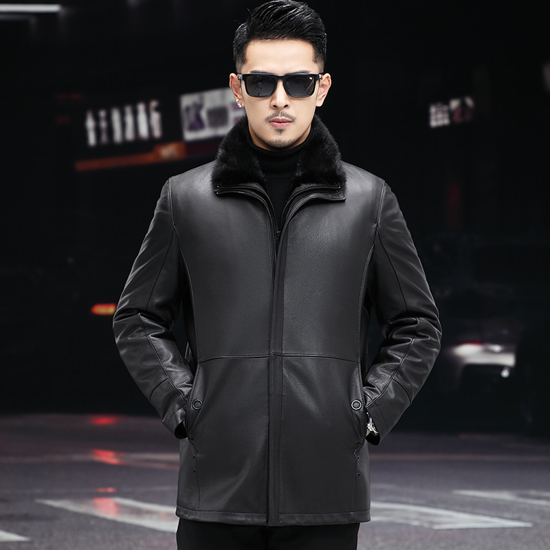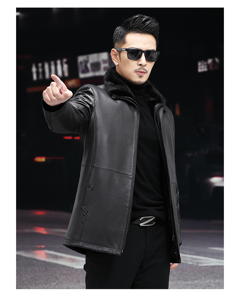 Áo khoác da thật dành cho nam, thiết kế với phần cổ áo bẻ và hạt vải li ti đặc trưng. Sản phẩm có lớp lót bên trong bằng da lông có thể tháo rời một cách dễ dàng, giúp giữ ấm hiệu quả trong mùa lạnh. Bạn có thể mặc nguyên chiếc áo hoặc chỉ sử dụng phần áo da bên ngoài khi thời tiết dịu mát hơn. Kiểu dáng nam tính, phù hợp cho nhiều dịp sử dụng hàng ngày. | Tên sản phẩm: Áo Da Nam Chất Liệu Da Bò Kín Cổ Hàng Mùa Xuân Thu Đông - Thời Trang Nam | Mã sản phẩm: B5160 - Giá: 18.500.000đ | Mã nhà sản xuất: HADGA-G06Hình ảnh sản phẩm