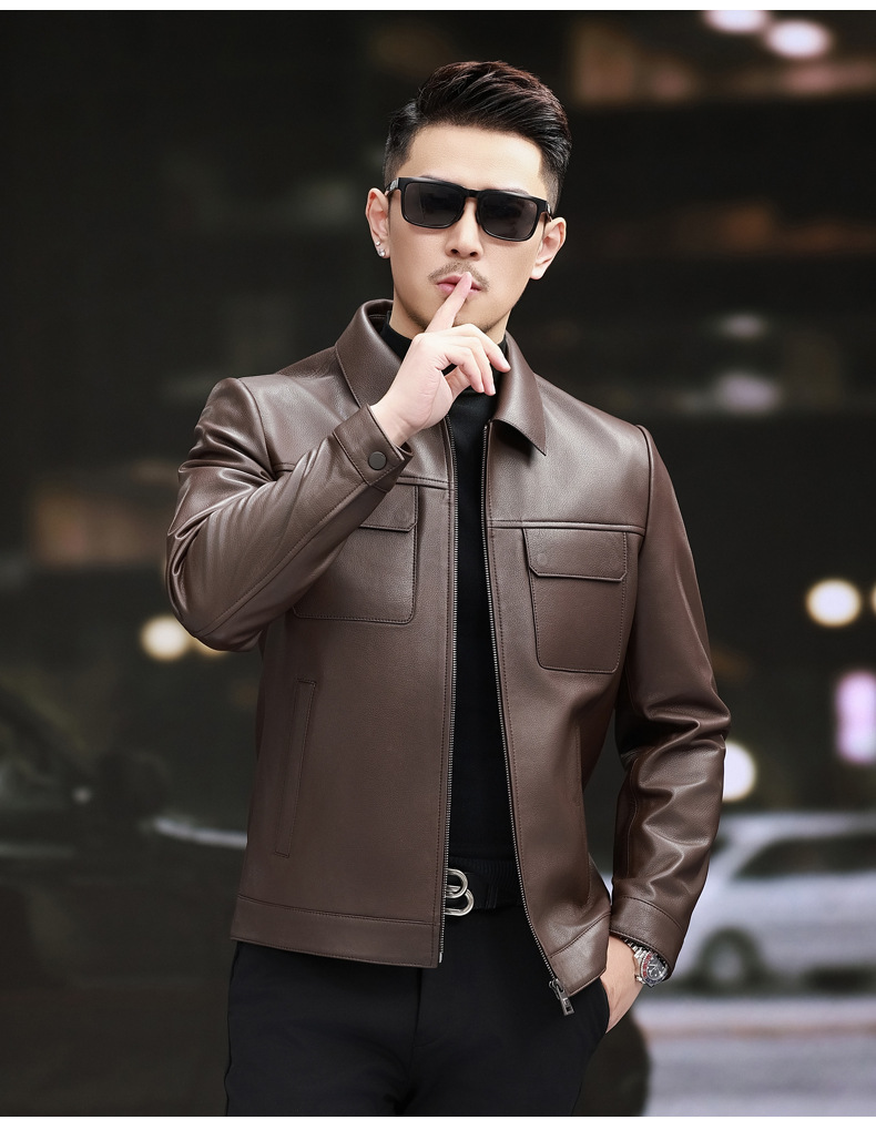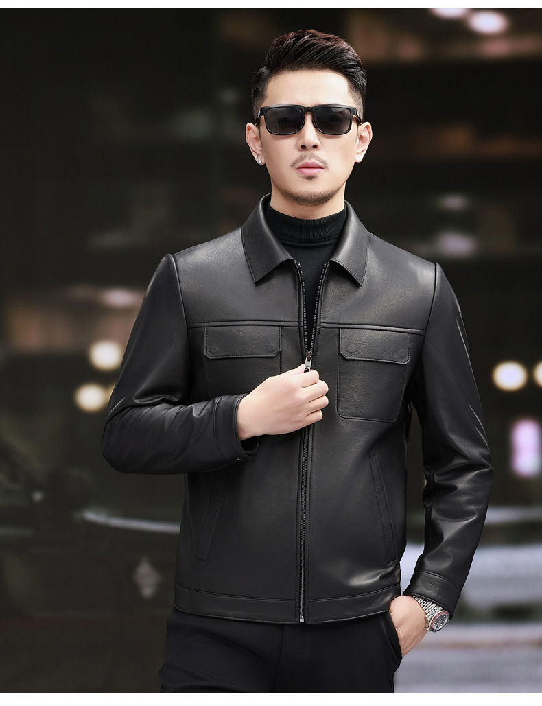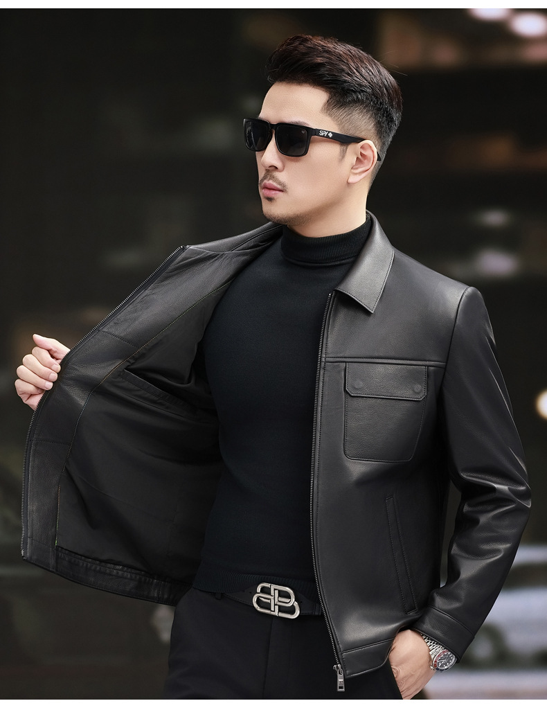 Áo khoác da nam thiết kế cổ bẻ, dáng ôm vừa vặn. Chất liệu da thật cho cảm giác mềm mại và bền lâu. Kiểu dáng phù hợp cho nhiều dịp, từ dạo phố đến gặp gỡ bạn bè. Dễ dàng kết hợp với quần jean hay quần âu thông thường. Mặc kèm áo thun hoặc áo sơ mi đều phù hợp. Bảo quản bằng cách treo móc và lau sạch bụi sau khi dùng. | Tên sản phẩm: Áo Da Nam Chất Liệu Da Bò Kín Cổ Hàng Mùa Xuân Thu Đông - Thời Trang Nam | Mã sản phẩm: B5833 - Giá: 5.370.000đ | Mã nhà sản xuất: HADG-G06Hình ảnh sản phẩm