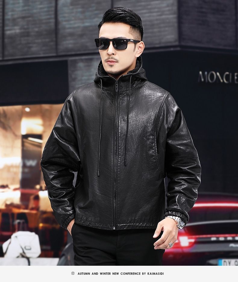 Áo khoác nam thiết kế thời trang với mũ trùm có thể tháo rời. Sản phẩm được làm từ chất liệu da thật tự nhiên, phần cánh tay rộng rãi tạo kiểu dáng phóng khoáng. Bên trong áo có lớp lông vũ nhẹ và ấm, phù hợp mặc trong thời tiết se lạnh. Bạn có thể kết hợp cùng quần jeans và giày thể thao để tạo phong cách năng động, trẻ trung hàng ngày. | Tên sản phẩm: Áo Da Nam Chất Liệu Da Bò Mũ Liền Hàng Mùa Xuân Thu Đông - Thời Trang Nam | Mã sản phẩm: B4899 - Giá: 6.480.000đ | Mã nhà sản xuất: HADGA-G06Hình ảnh sản phẩm