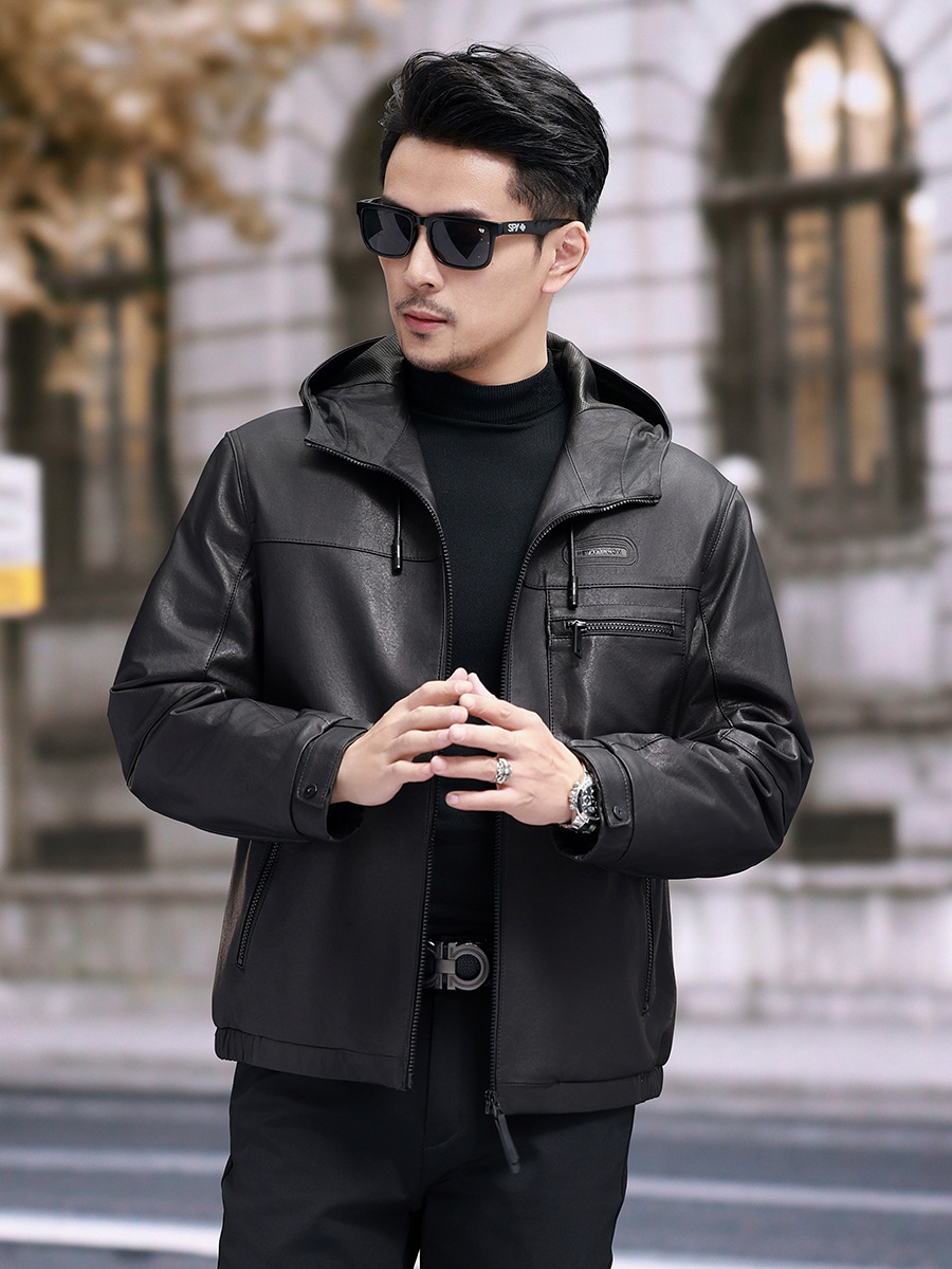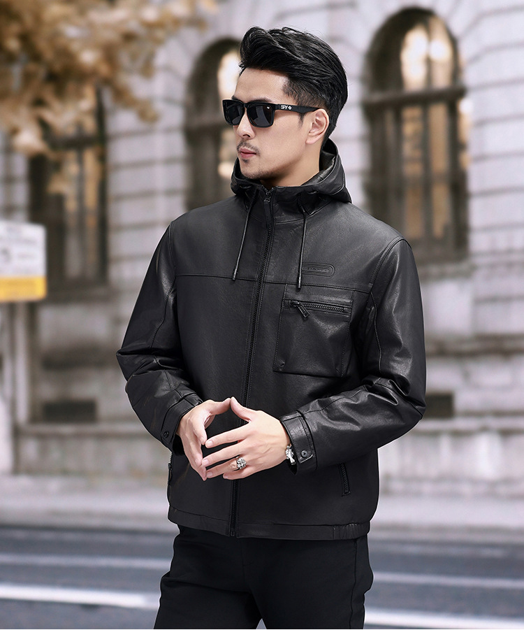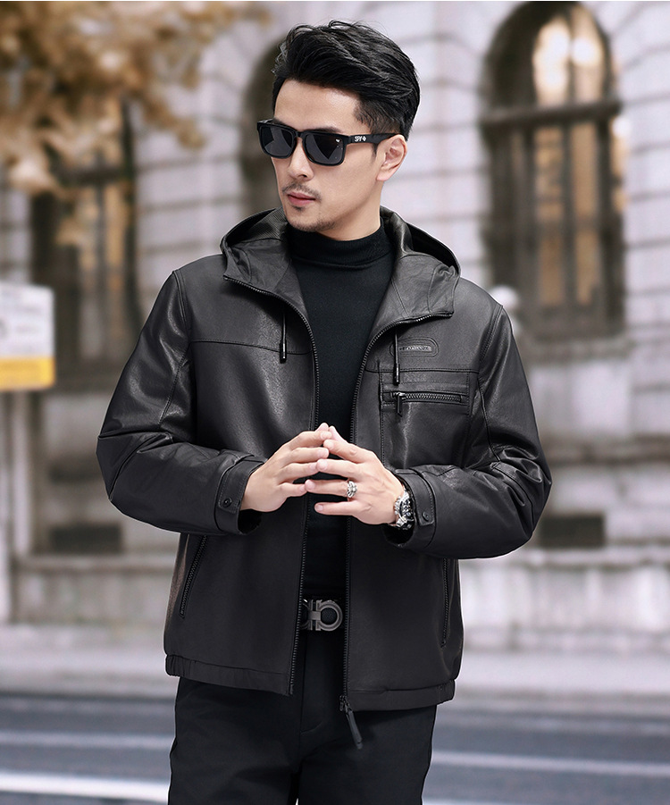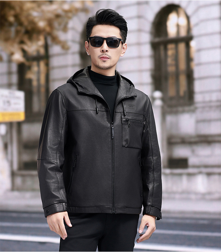 Áo khoác da cừu non dành cho nam, thiết kế ngắn gọn và có mũ đi kèm. Chất liệu da thật được xử lý một cách tỉ mỉ, mang đến cảm giác mềm mại và dễ chịu khi mặc. Bên trong áo được lót một lớp lông vũ nhẹ, giúp giữ ấm tốt trong những ngày trời se lạnh. Sản phẩm phù hợp để mặc khi đi làm, dạo phố hay trong các sinh hoạt hằng ngày. Chỉ cần khoác áo lên là bạn đã có một phong cách năng động và ấm áp. | Tên sản phẩm: Áo Da Nam Chất Liệu Da Bò Mũ Liền Hàng Mùa Xuân Thu Đông - Thời Trang Nam | Mã sản phẩm: B8184 - Giá: 8.140.000đ | Mã nhà sản xuất: HADG-G06Hình ảnh sản phẩm