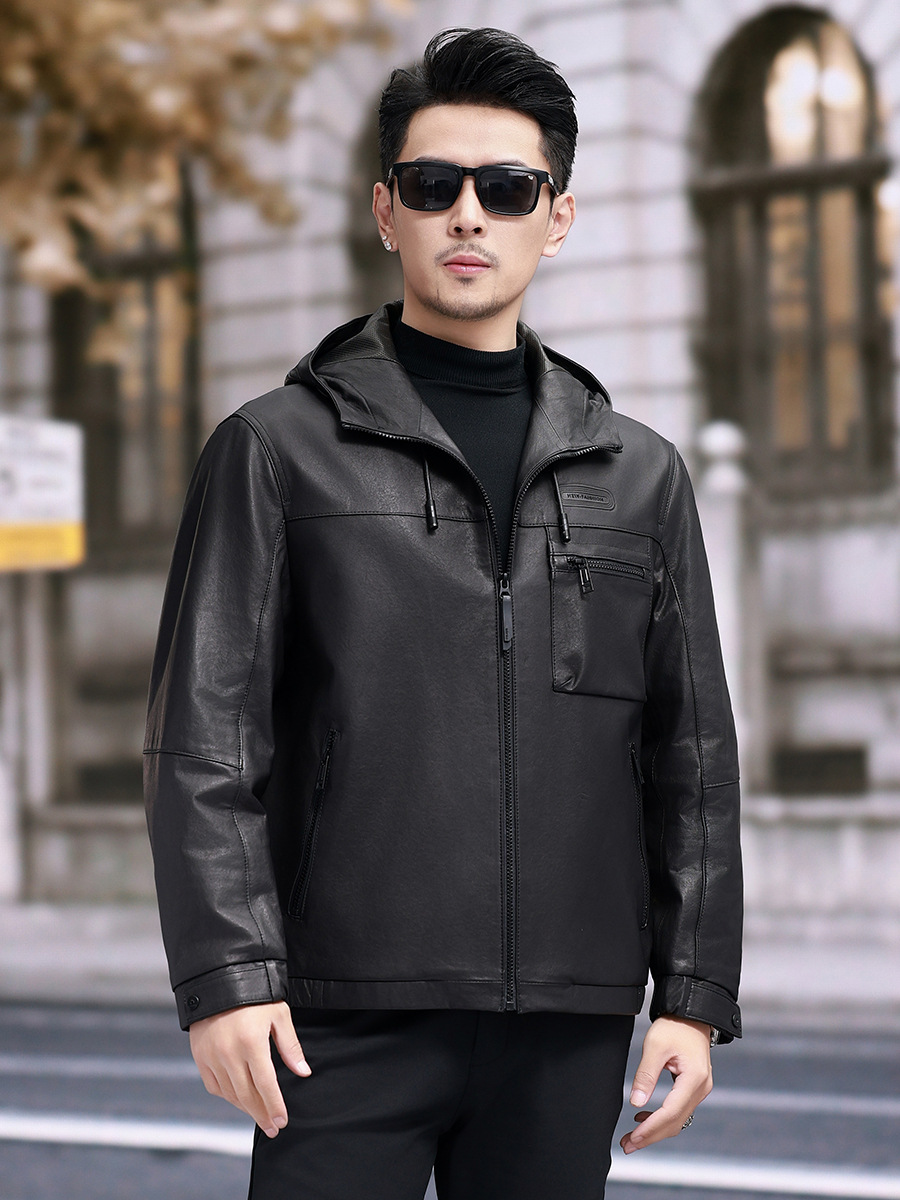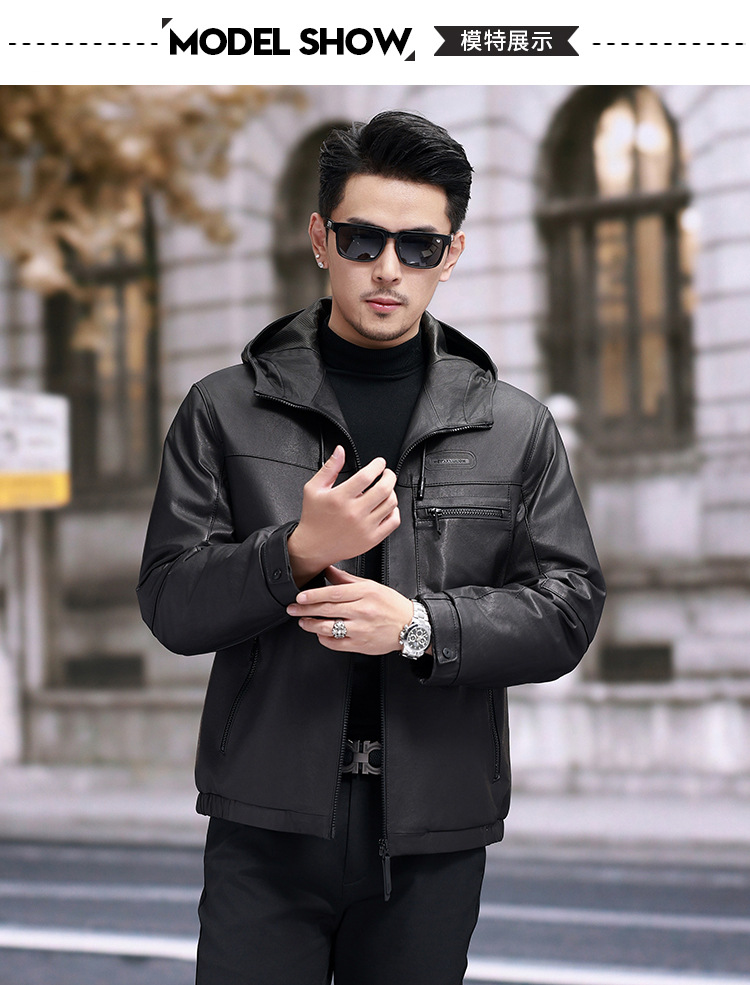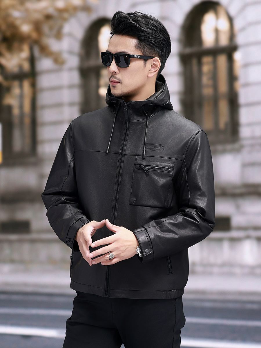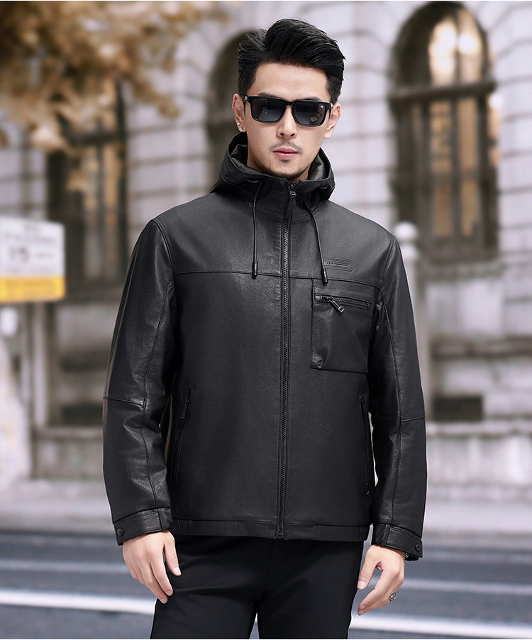 Áo khoác da cừu non dành cho nam, thiết kế ngắn gọn và có mũ đi kèm. Chất liệu da thật được xử lý một cách tỉ mỉ, mang đến cảm giác mềm mại và dễ chịu khi mặc. Bên trong áo được lót một lớp lông vũ nhẹ, giúp giữ ấm tốt trong những ngày trời se lạnh. Sản phẩm phù hợp để mặc khi đi làm, dạo phố hay trong các sinh hoạt hằng ngày. Chỉ cần khoác áo lên là bạn đã có một phong cách năng động và ấm áp. | Tên sản phẩm: Áo Da Nam Chất Liệu Da Bò Mũ Liền Hàng Mùa Xuân Thu Đông - Thời Trang Nam | Mã sản phẩm: B8184 - Giá: 8.140.000đ | Mã nhà sản xuất: HADG-G06Hình ảnh sản phẩm