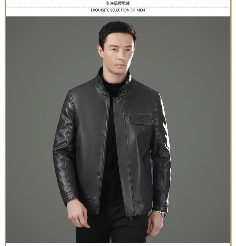 Áo khoác da dành cho nam, được làm từ chất liệu da cừu mềm mại và bền chắc. Kiểu dáng cổ đứng, phù hợp cho cả công sở và những dịp gặp gỡ thường ngày. Thiết kế này hướng đến sự trưởng thành và lịch sự nhẹ. Bạn có thể mặc kết hợp với áo thun hoặc áo sơ mi đều phù hợp. Sản phẩm dễ dàng bảo quản và sử dụng lâu dài. | Tên sản phẩm: Áo Da Nam Hàng Mùa Xuân Thu Đông Trung Niên - Thời Trang Nam | Mã sản phẩm: B5518 - Giá: 2.290.000đ | Mã nhà sản xuất: SHRYCT-G05Hình ảnh sản phẩm