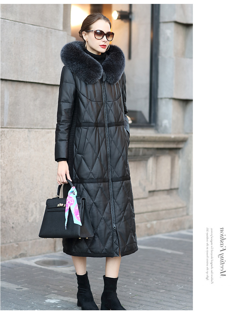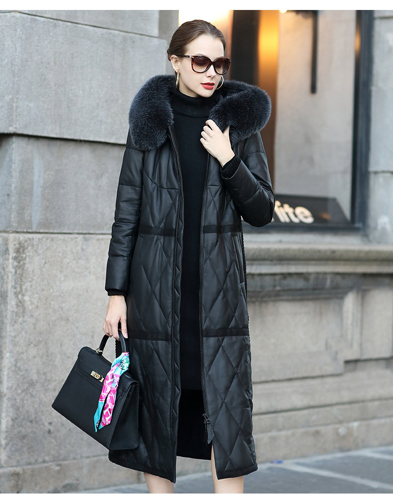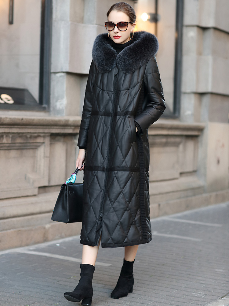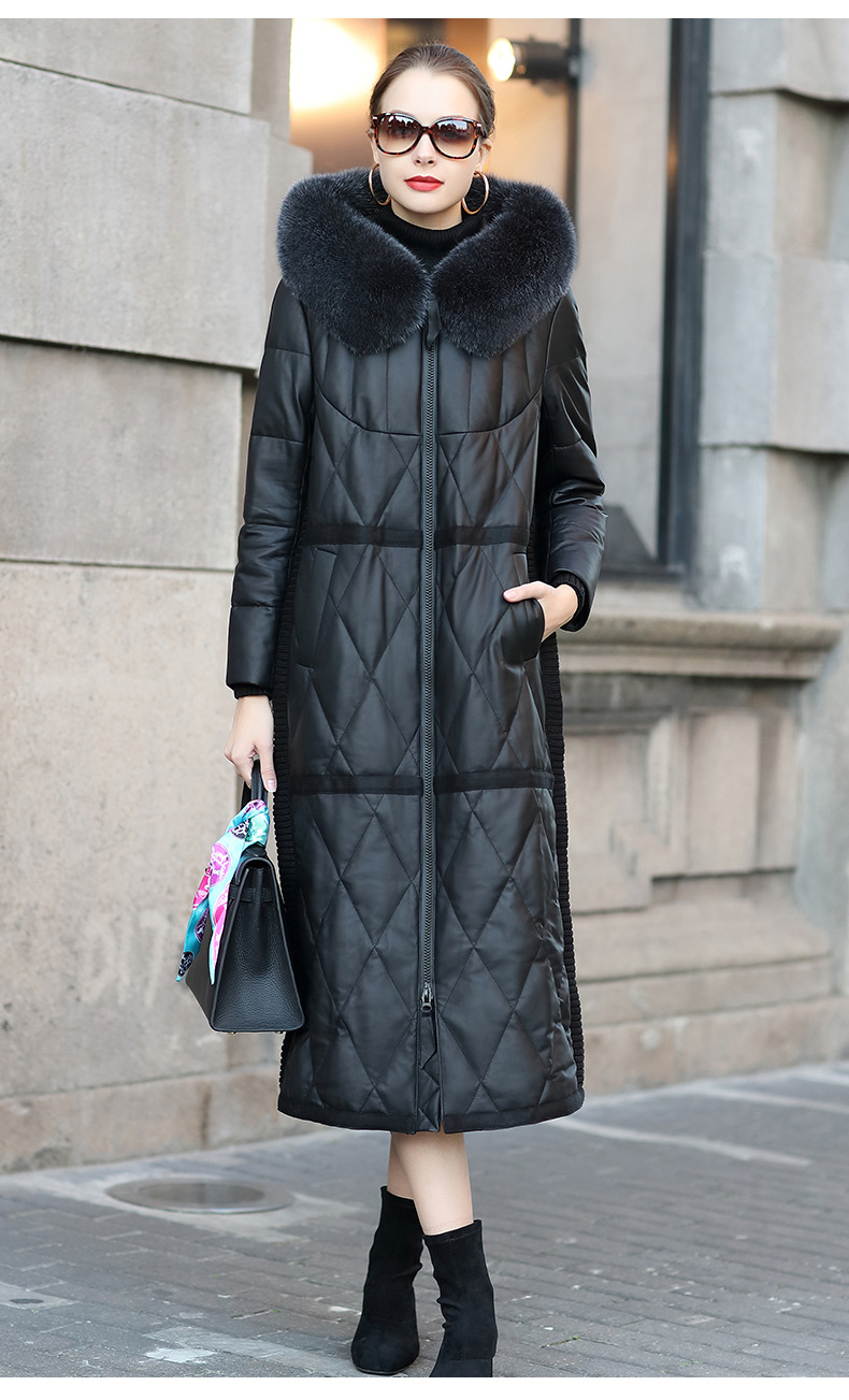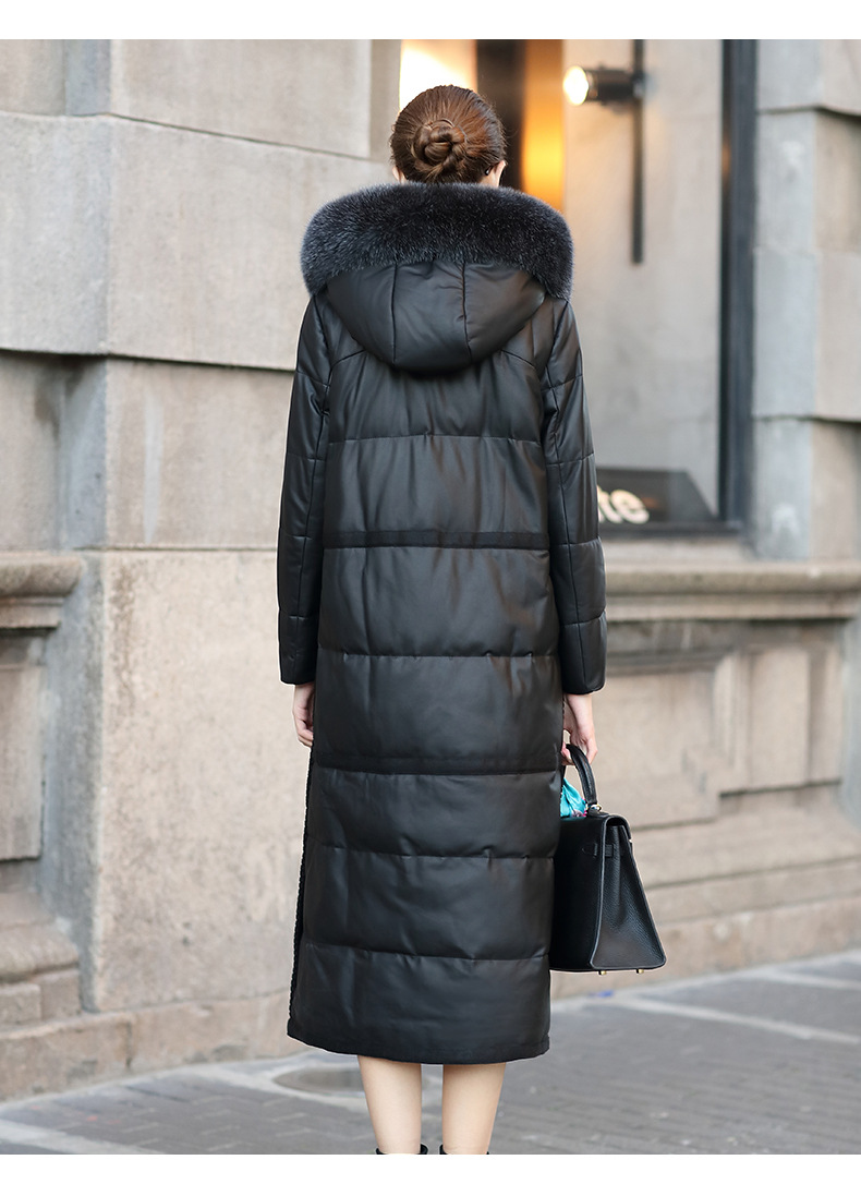 Áo khoác dành cho nữ, kiểu dáng dài qua gối, là lựa chọn ấm áp cho mùa lạnh. Sản phẩm được làm từ chất liệu da thật kết hợp với lớp lông vũ bên trong, giữ nhiệt tốt. Phần mũ trùm có viền lông chồn tạo điểm nhấn. Kiểu áo khoác này mặc kèm với quần jeans và áo len đều phù hợp. Khi mặc xong, nên treo lên móc để giữ form áo được lâu dài. | Tên sản phẩm: Áo Da Nữ Chất Liệu Da Bò Big Size Ngoại Cỡ Dài Quá Gối Mũ Liền Hàng Mùa Xuân Thu Đông - Thời Trang Nữ | Mã sản phẩm: T3738 - Giá: 9.440.000đ | Mã nhà sản xuất: HADA-G06Hình ảnh sản phẩm