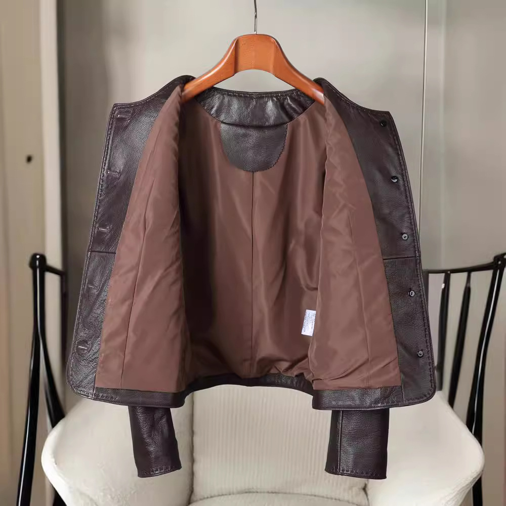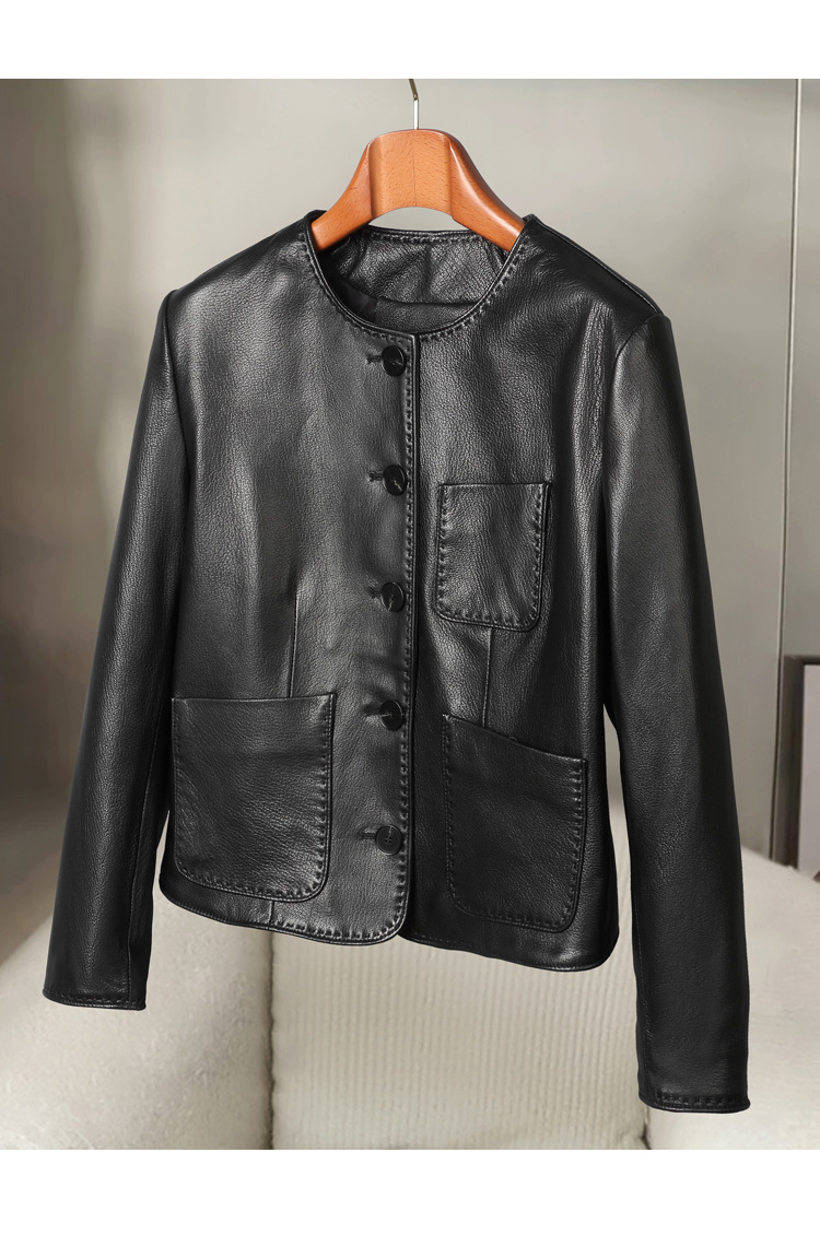 Áo khoác da dành cho nữ, được làm từ chất liệu da cừu mềm mại và bền đẹp. Kiểu dáng ngắn, ôn cơ thể một cách thanh lịch. Cổ áo thiết kế tròn, tạo vẻ nhẹ nhàng và dễ dàng phối đồ. Đây là mẫu áo kiểu dáng nhỏ gọn, phong cách thoải mái, phù hợp cho thời tiết mùa xuân và mùa thu. Bạn có thể mặc kết hợp với quần jean hoặc váy để tạo nên những bộ trang phục đẹp mắt hàng ngày. | Tên sản phẩm: Áo Da Nữ Chất Liệu Da Bò Dáng Ôm Hàng Mùa Xuân Thu Đông - Thời Trang Nữ | Mã sản phẩm: B4972 - Giá: 3.690.000đ | Mã nhà sản xuất: HADGA-G06Hình ảnh sản phẩm
