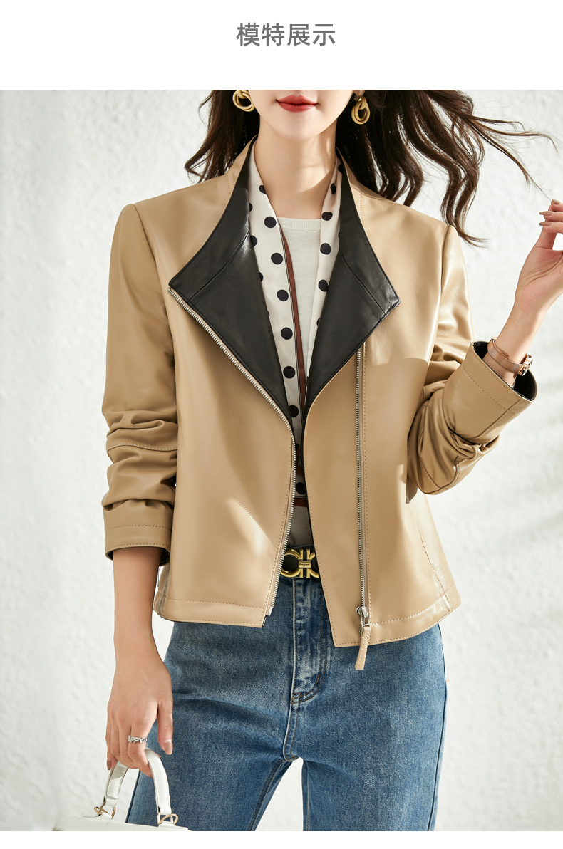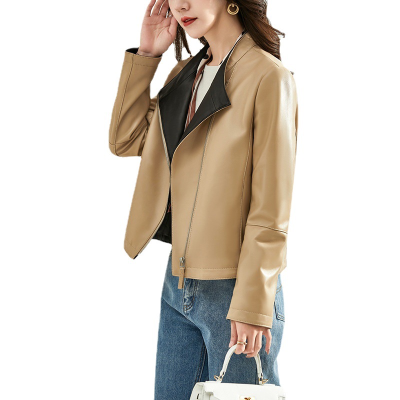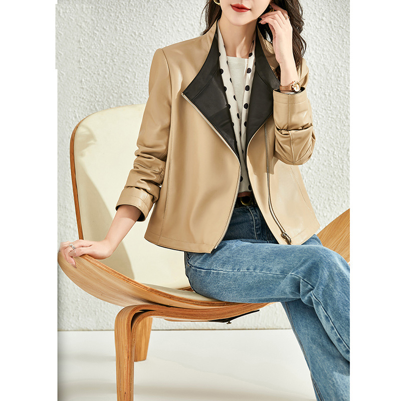 Áo khoác da cổ lọ dành cho nữ, thiết kế ngắn gọn và ôn cơ thể một cách tinh tế. Chất liệu từ da cừu mềm mại, mang lại cảm giác dễ chịu khi mặc. Kiểu dáng đơn giản, không có cổ áo, phù hợp cho những ngày thời tiết mát mẻ. Dễ dàng phối cùng nhiều loại trang phục khác nhau như quần jeans hay váy. Sử dụng hàng ngày và bảo quản nơi khô ráo để giữ được vẻ đẹp lâu bền. | Tên sản phẩm: Áo Da Nữ Chất Liệu Da Bò Dáng Ôm Hàng Mùa Xuân Thu Đông - Thời Trang Nữ | Mã sản phẩm: T3732 - Giá: 4.440.000đ | Mã nhà sản xuất: HADA-G06Hình ảnh sản phẩm