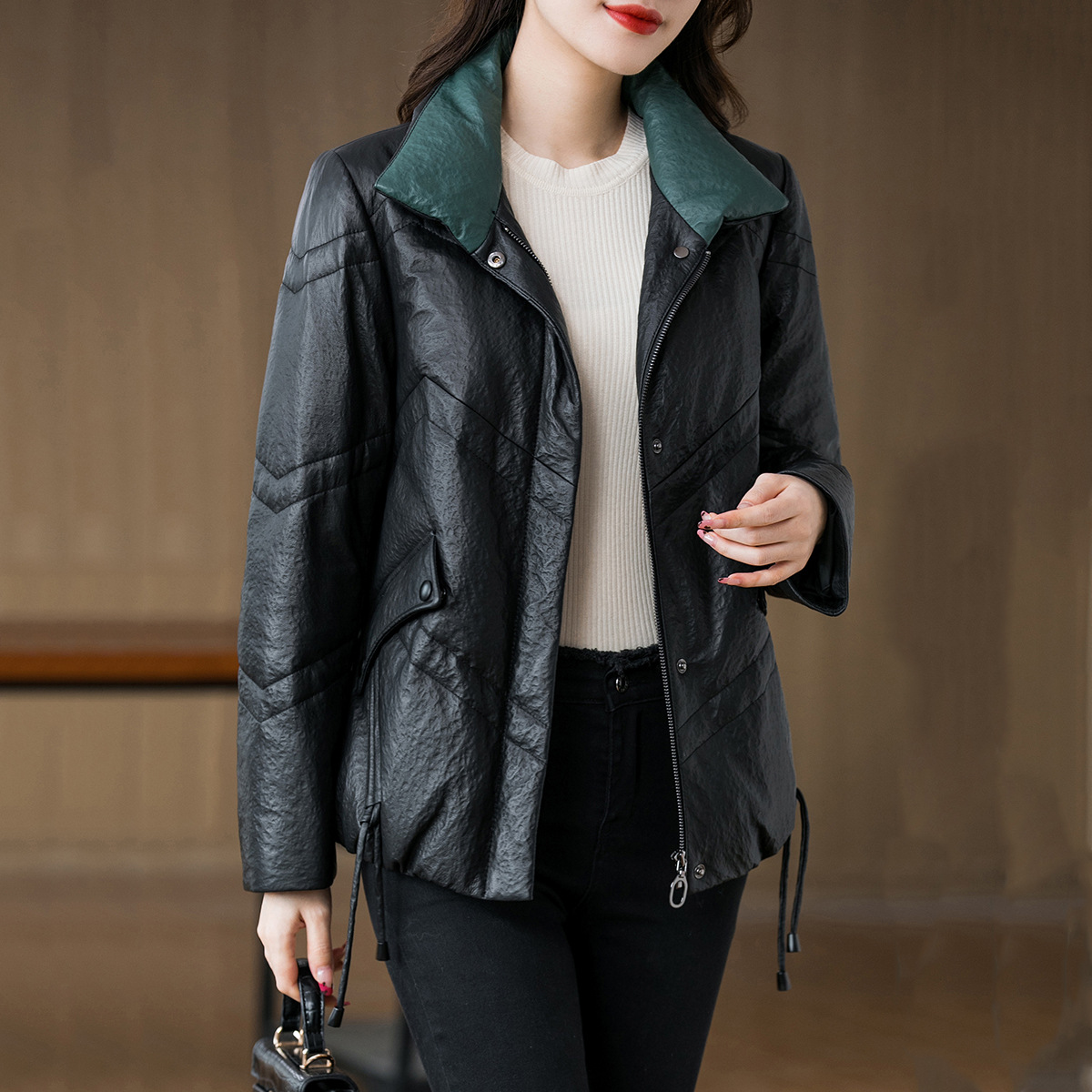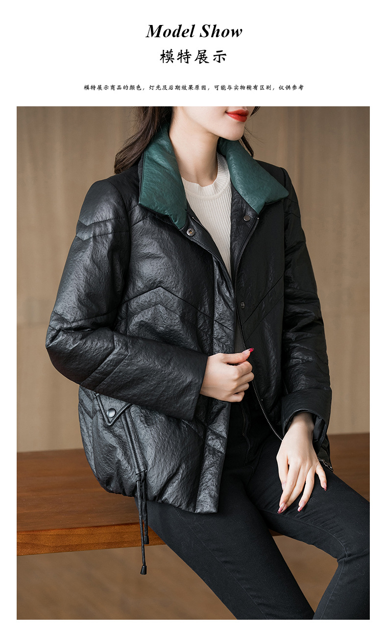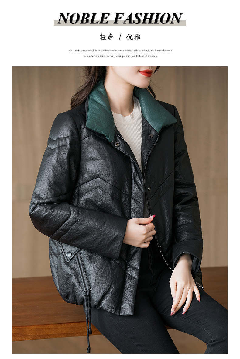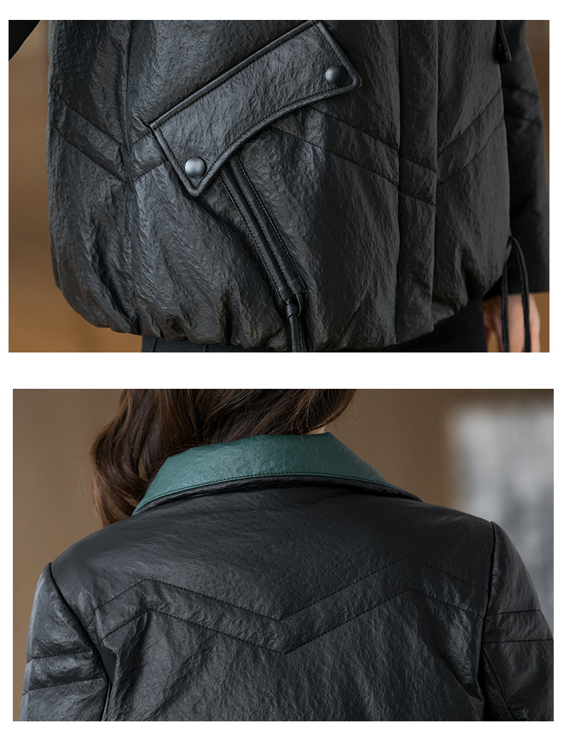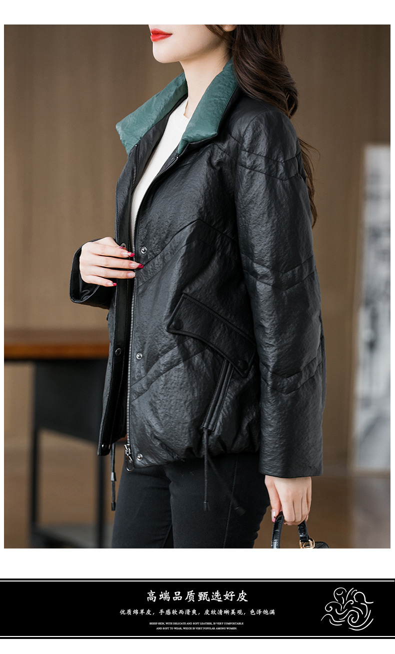 Áo khoác da cừu ngắn dáng đơn giản, có lớp lông vũ bên trong giữ ấm tốt cho mùa lạnh. Sản phẩm làm từ chất liệu da cừu mềm mại, màu đen dễ phối đồ với cổ vuông thanh lịch. Mặc kèm áo thun hoặc áo len bên trong để giữ ấm, phù hợp dùng khi đi làm hay gặp mặt bạn bè. Dùng khăn mềm lau nhẹ bề mặt sau khi sử dụng. | Tên sản phẩm: Áo Da Nữ Chất Liệu Da Bò Hàng Mùa Xuân Thu Đông - Thời Trang Nữ | Mã sản phẩm: B5111 - Giá: 5.090.000đ | Mã nhà sản xuất: HADGA-G06Hình ảnh sản phẩm