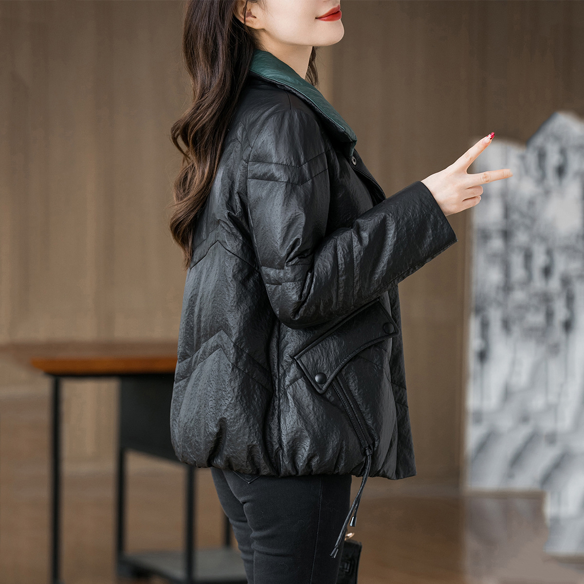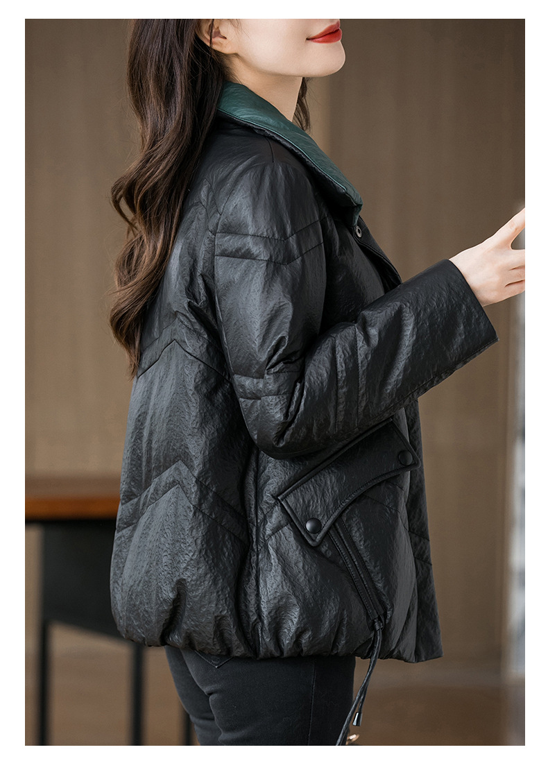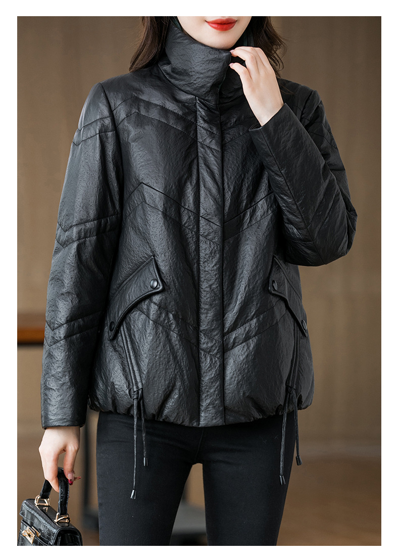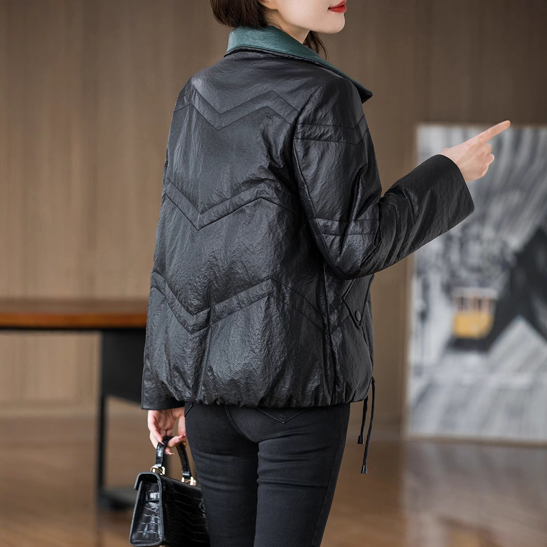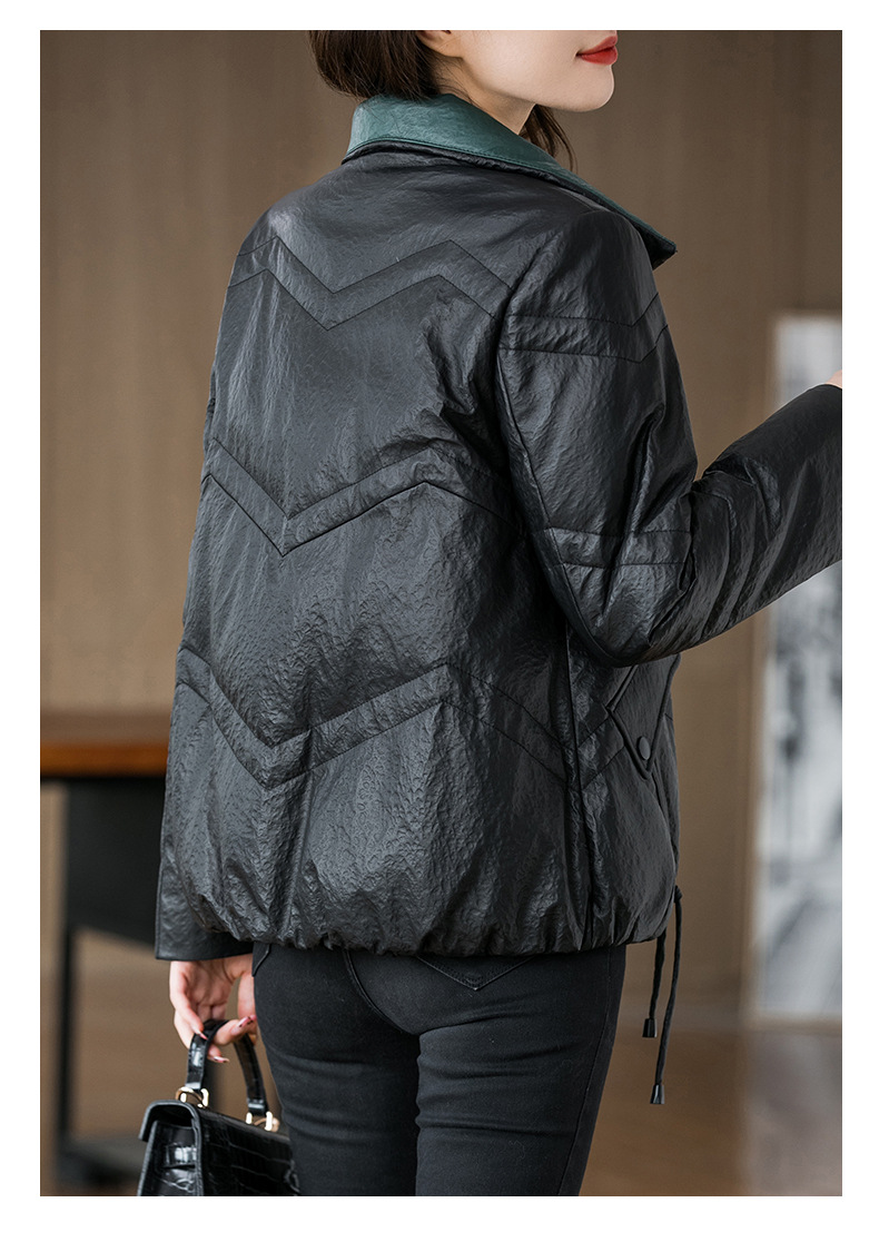 Áo khoác da cừu ngắn dáng đơn giản, có lớp lông vũ bên trong giữ ấm tốt cho mùa lạnh. Sản phẩm làm từ chất liệu da cừu mềm mại, màu đen dễ phối đồ với cổ vuông thanh lịch. Mặc kèm áo thun hoặc áo len bên trong để giữ ấm, phù hợp dùng khi đi làm hay gặp mặt bạn bè. Dùng khăn mềm lau nhẹ bề mặt sau khi sử dụng. | Tên sản phẩm: Áo Da Nữ Chất Liệu Da Bò Hàng Mùa Xuân Thu Đông - Thời Trang Nữ | Mã sản phẩm: B5111 - Giá: 5.090.000đ | Mã nhà sản xuất: HADGA-G06Hình ảnh sản phẩm