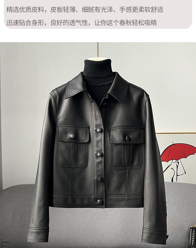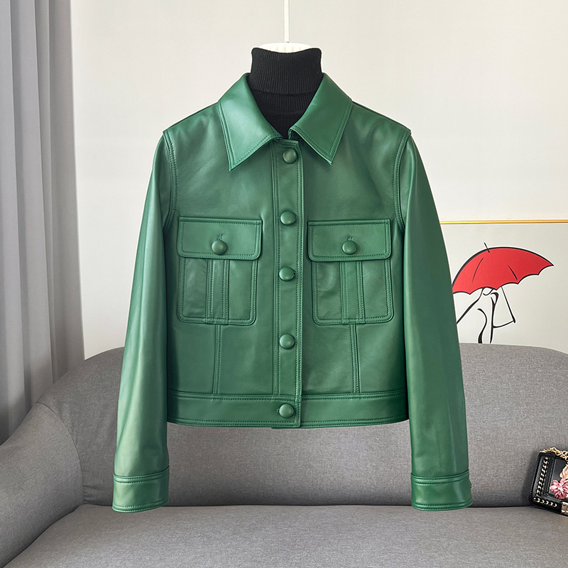 Áo khoác da cổ ngắn dành cho nữ, được làm từ chất liệu da cừu mềm mại và bền đẹp. Kiểu dáng áo ngắn, phần cổ vuông thanh lịch, phối cùng phong cách lao động trẻ trung, năng động. Sản phẩm dễ dàng phối hợp với nhiều loại trang phục khác nhau như quần jeans hay váy. Bạn chỉ cần mặc trực tiếp và bảo quản nơi khô ráo để giữ áo luôn đẹp. | Tên sản phẩm: Áo Da Nữ Chất Liệu Da Bò Hàng Mùa Xuân Thu Đông - Thời Trang Nữ | Mã sản phẩm: B5777 - Giá: 3.610.000đ | Mã nhà sản xuất: HADG-G06Hình ảnh sản phẩm