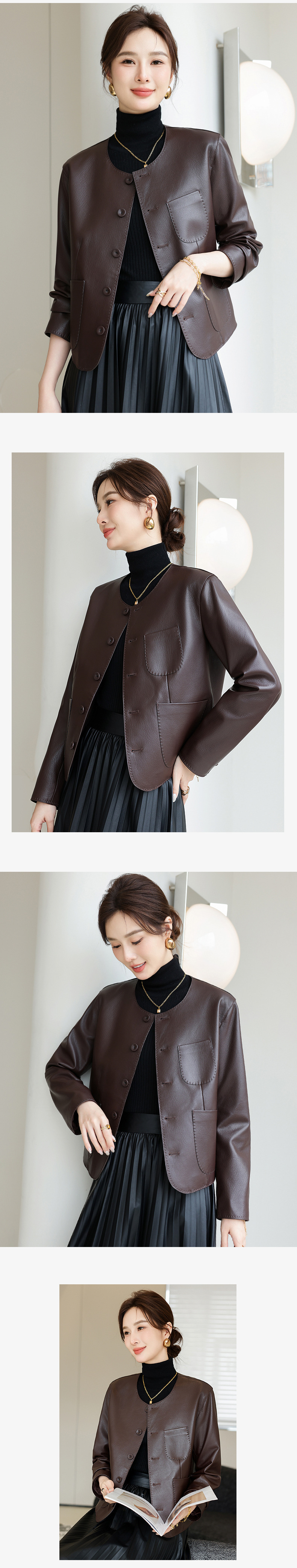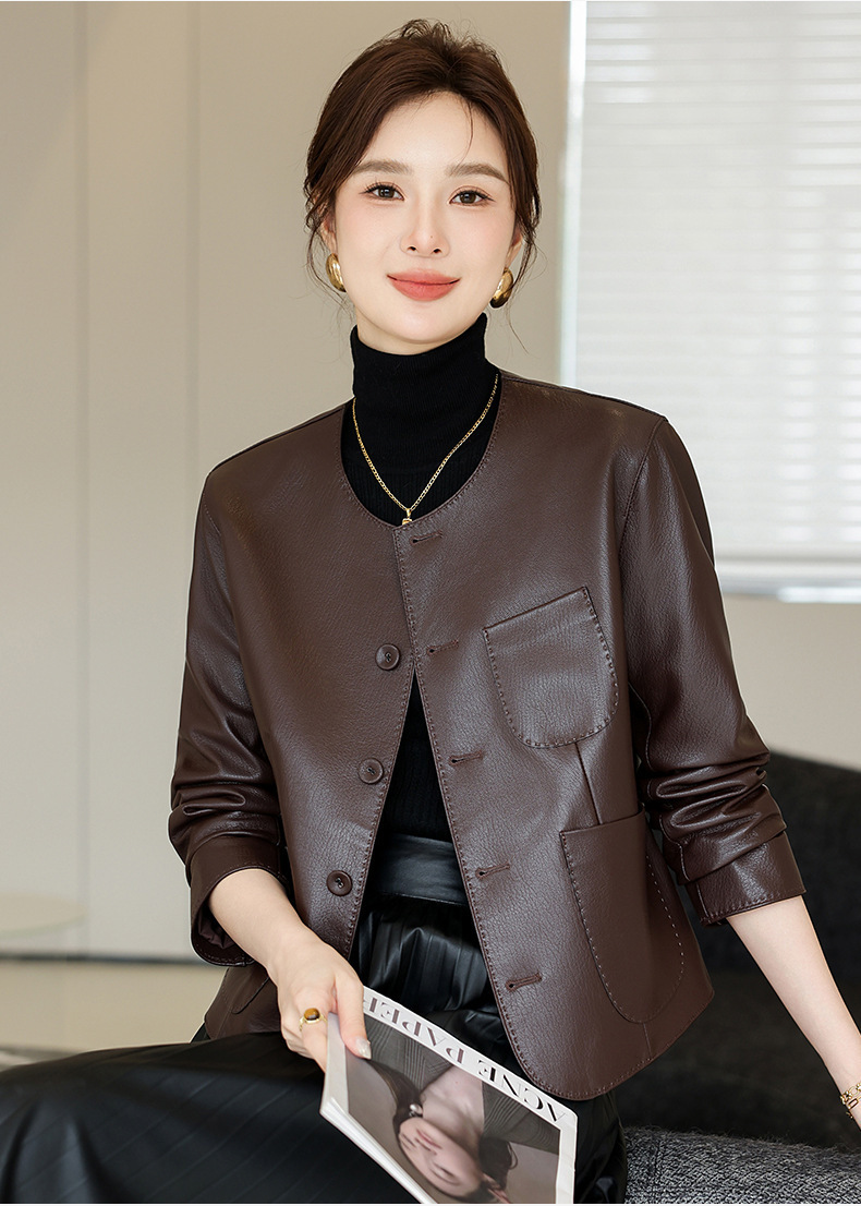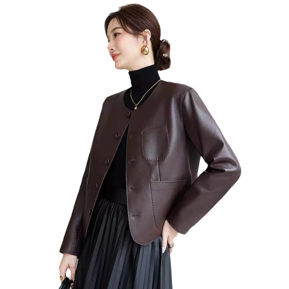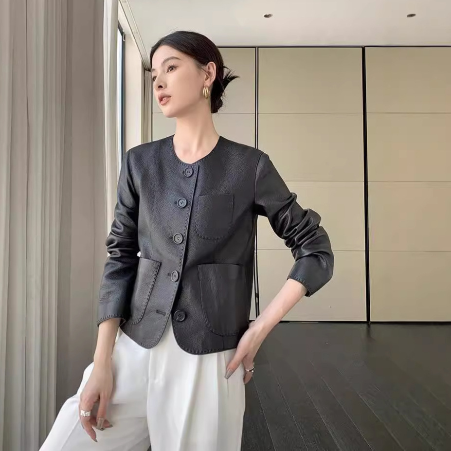 Áo khoác da thật dành cho nữ, kiểu dáng ngắn gọn gàng. Chất liệu làm từ lớp da dê mềm mại bên ngoài, mang đến cảm giác dễ chịu và bền lâu. Thiết kế cổ tròn tạo nét đẹp giản dị, phù hợp mặc trong tiết trời xuân hay thu. Sản phẩm kết hợp phong cách nhẹ nhàng với vẻ ngoài năng động. Khi sử dụng, chỉ cần giữ sạch sẽ và bảo quản nơi khô ráo để áo luôn đẹp theo thời gian. | Tên sản phẩm: Áo Da Nữ Chất Liệu Da Bò Hàng Mùa Xuân Thu Đông - Thời Trang Nữ | Mã sản phẩm: B5998 - Giá: 5.090.000đ | Mã nhà sản xuất: HADG-G06Hình ảnh sản phẩm