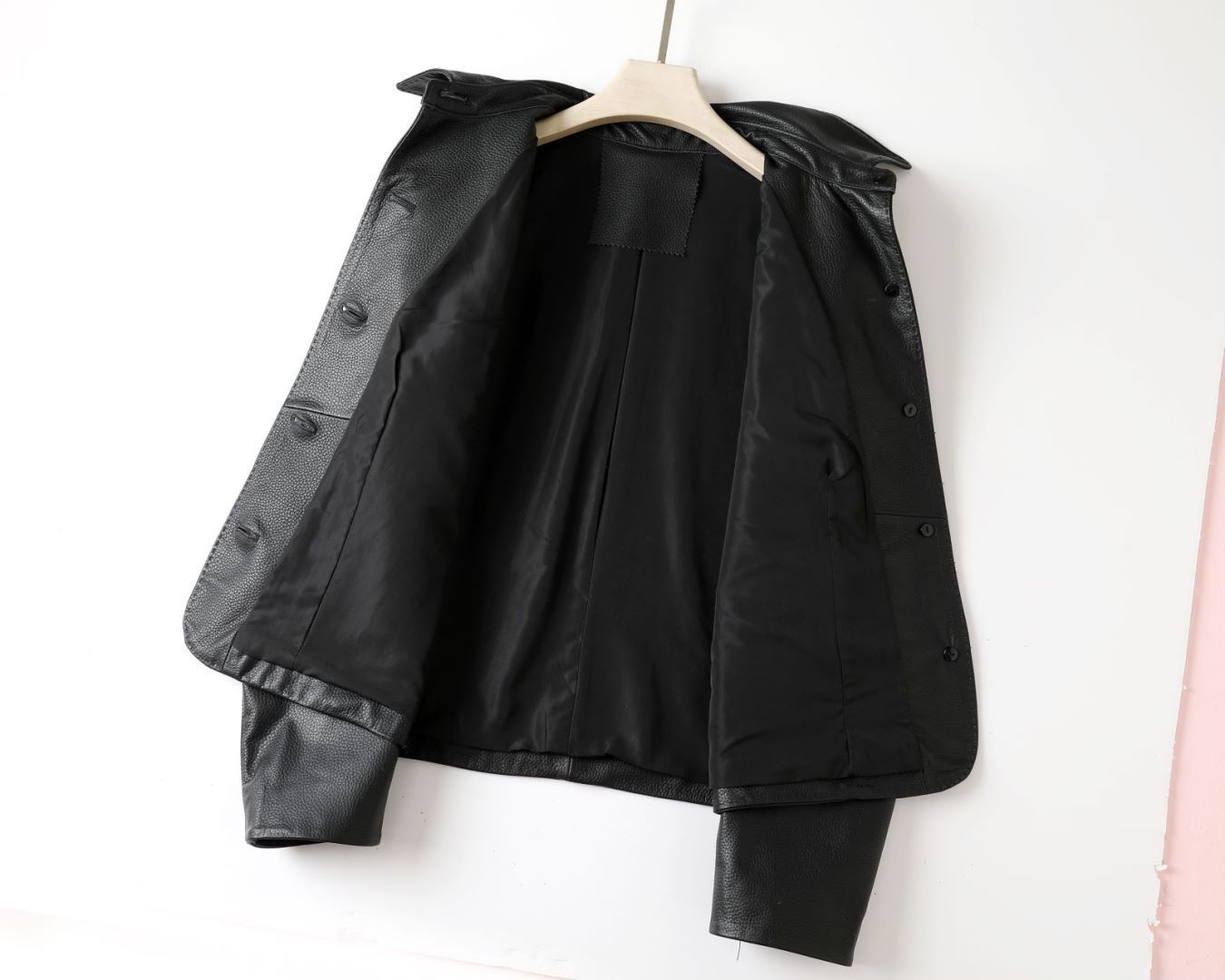 Áo khoác da dáng ngắn, kiểu cổ vuông thanh lịch, mang phong cách trẻ trung, hiện đại. Chất liệu da thật mềm mại, giữ ấm tốt và rất bền đẹp. Sản phẩm dễ dàng phối cùng nhiều loại trang phục như quần tây, váy liền để tạo điểm nhấn. Bạn chỉ cần mặc trực tiếp và lau chùi nhẹ nhàng bằng khăn mềm khi bám bụi để giữ vẻ đẹp cho áo. | Tên sản phẩm: Áo Da Nữ Chất Liệu Da Bò Hàng Mùa Xuân Thu Đông - Thời Trang Nữ | Mã sản phẩm: B8162 - Giá: 4.440.000đ | Mã nhà sản xuất: HADG-G06Hình ảnh sản phẩm