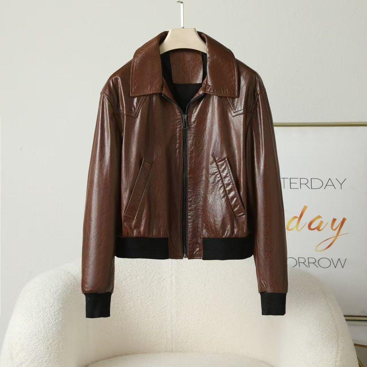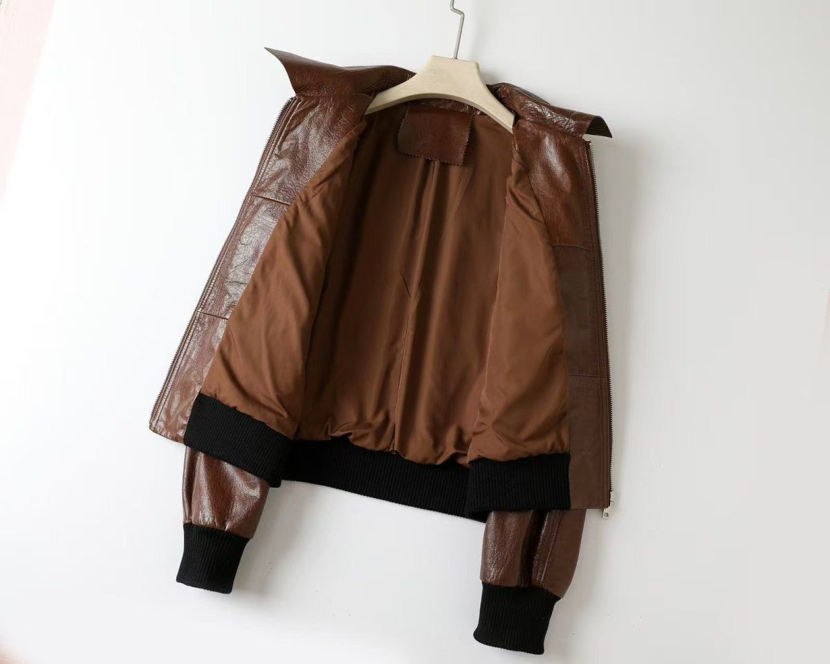 Áo khoác da kiểu dáng ngắn phong cách mô tô, thiết kế cổ bẻ mang đến vẻ ngoài cá tính. Chất liệu da bò xử lý kỹ thuật nước sáp cho bề mặt mịn và độ bền tốt. Kiểu dáng rộng rãi tạo cảm giác thoải mái, dễ dàng phối cùng nhiều trang phục khác nhau. Sản phẩm phù hợp mặc trong tiết trời mát mẻ của xuân và thu. Khi sử dụng, lau nhẹ bằng vải mềm ẩm để giữ bề mặt sạch sẽ. | Tên sản phẩm: Áo Da Nữ Chất Liệu Da Bò Kín Cổ Hàng Mùa Xuân Thu Đông - Thời Trang Nữ | Mã sản phẩm: B6060 - Giá: 5.180.000đ | Mã nhà sản xuất: HADG-G06Hình ảnh sản phẩm