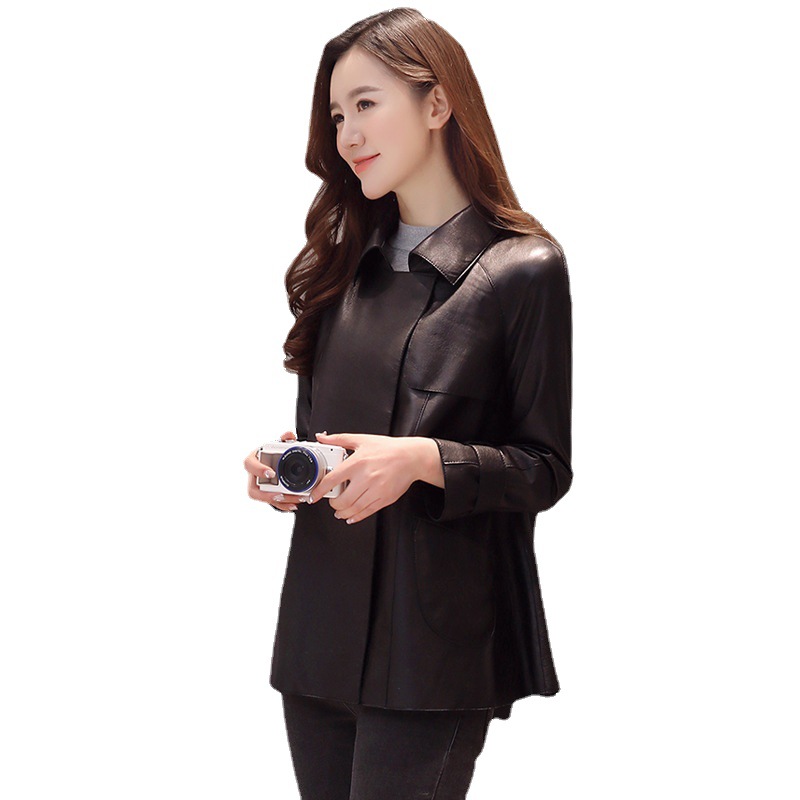 Áo khoác da nữ thiết kế dáng rộng, tay nối liền thân tạo cảm giác thoải mái. Chất liệu da mềm mại, mặc nhẹ nhàng và bền lâu. Cổ bẻ mang phong cách đơn giản, dễ dàng kết hợp với nhiều loại trang phục khác nhau như quần jeans hay váy. Sản phẩm phù hợp cho những ngày tiết trời mát mẻ. Bảo quản nơi khô ráo và lau sạch bằng vải mềm sau khi dùng. | Tên sản phẩm: Áo Da Nữ Chất Liệu Da Bò Kín Cổ Hàng Mùa Xuân Thu Đông Phong Cách Hàn Quốc - Thời Trang Nữ | Mã sản phẩm: B8014 - Giá: 4.530.000đ | Mã nhà sản xuất: HADGA-G06Hình ảnh sản phẩm