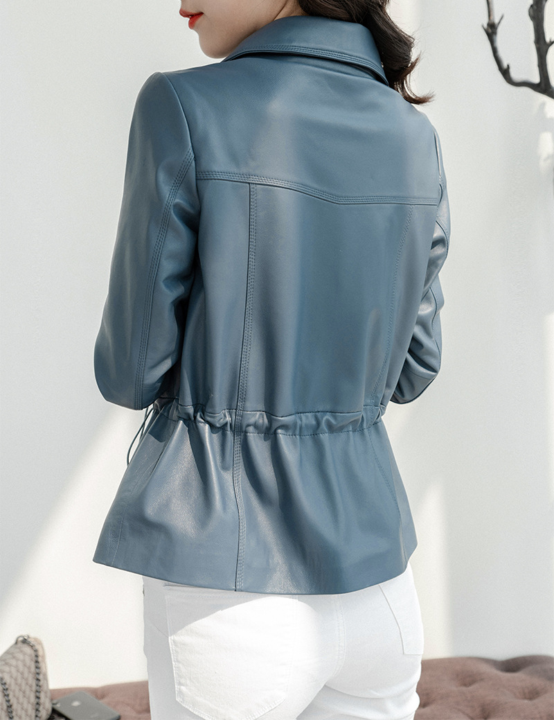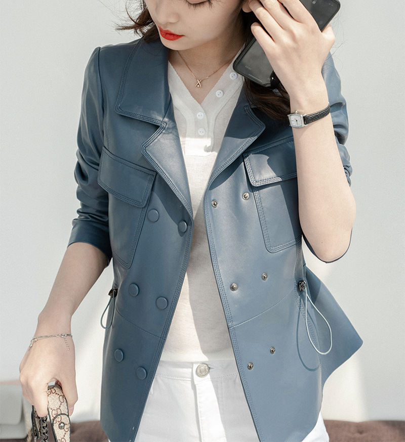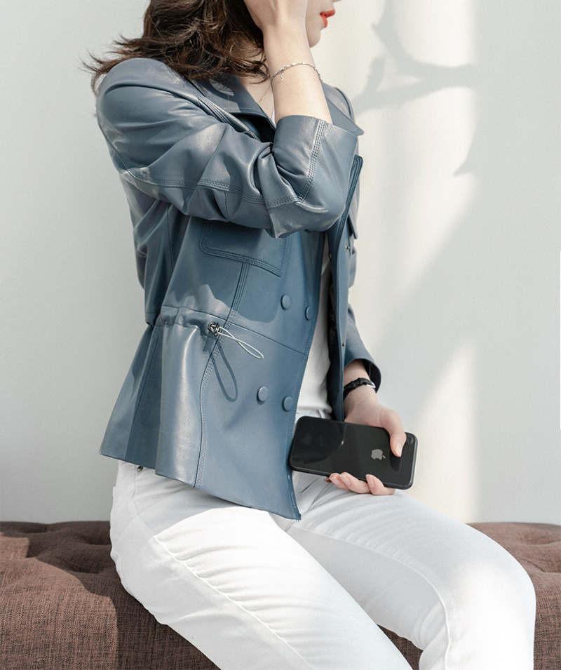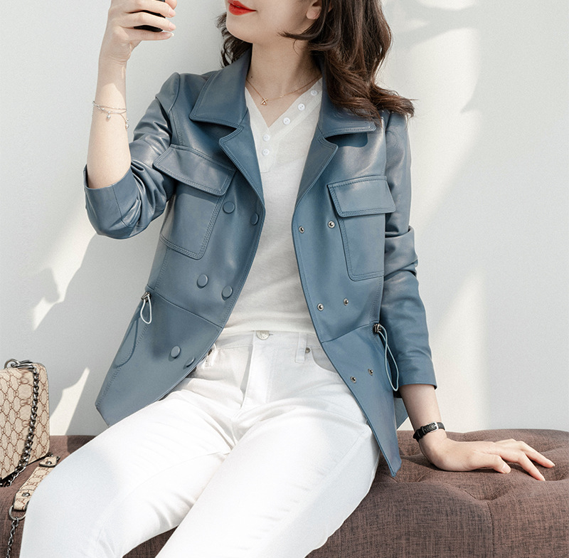 Áo khoác da cừu non dành cho nữ, kiểu dáng ngắn thích hợp mặc trong mùa xuân. Thiết kế có phần cổ dáng áo vest, tạo điểm nhấn thanh lịch. Điểm nổi bật là eo được may dây rút, giúp người mặc dễ dàng điều chỉnh form áo vừa vặn với cơ thể. Chất liệu làm từ da mềm, mang lại cảm giác dễ chịu khi mặc. Sản phẩm phù hợp để phối cùng nhiều loại trang phục khác nhau trong các dịp sinh hoạt hằng ngày. | Tên sản phẩm: Áo Da Nữ Chất Liệu Da Bò Vest Hàng Mùa Xuân Thu Đông - Thời Trang Nữ | Mã sản phẩm: G2553 - Giá: 5.830.000đ | Mã nhà sản xuất: HADGA-G06Hình ảnh sản phẩm