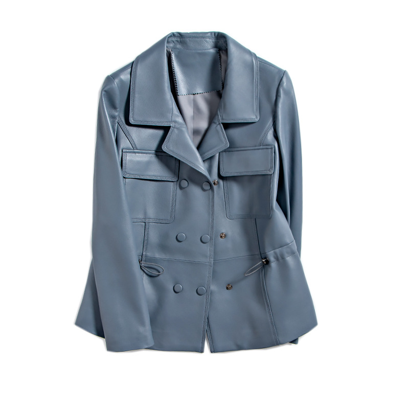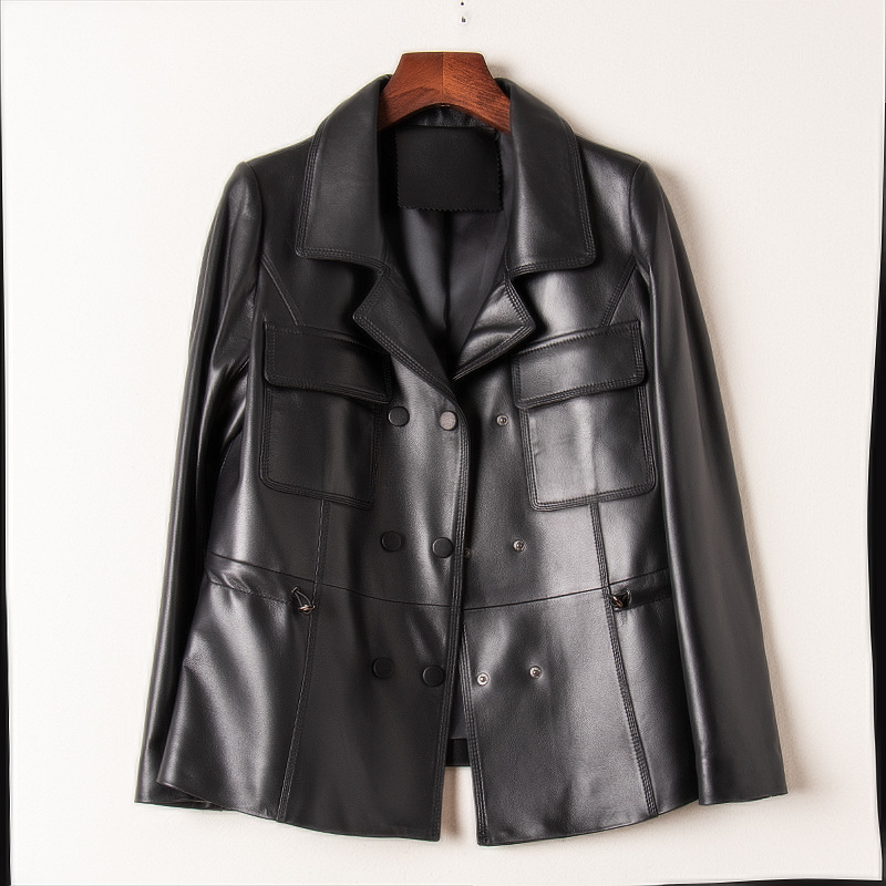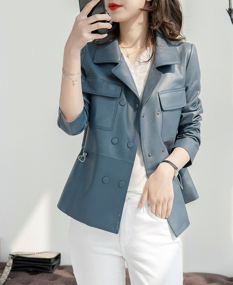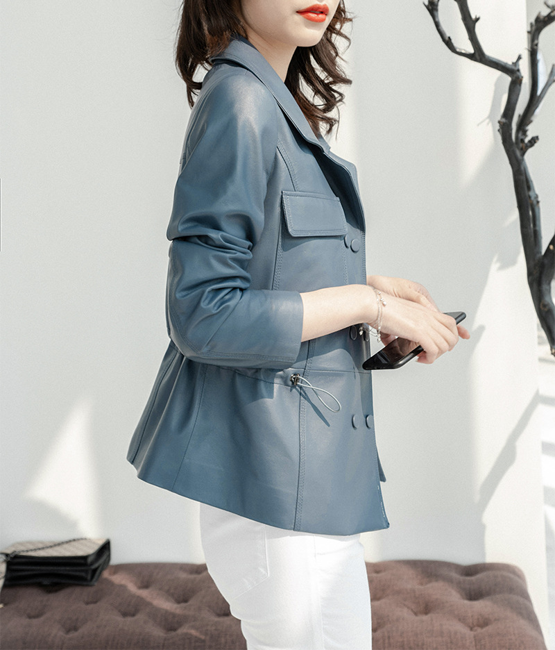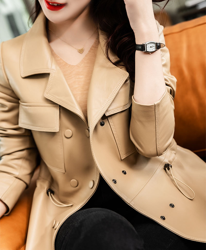 Áo khoác da cừu non dành cho nữ, kiểu dáng ngắn thích hợp mặc trong mùa xuân. Thiết kế có phần cổ dáng áo vest, tạo điểm nhấn thanh lịch. Điểm nổi bật là eo được may dây rút, giúp người mặc dễ dàng điều chỉnh form áo vừa vặn với cơ thể. Chất liệu làm từ da mềm, mang lại cảm giác dễ chịu khi mặc. Sản phẩm phù hợp để phối cùng nhiều loại trang phục khác nhau trong các dịp sinh hoạt hằng ngày. | Tên sản phẩm: Áo Da Nữ Chất Liệu Da Bò Vest Hàng Mùa Xuân Thu Đông - Thời Trang Nữ | Mã sản phẩm: G2553 - Giá: 5.830.000đ | Mã nhà sản xuất: HADGA-G06Hình ảnh sản phẩm