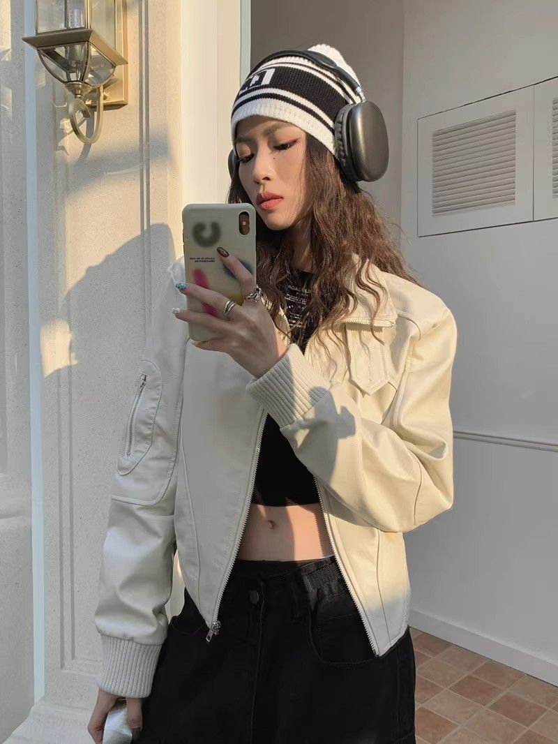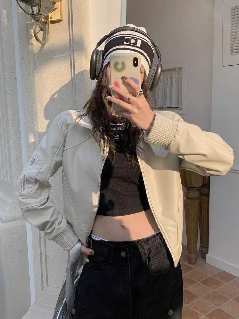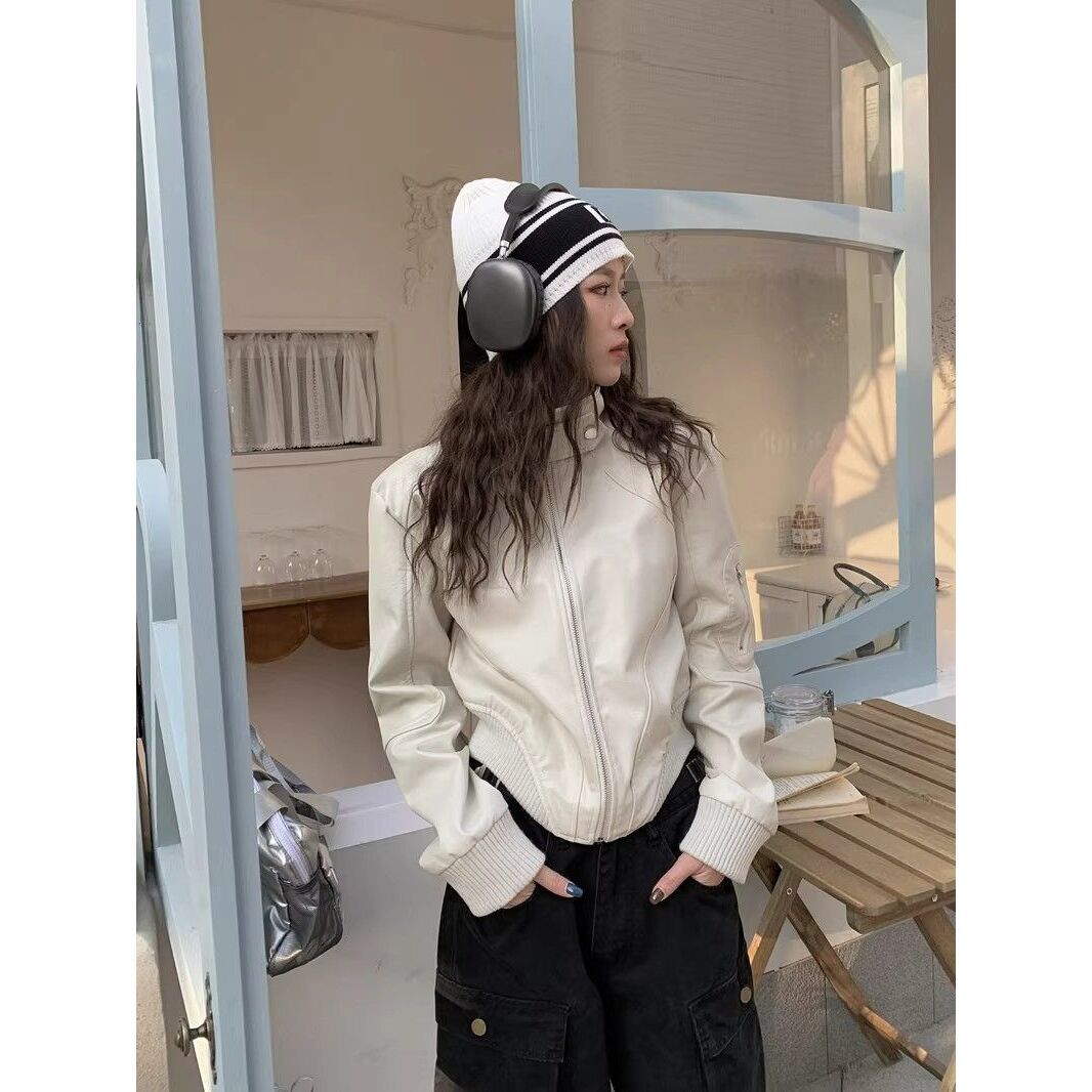 Áo khoác da ngắn kiểu dáng mô tô, lấy cảm hứng từ phong cách xưa của Mỹ. Chất liệu da tổng hợp mềm mại, màu trắng cổ điển dễ dàng phối đồ. Thiết kế ôm vừa vặn với phần cúc bấm chắc chắn và các chi tiết đường may tinh tế. Mặc kèm áo thun và quần jeans để tạo vẻ ngoài cá tính, hoặc phối cùng đầm để cân bằng giữa nét mạnh mẽ và dịu dàng. Sản phẩm phù hợp cho thời tiết se lạnh. | Tên sản phẩm: Áo Da Nữ Hàng Mùa Xuân Thu Đông Phục Cổ Cổ Điển - Thời Trang Nữ | Mã sản phẩm: B3004 - Giá: 780.000đ | Mã nhà sản xuất: SHDLO-G02Hình ảnh sản phẩm