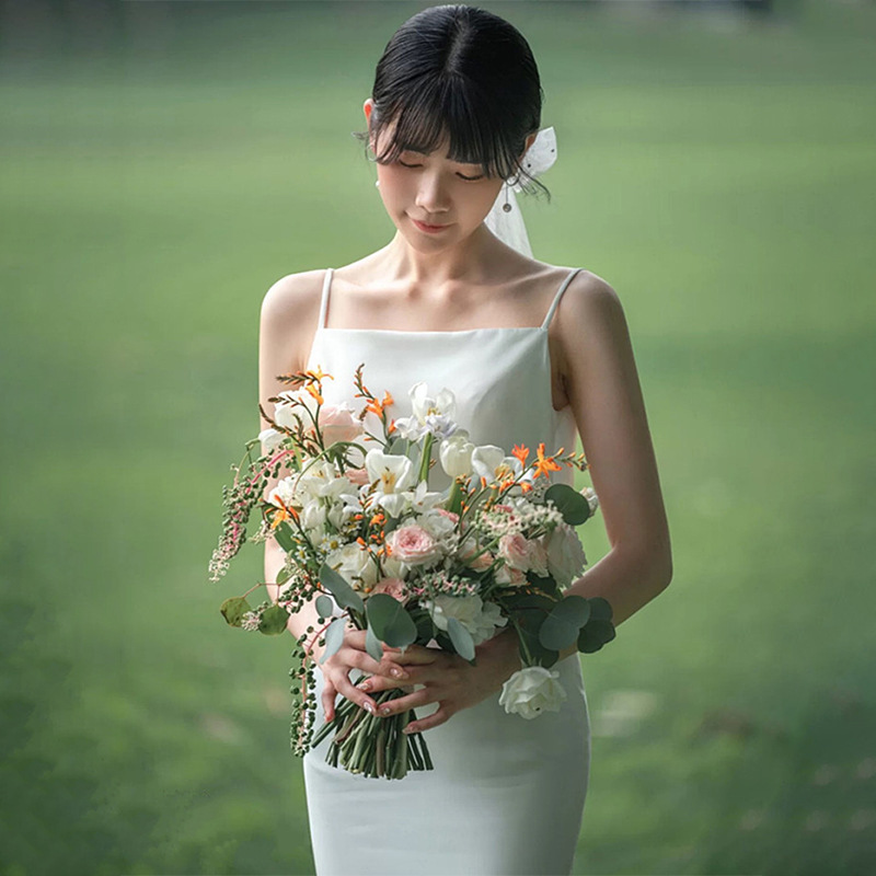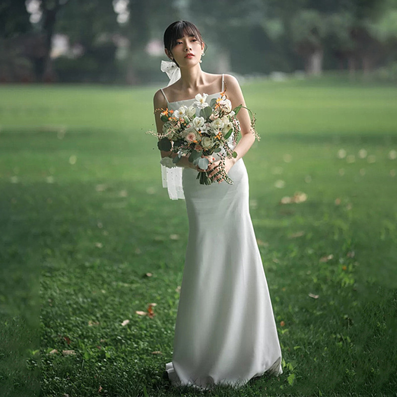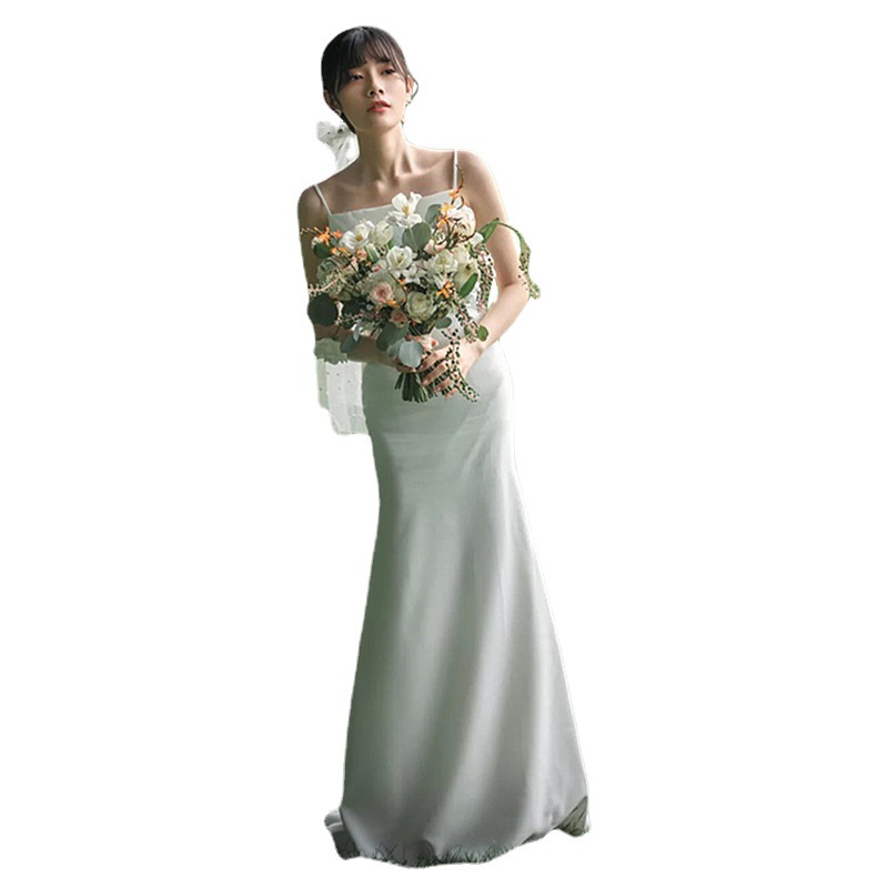 Váy cưới dáng suông với thiết kế hai dây mảnh m, phần lưng được khoét tạo điểm nhấn. Chất vải lụa mềm mại giúp tôn lên những đường nét cơ thể một cách nhẹ nhàng. Kiểu dáng đơn giản, phù hợp cho các buổi chụp ảnh ngoại cảnh hoặc dự tiệc nhỏ. Sản phẩm dễ dàng mặc vào và tháo ra, thuận tiện khi di chuyển. Tạo nên vẻ đẹp tự nhiên và thanh thoát cho người mặc. | Tên sản phẩm: Áo Hai Dây Nữ Hai Dây Hở Vai Dùng Trong Lễ Cưới - Thời Trang Nữ | Mã sản phẩm: E6315 - Giá: 1.070.000đ | Mã nhà sản xuất: GUREBE-G03Hình ảnh sản phẩm