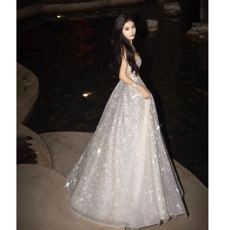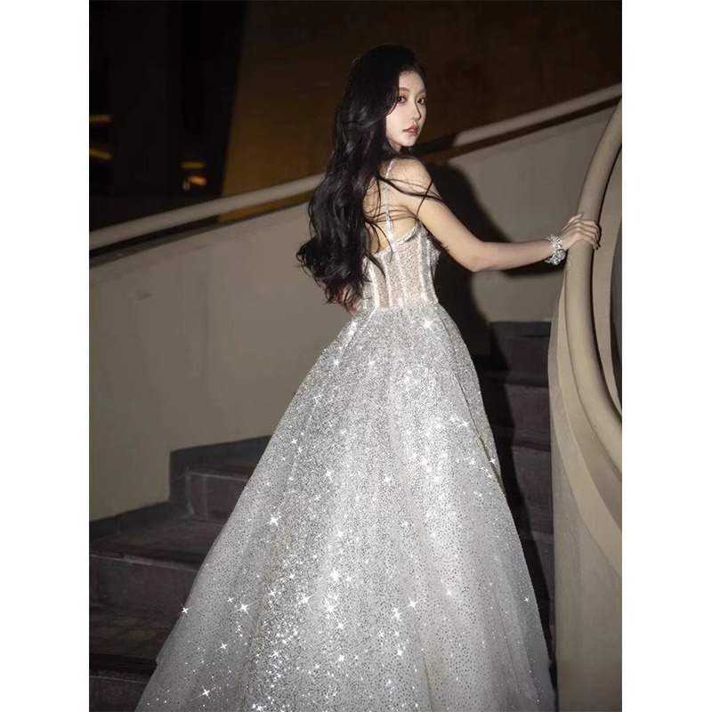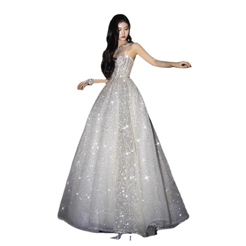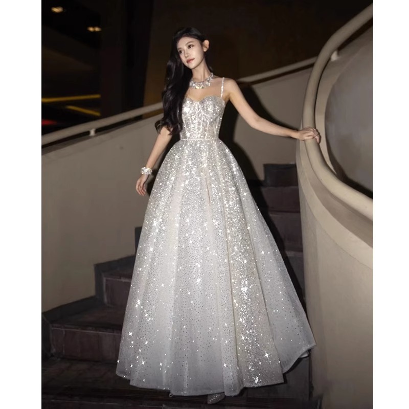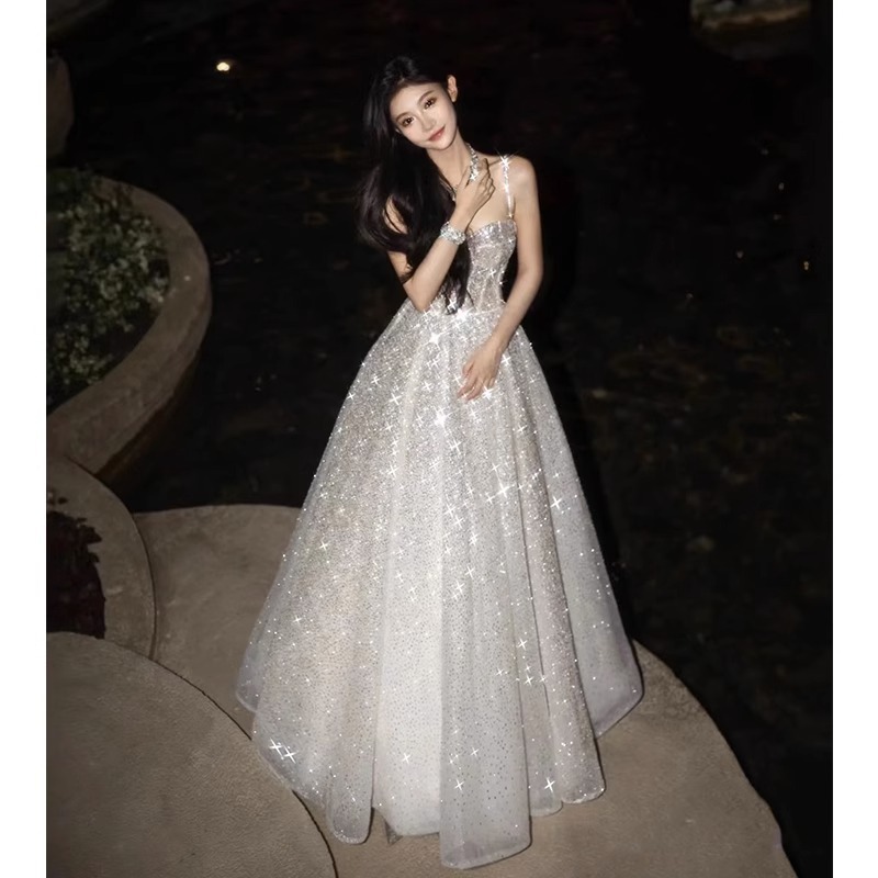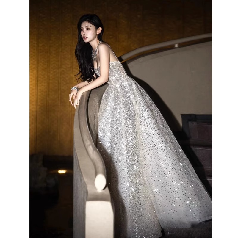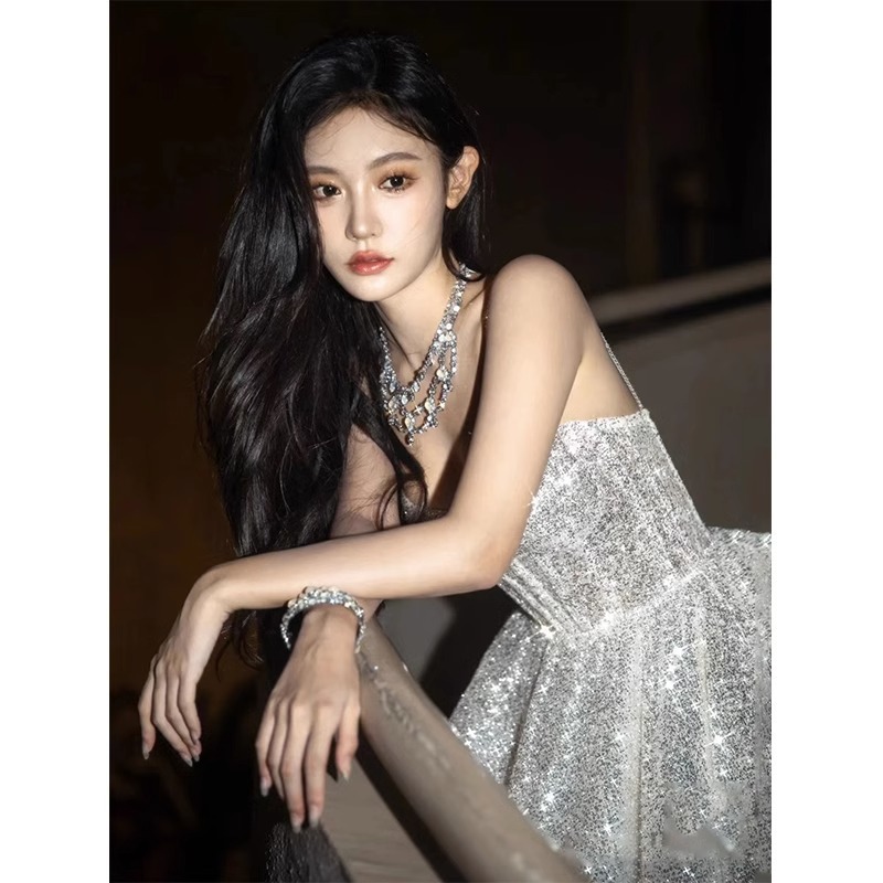 Váy dạ hội màu bạc lấp lánh, thiết kế dáng dây đeo mảnh m, phù hợp cho các buổi tiệc hoặc sự kiện vào mùa hè. Chất liệu vải mềm mại, kết hợp hàng ngàn mảnh ánh sáng nhỏ tạo nên vẻ đẹp tinh tế. Sản phẩm có form dáng ôn hòa, giúp tôn lên nét duyên dáng tự nhiên khi di chuyển. Có thể mặc kết hợp cùng áo khoác mỏng hoặc phụ kiện đơn giản. Dễ dàng vệ sinh bằng cách giặt tay nhẹ nhàng và phơi nơi thoáng mát. | Tên sản phẩm: Áo Hai Dây Nữ Hai Dây Hở Vai Hàng Mùa Hè - Thời Trang Nữ | Mã sản phẩm: L0240 - Giá: 1.730.000đ | Mã nhà sản xuất: SHTYFA-G05Hình ảnh sản phẩm
