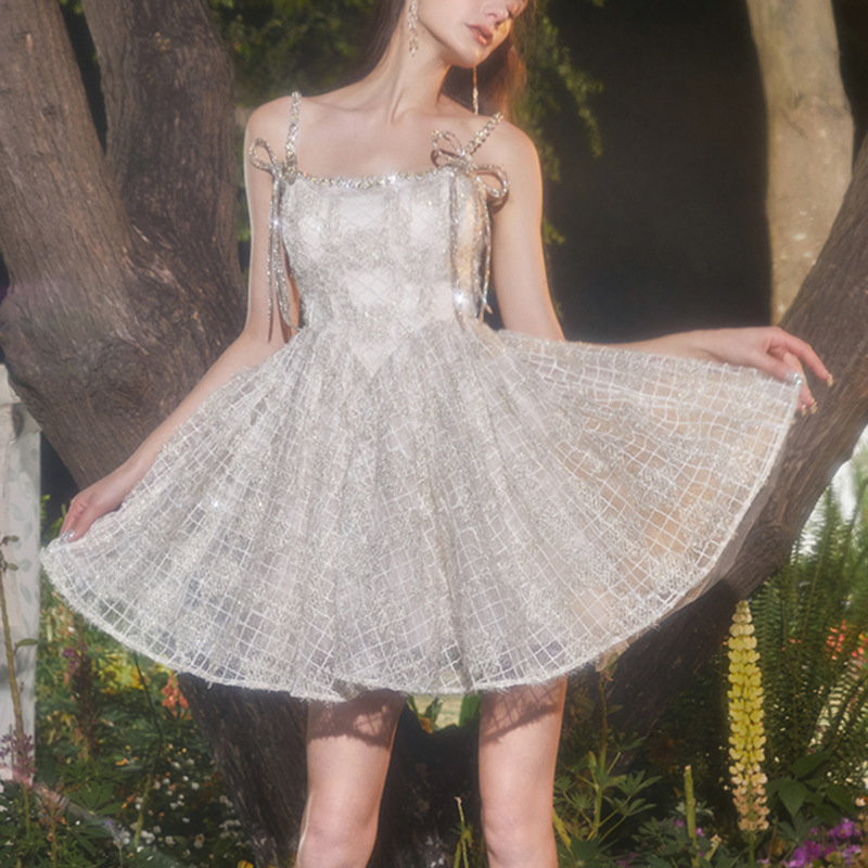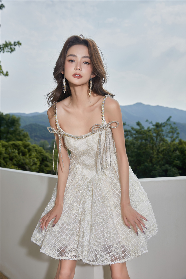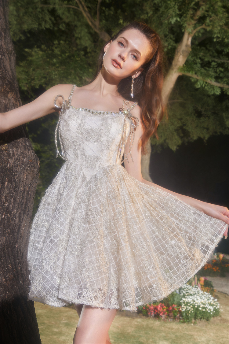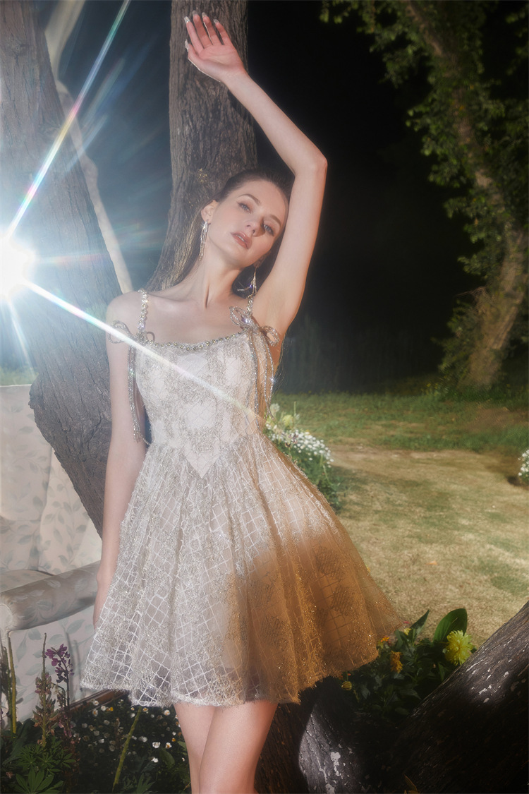 Đầm dạ hội mùa hè 2024 với thiết kế hai dây, dành cho các bạn có chiều cao khiêm tốn. Chất liệu vải được dệt thêm những sợi ánh bạc lấp lánh tinh tế. Kiểu dáng phần thân ôm nhẹ kết hợp với chân váy xòe phồng nhẹ nhàng, tạo nên vẻ đẹp nữ tính và duyên dáng. Sản phẩm phù hợp để mặc trong các buổi tiệc hoặc sự kiện. Có thể giặt bằng tay và phơi trong bóng râm để giữ form váy và độ bền đẹp. | Tên sản phẩm: Áo Hai Dây Nữ Hai Dây Hở Vai Hàng Mùa Hè - Thời Trang Nữ | Mã sản phẩm: k0587 - Giá: 1.380.000đ | Mã nhà sản xuất: GUDG-G04Hình ảnh sản phẩm