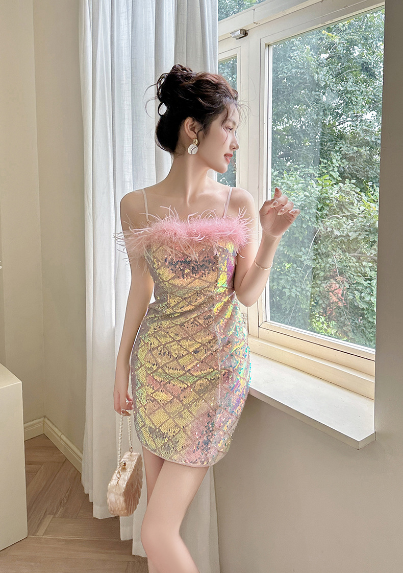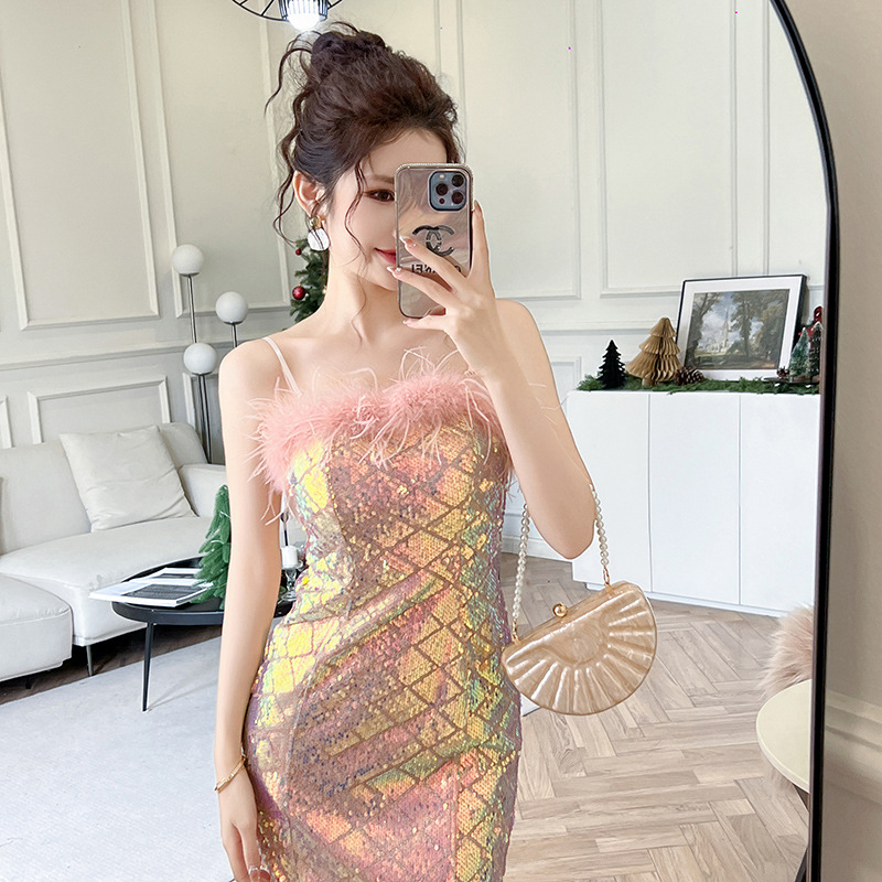 Chiếc váy này có phần áo dạng yếm mềm mại kết hợp thân váy ôm bó eo, điểm nhấn là những hạt ánh sáng lấp lánh và lớp phủ xù xì tạo nên vẻ duyên dáng. Kiểu dáng phù hợp cho những buổi gặp mặt khi thời tiết mát mẻ. Sản phẩm có thể mặc như một lớp bên trong dưới áo khoác, hoặc kết hợp riêng với phụ kiện. Chất liệu co giãn nhẹ mang lại cảm giác thoải mái khi di chuyển. | Tên sản phẩm: Áo Hai Dây Nữ Hai Dây Hở Vai Hàng Mùa Xuân Thu Đông - Thời Trang Nữ | Mã sản phẩm: K7843 - Giá: 1.200.000đ | Mã nhà sản xuất: CHDG-G04Hình ảnh sản phẩm