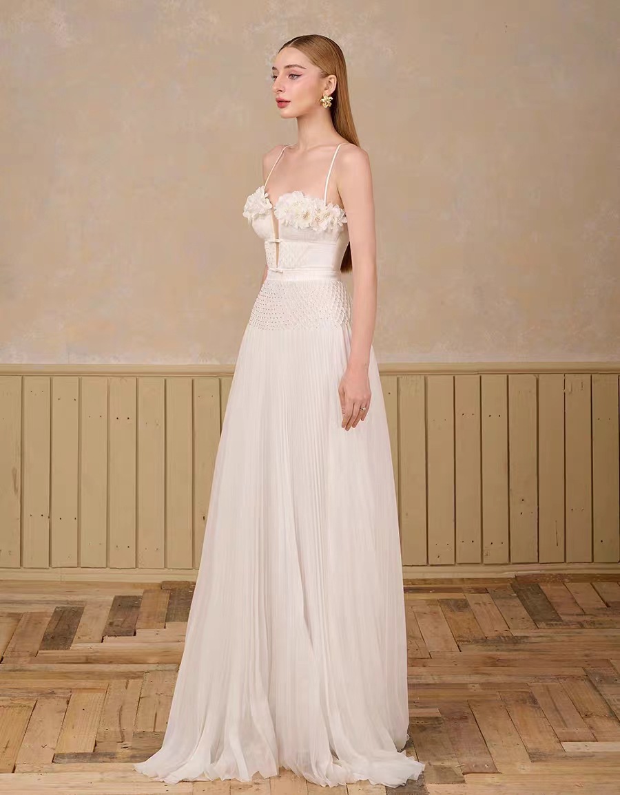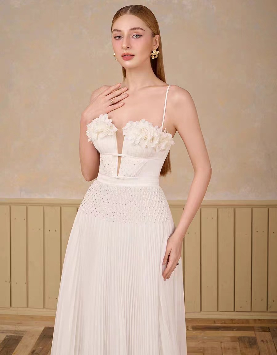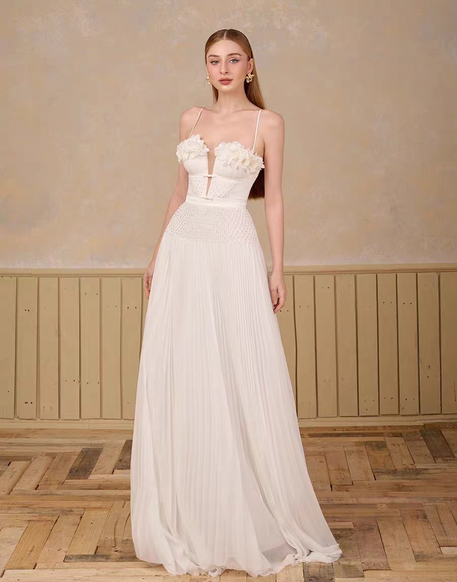 Chiếc đầm hai dây màu trắng điểm xuyến những bông hoa nhẹ nhàng, toát lên vẻ đẹp dịu dàng và nữ tính. Thiết kế ôm nhẹ phần eo kết hợp với những đường xếp ly mềm mại từ thân đến chân váy, tôn lên dáng người một cách tinh tế. Sản phẩm phù hợp cho nhiều dịp đi chơi, dạo phố. Có thể mặc một mình hoặc kết hợp thêm áo khoác mỏng bên ngoài. | Tên sản phẩm: Áo Hai Dây Nữ Họa Tiết Hoa Hai Dây Hở Vai - Thời Trang Nữ | Mã sản phẩm: K6747 - Giá: 5.180.000đ | Mã nhà sản xuất: FORYCT-G06Hình ảnh sản phẩm