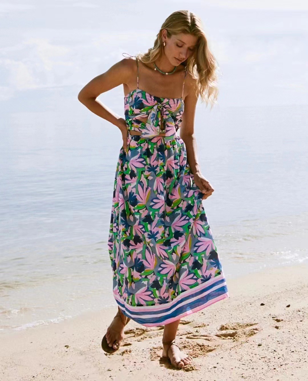 Đầm dáng dài mới cho mùa hè, mang phong cách đồng phục nghỉ dưỡng tươi mát. Thiết kế dây đeo và phần eo được khoét tạo điểm nhấn thanh thoát, giúp tôn dáng người mặc. Trên nền vải là những họa tiết in nổi bật, tràn đầy sức sống. Sản phẩm phù hợp cho những dịp dạo phố hay đi chơi. Mặc cùng giày sandal và một chiếc mũ rộng vành để tạo nên vẻ ngoài hoàn chỉnh. | Tên sản phẩm: Áo Hai Dây Nữ Họa Tiết Hoa Hai Dây Hở Vai Hàng Mùa Hè - Thời Trang Nữ | Mã sản phẩm: K7596 - Giá: 1.400.000đ | Mã nhà sản xuất: GUDG-G04Hình ảnh sản phẩm