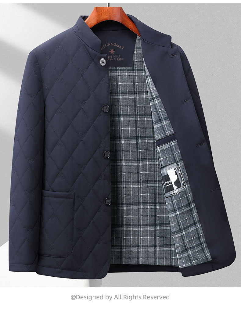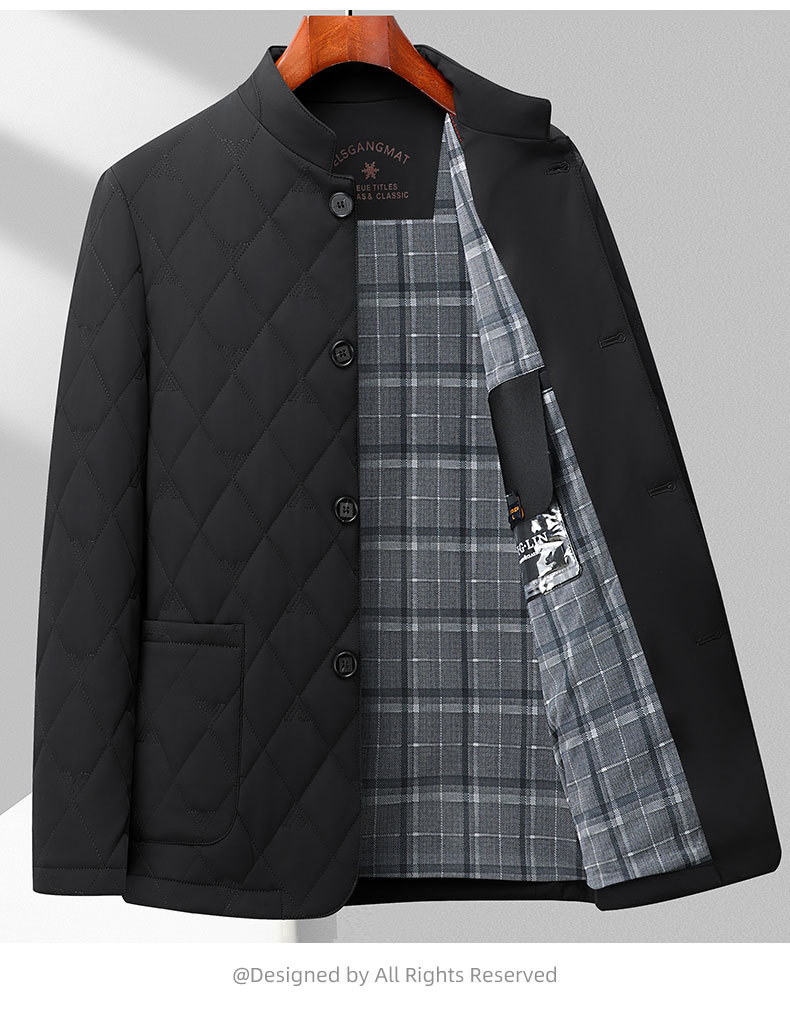Áo khoác nam dáng dài, có cổ dựng, phù hợp cho công sở và những lúc thư giãn. Sản phẩm được làm từ chất liệu bông ấm áp, bên trong có pha lụa tơ tằm tự nhiên, giúp giữ nhiệt tốt trong tiết trời thu đông. Bạn có thể mặc trực tiếp bên ngoài áo thun hoặc áo sơ mi, rất tiện lợi cho các hoạt động hàng ngày hoặc khi làm việc. Kiểu dáng lịch sự, mang lại sự thoải mái và ấm cúng cho người dùng. | Tên sản phẩm: Áo Khoác Dày Nam Chất Liệu Lụa Tơ Tằm Hàng Mùa Xuân Thu Đông Trung Niên - Thời Trang Nam | Mã sản phẩm: A8649 - Giá: 1.640.000đ | Mã nhà sản xuất: SUDIN-G05Hình ảnh sản phẩm