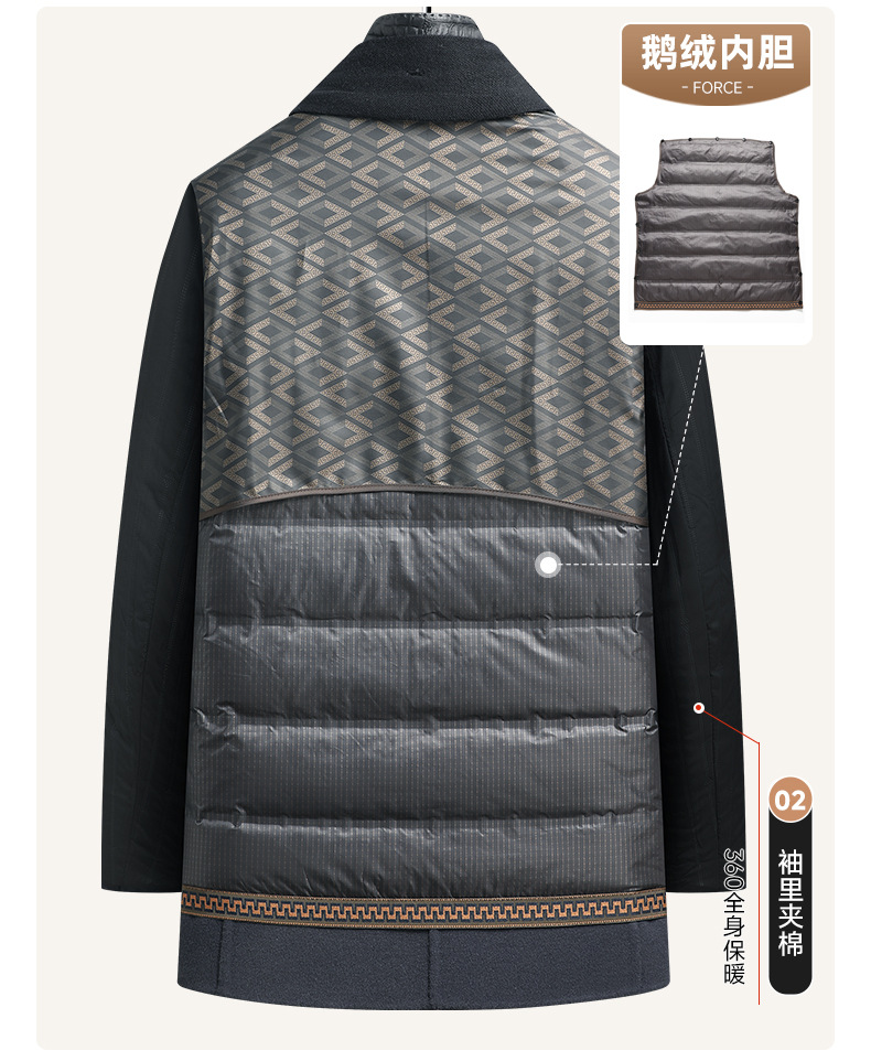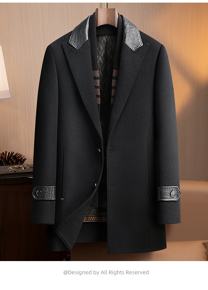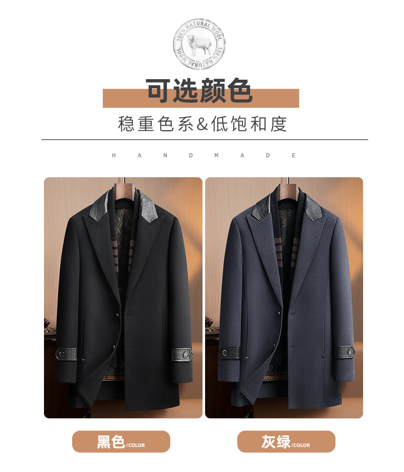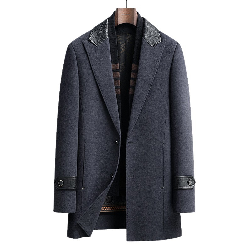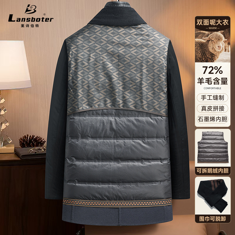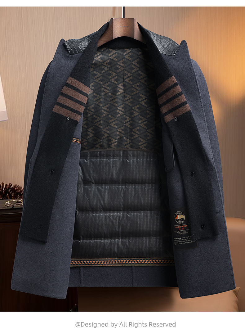 Áo khoác nam dáng dài, thiết kế hai mặt đều có thể mặc được, rất tiện lợi. Bên ngoài là chất liệu len ấm áp, bên trong có lớp lót bằng lông vịt nhẹ và giữ nhiệt tốt, có thể tháo rời để dễ vệ sinh. Cổ áo làm từ da thật, tăng thêm phần nổi bật. Kiểu dáng phù hợp cho mùa thu đông, mặc cùng quần âu hay trang phục thường ngày đều hợp. Có nhiều kích cỡ lớn nhỏ để lựa chọn. | Tên sản phẩm: Áo Khoác Nam Chất Liệu Da Bò Big Size Ngoại Cỡ Hàng Mùa Xuân Thu Đông - Thời Trang Nam | Mã sản phẩm: A8415 - Giá: 3.500.000đ | Mã nhà sản xuất: SUDIN-G06Hình ảnh sản phẩm