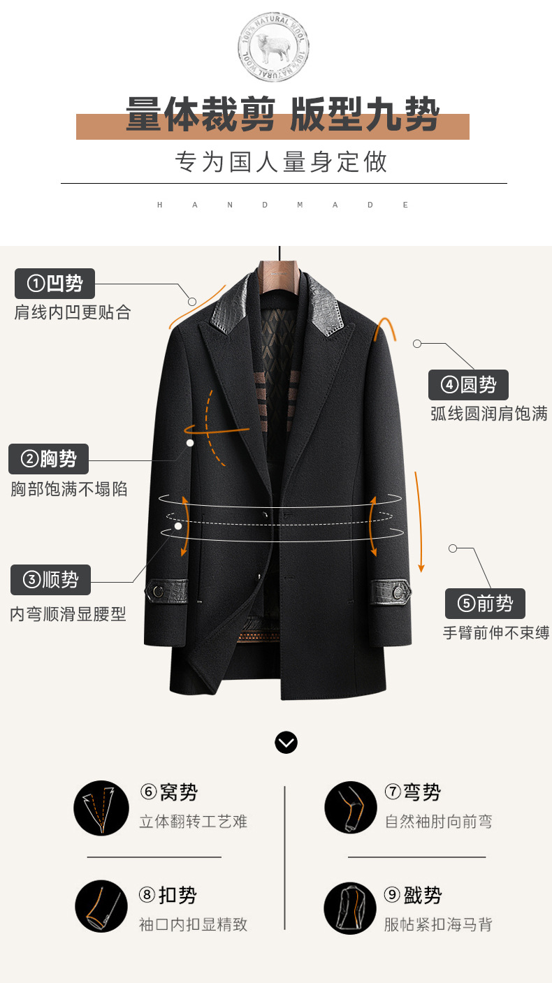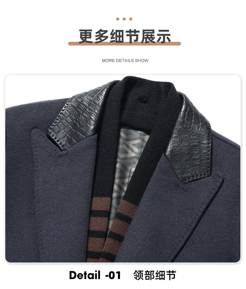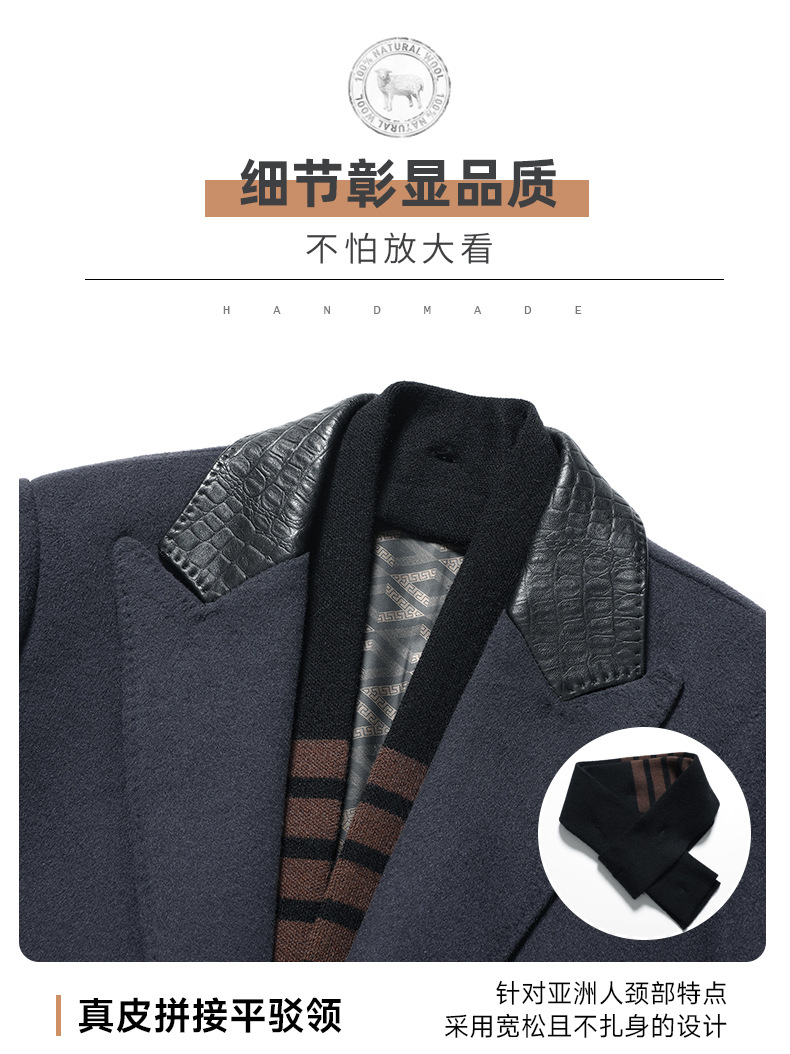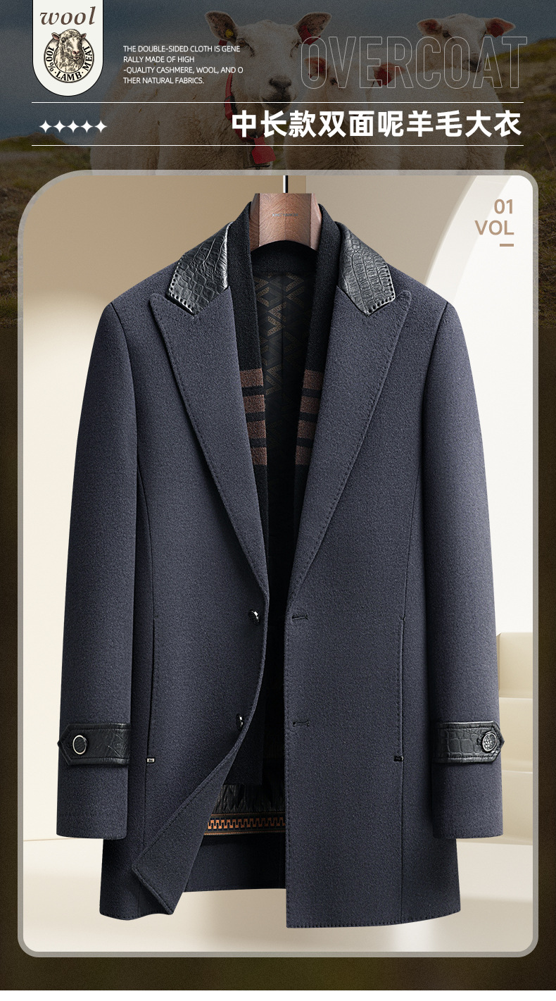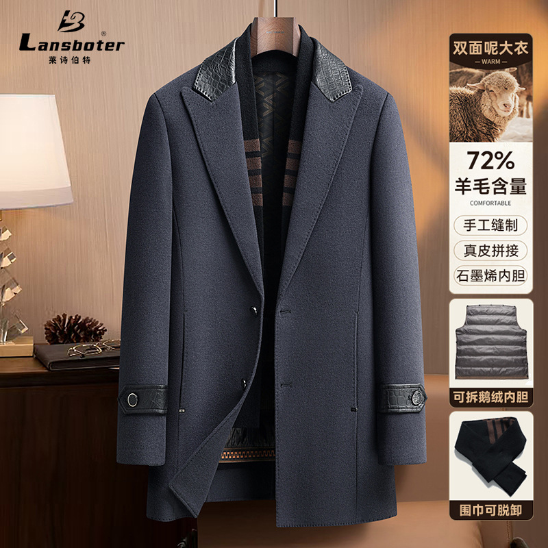 Áo khoác nam dáng dài, thiết kế hai mặt đều có thể mặc được, rất tiện lợi. Bên ngoài là chất liệu len ấm áp, bên trong có lớp lót bằng lông vịt nhẹ và giữ nhiệt tốt, có thể tháo rời để dễ vệ sinh. Cổ áo làm từ da thật, tăng thêm phần nổi bật. Kiểu dáng phù hợp cho mùa thu đông, mặc cùng quần âu hay trang phục thường ngày đều hợp. Có nhiều kích cỡ lớn nhỏ để lựa chọn. | Tên sản phẩm: Áo Khoác Nam Chất Liệu Da Bò Big Size Ngoại Cỡ Hàng Mùa Xuân Thu Đông - Thời Trang Nam | Mã sản phẩm: A8415 - Giá: 3.500.000đ | Mã nhà sản xuất: SUDIN-G06Hình ảnh sản phẩm