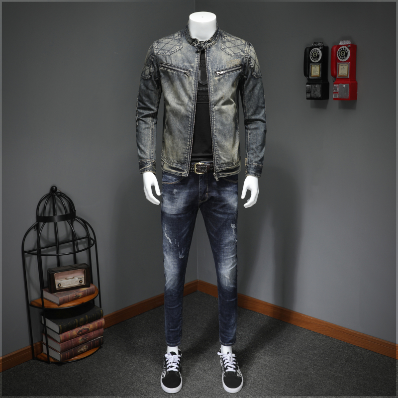 Áo khoác nam kiểu dáng cổ điển với phần cổ đứng ôm cổ, kết hợp khóa kéo tiện dụng. Chất liệu vải bền chắc, mang phong cách đơn giản nhưng không kém phần nổi bật. Sản phẩm phù hợp khi mặc đi làm, dạo phố hay những dịp gặp gỡ bạn bè. Cách sử dụng đơn giản, chỉ cần kéo khóa và kết hợp cùng quần tây hoặc quần jean để có vẻ ngoài chỉn chu. | Tên sản phẩm: Áo Khoác Nam Chất Liệu Jean Bò Phong Cách Âu Mỹ - Thời Trang Nam | Mã sản phẩm: B7421 - Giá: 1.880.000đ | Mã nhà sản xuất: QITYGF-G05Hình ảnh sản phẩm