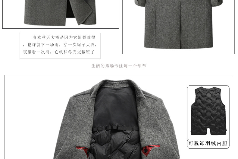 Áo khoác dài qua gối dành cho nam, có lớp lót bên trong bằng lông vũ có thể tháo rời. Chất liệu chính từ sợi len tự nhiên, giữ ấm tốt và thoáng khí. Kiểu dáng lịch sự phù hợp nhiều dịp. Mặc kèm áo thun hoặc áo len bên trong. Dễ dàng kết hợp với quần âu hay quần jeans. Lớp lót có thể tháo ra khi thời tiết ấm áp hoặc gắn vào khi trời lạnh. | Tên sản phẩm: Áo Khoác Nam Dài Quá Gối Hàng Mùa Xuân Thu Đông - Thời Trang Nam | Mã sản phẩm: B6261 - Giá: 4.390.000đ | Mã nhà sản xuất: SUDAP-G06Hình ảnh sản phẩm