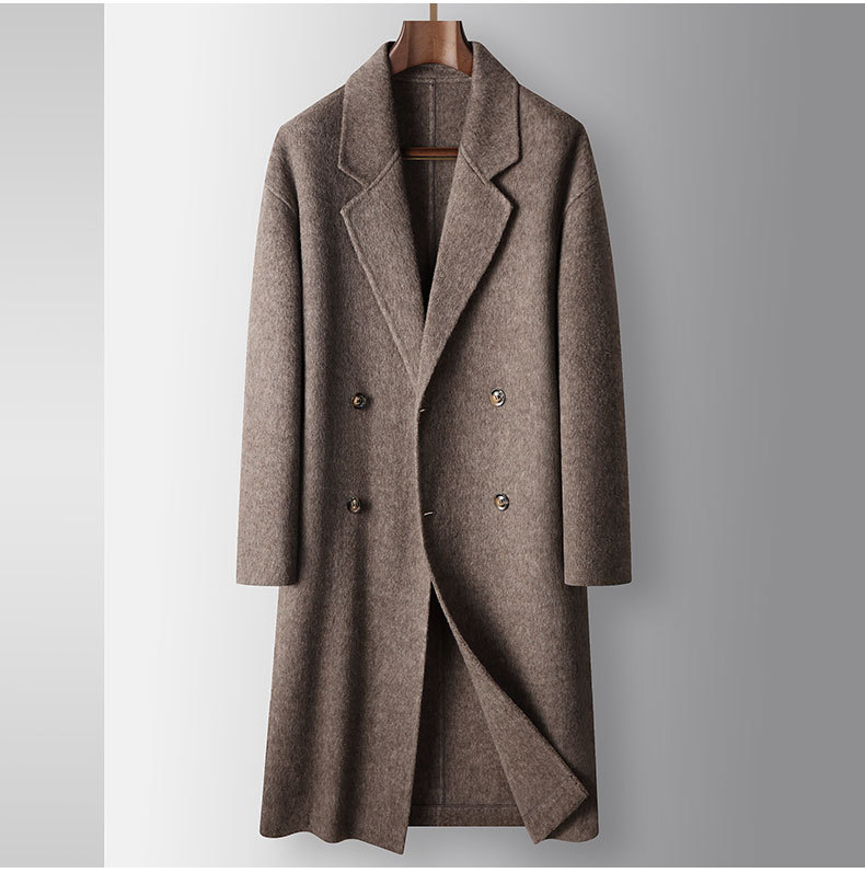 Áo khoác dài qua gối dành cho nam, thiết kế hai mặt đều có thể mặc được. Chất liệu từ sợi len tự nhiên, giữ ấm tốt và thoáng khí. Kiểu dáng rộng rãi thoải mái, phù hợp với nhiều dáng người. Áo có hàng cúc đôi và túi lớn tiện lợi. Có thể phối cùng áo len cổ lọ và quần tây để tạo vẻ lịch sự, hoặc mặc với trang phục đơn giản hằng ngày. Dùng cho tiết trời thu đông, giúp giữ ấm mà vẫn gọn gàng. | Tên sản phẩm: Áo Khoác Nam Dài Quá Gối Hàng Mùa Xuân Thu Đông Phong Cách Trẻ Trung - Thời Trang Nam | Mã sản phẩm: A8813 - Giá: 2.360.000đ | Mã nhà sản xuất: VIDAG-G05Hình ảnh sản phẩm