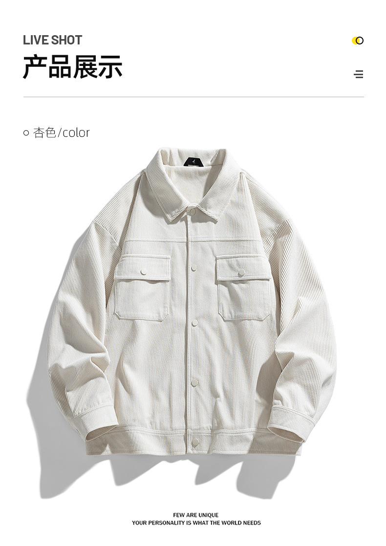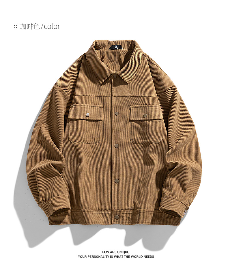 Áo khoác nam chất liệu nhung sợi bông, thiết kế dáng rộng thoải mái cho những ngày thu mát mẻ. Sản phẩm có cổ bẻ và nhiều túi tiện dụng, phong cách lao động pha trộn nét trẻ trung. Đây là áo mở, mặc bên ngoài áo thun hoặc áo sơ mi đều phù hợp. Kiểu dáng đơn giản, dễ phối đồ cho các dịp sinh hoạt hằng ngày. | Tên sản phẩm: Áo Khoác Nam Dáng Dộng Kín Cổ Hàng Mùa Xuân Thu Đông - Thời Trang Nam | Mã sản phẩm: B5353 - Giá: 720.000đ | Mã nhà sản xuất: SHDLO-G02Hình ảnh sản phẩm