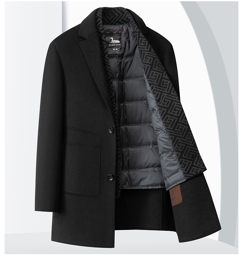 Áo khoác nam có lớp lót lông vũ bên trong, thiết kế hai lớp ấm áp cho mùa lạnh. Chất liệu chính là dạ dày dày, cổ áo kép giữ ấm tốt và tạo dáng lịch sự. Sản phẩm phù hợp cho công sở hay dùng hàng ngày, dễ kết hợp với nhiều trang phục. Mặc trực tiếp hoặc kết hợp cùng áo len bên trong, giúp giữ nhiệt hiệu quả trong thời tiết giá rét. | Tên sản phẩm: Áo Khoác Nam Dày Ấm Hàng Mùa Xuân Thu Đông Trung Niên - Thời Trang Nam | Mã sản phẩm: B8356 - Giá: 3.100.000đ | Mã nhà sản xuất: SUDI-G06Hình ảnh sản phẩm