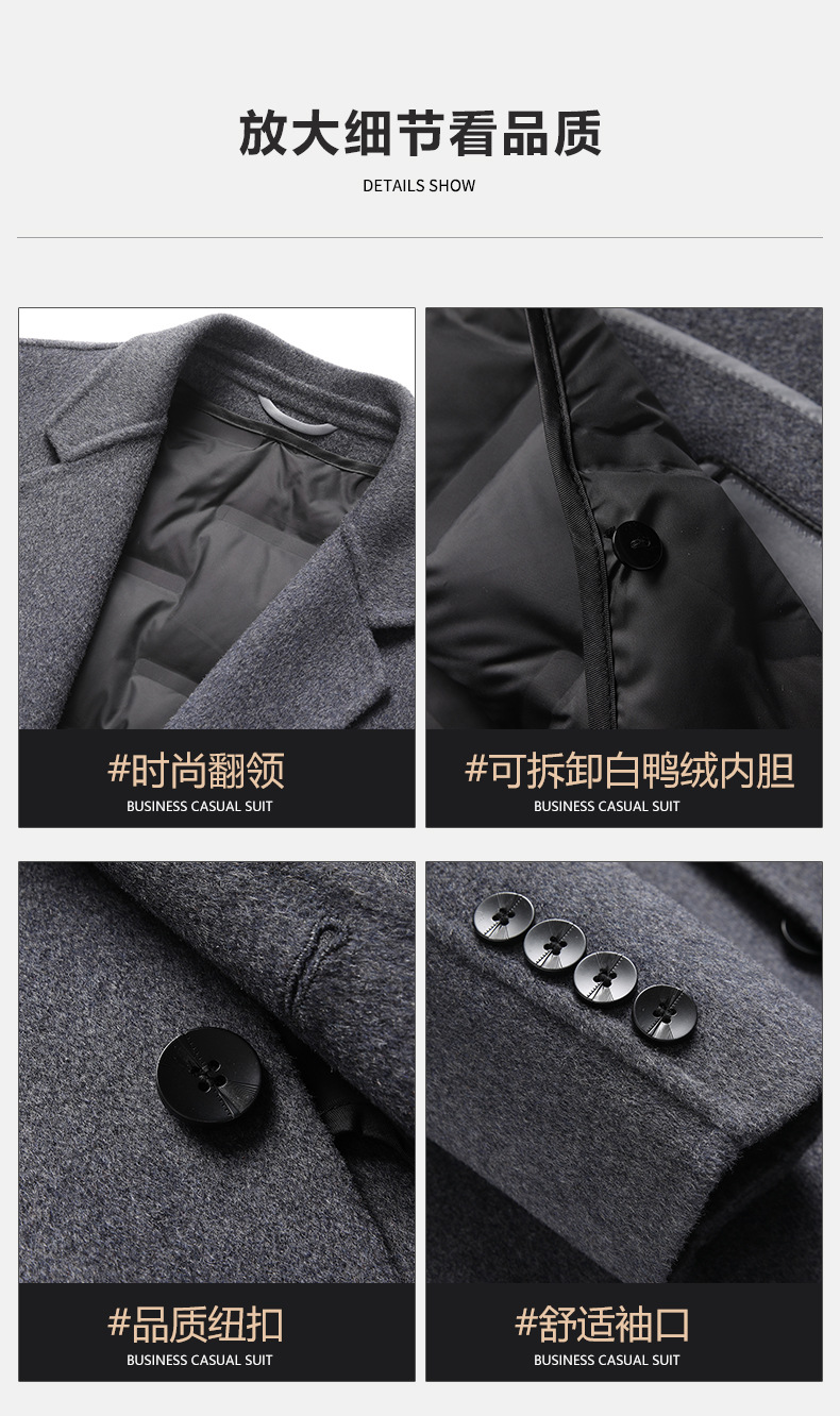 Áo khoác dành cho nam, kiểu dáng dài vừa phải, rất phù hợp cho mùa thu đông. Điểm nổi bật là có lớp áo lông vũ bên trong có thể tháo rời, giữ ấm tốt hơn. Bên ngoài là chất liệu dệt từ sợi len, mặc rất ấm áp. Có thể mặc nguyên chiếc khi trời lạnh, hoặc chỉ mặc phần áo ngoài khi thời tiết dịu mát. Dáng áo thiết kế dễ phối hợp với nhiều trang phục khác nhau. | Tên sản phẩm: Áo Khoác Nam Hàng Mùa Xuân Thu Đông - Thời Trang Nam | Mã sản phẩm: A8301 - Giá: 3.310.000đ | Mã nhà sản xuất: SUDIN-G06Hình ảnh sản phẩm
