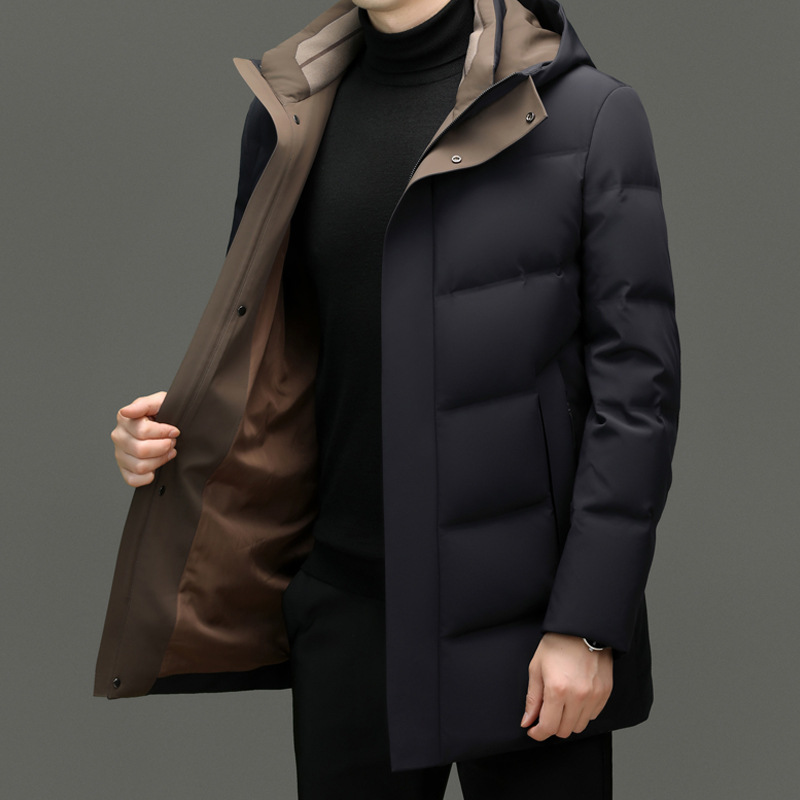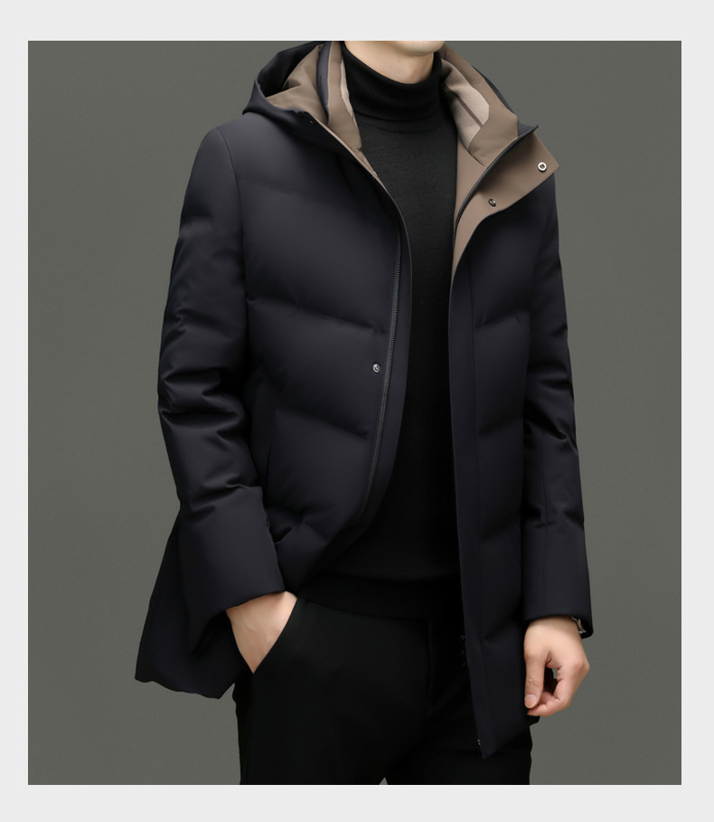 Áo khoác mùa lạnh dành cho nam, có mũ trùm tiện lợi. Sản phẩm sử dụng lớp lông vũ mềm mại bên trong, được chia thành nhiều ngăn nhỏ giúp giữ ấm tốt hơn và tránh bị xô lệch. Kiểu dáng kết hợp giữa đi làm và dạo phố, phù hợp cho nhiều dịp khác nhau. Mặc áo khoác ngoài cùng khi trời lạnh, có thể kéo khóa và cài khuy để giữ nhiệt. | Tên sản phẩm: Áo Khoác Nam Mũ Liền Dày Ấm Hàng Mùa Xuân Thu Đông Trung Niên - Thời Trang Nam | Mã sản phẩm: C0912 - Giá: 2.960.000đ | Mã nhà sản xuất: SUDI-G06Hình ảnh sản phẩm
