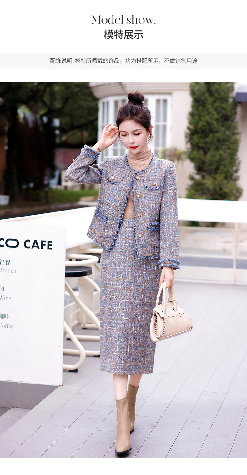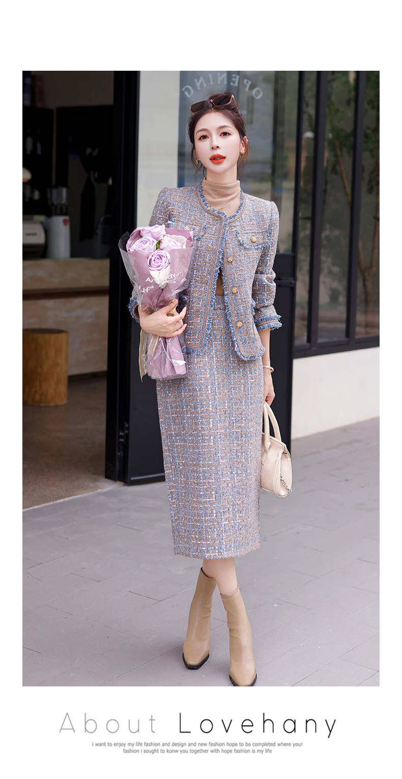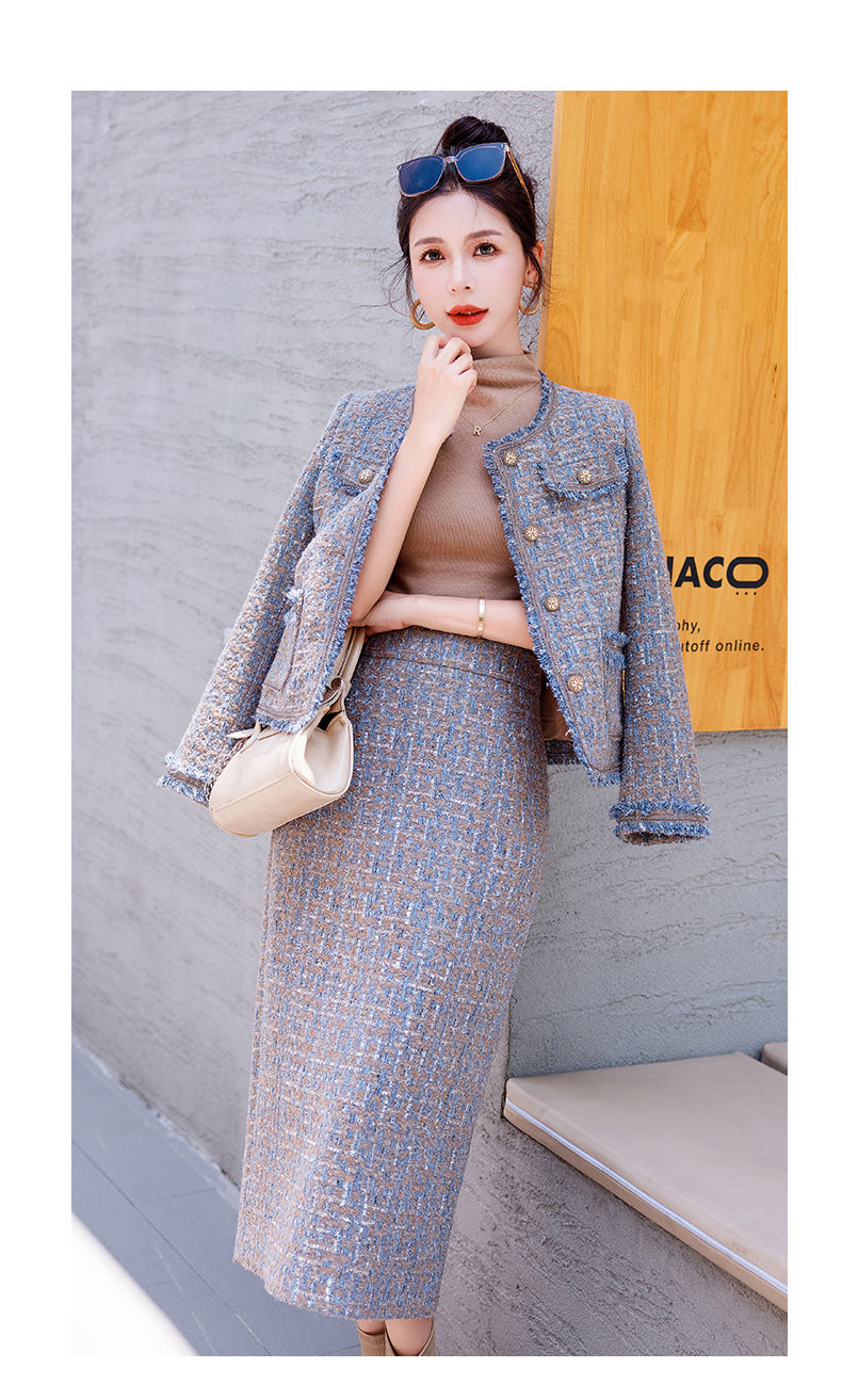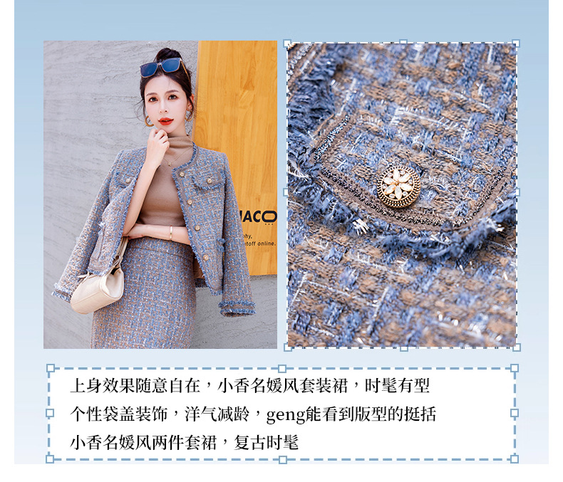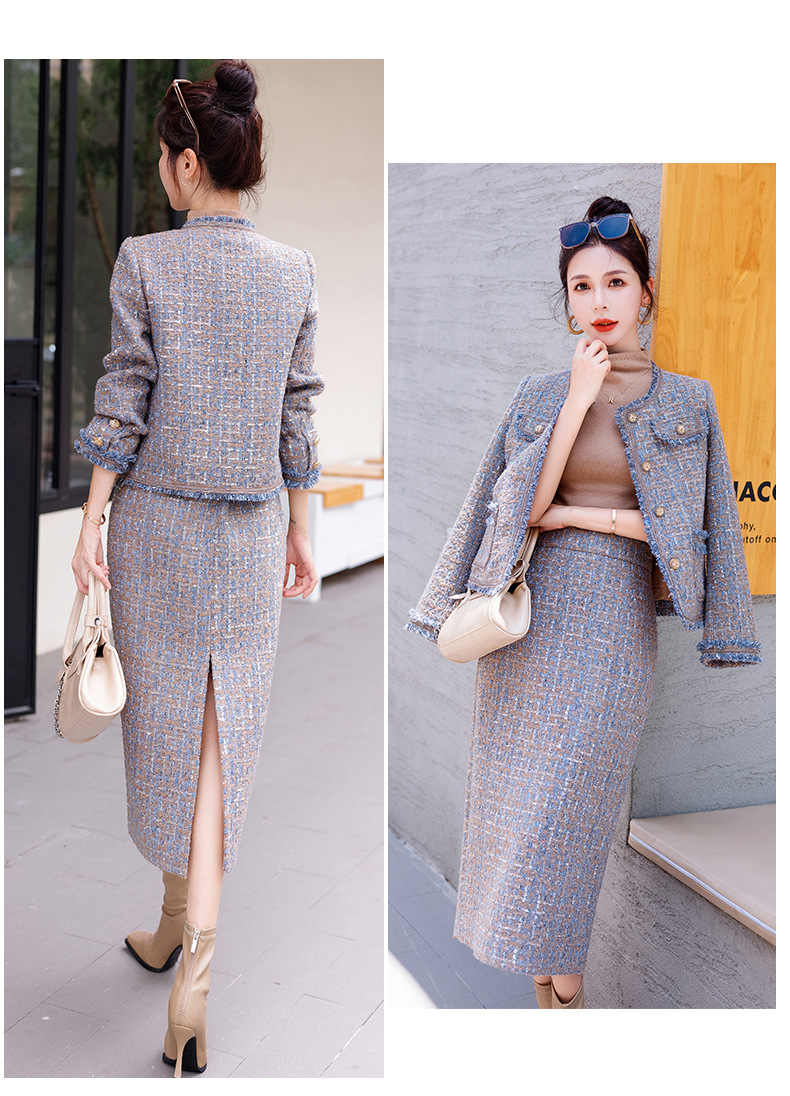 Bộ trang phục hai mảnh này gồm áo khoác kiểu dáng ngắn và chân váy, mang đến vẻ ngoài thanh lịch và nhẹ nhàng. Chất vải mềm mại, giữ form đẹp, phù hợp cho tiết trời thu. Áo khoác mặc bên ngoài cùng chân váy dễ dàng phối đồ, tôn dáng người mặc. Có thể mặc đi làm, đi chơi hay dự những buổi gặp mặt thân mật. Bảo quản đơn giản, giặt máy nhẹ nhàng để sản phẩm bền lâu. | Tên sản phẩm: Áo Khoác Nữ Cả Bộ 2 Món Hàng Mùa Xuân Thu Đông - Thời Trang Nữ | Mã sản phẩm: B5971 - Giá: 1.870.000đ | Mã nhà sản xuất: HADG-G05Hình ảnh sản phẩm