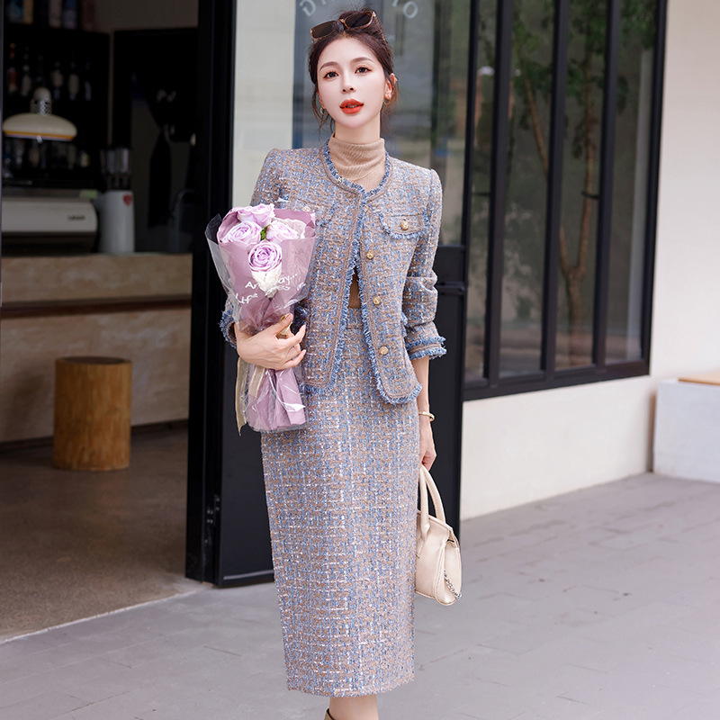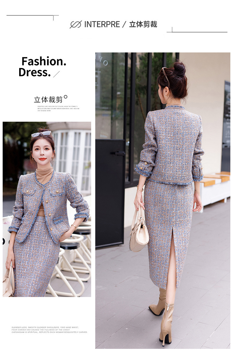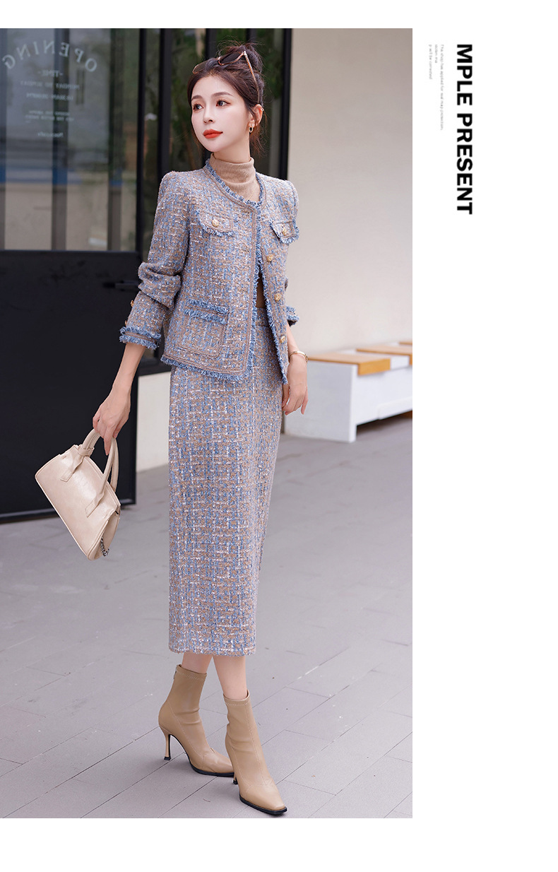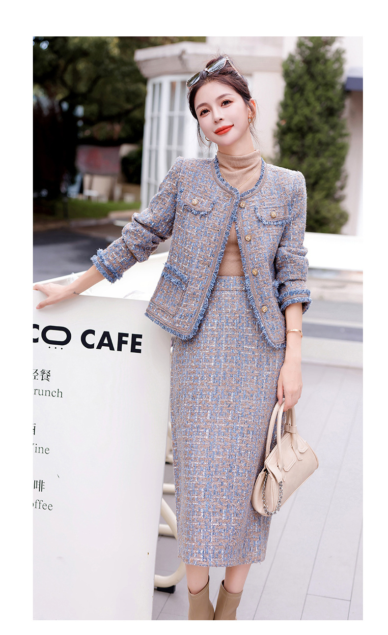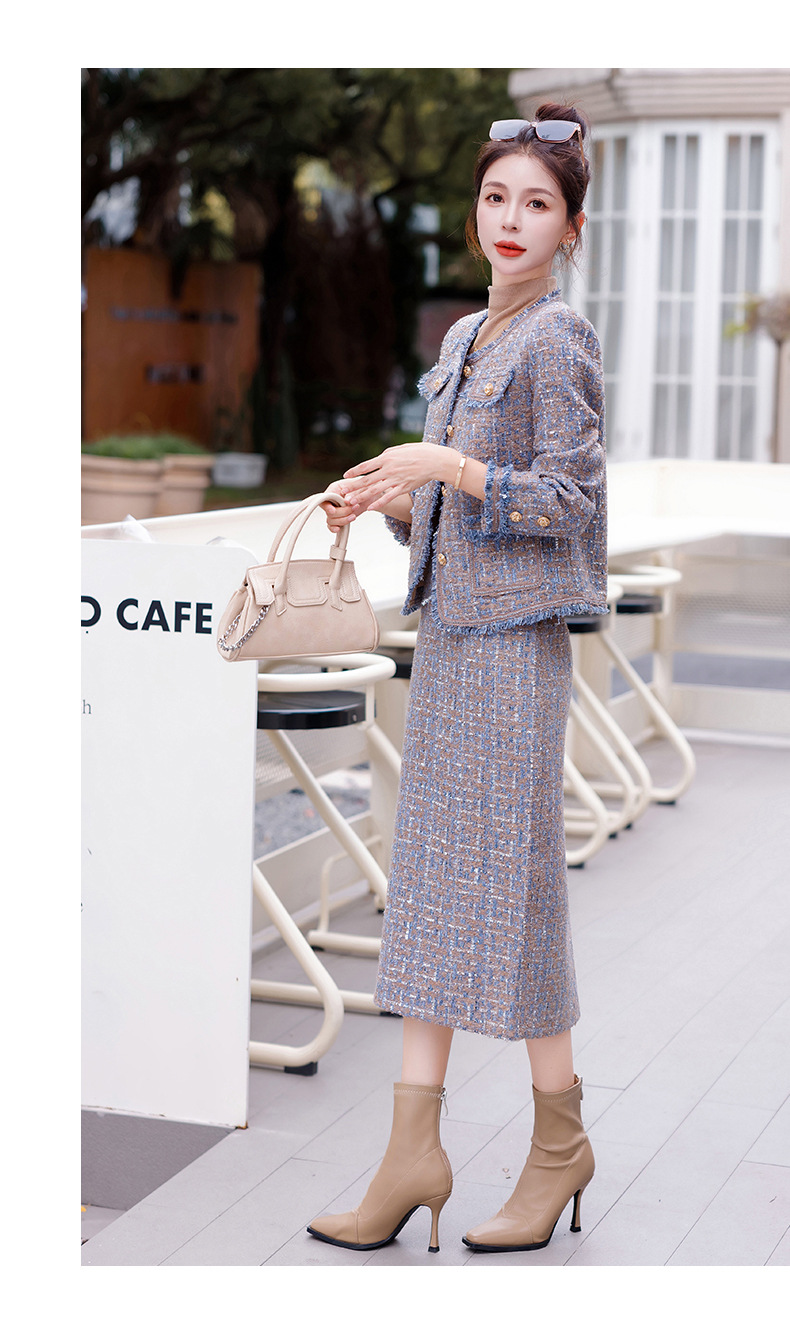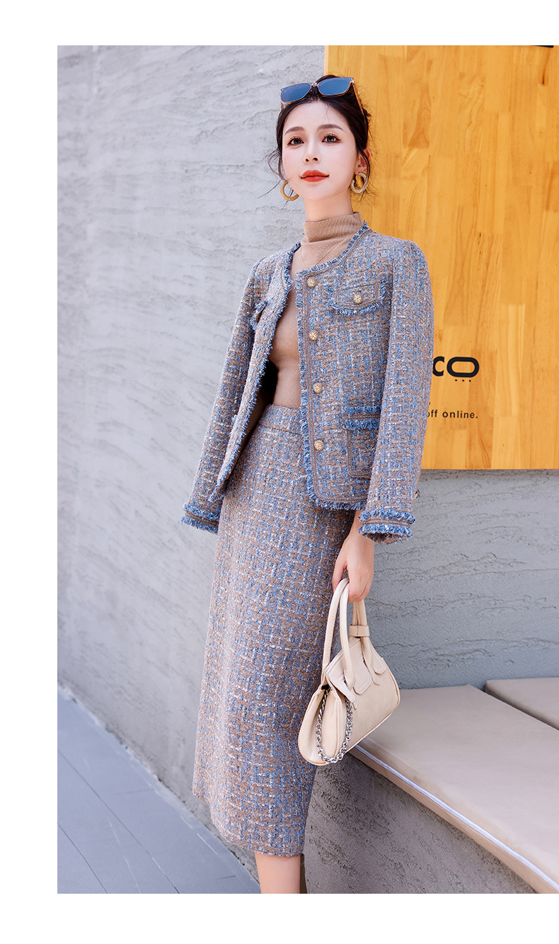 Bộ trang phục hai mảnh này gồm áo khoác kiểu dáng ngắn và chân váy, mang đến vẻ ngoài thanh lịch và nhẹ nhàng. Chất vải mềm mại, giữ form đẹp, phù hợp cho tiết trời thu. Áo khoác mặc bên ngoài cùng chân váy dễ dàng phối đồ, tôn dáng người mặc. Có thể mặc đi làm, đi chơi hay dự những buổi gặp mặt thân mật. Bảo quản đơn giản, giặt máy nhẹ nhàng để sản phẩm bền lâu. | Tên sản phẩm: Áo Khoác Nữ Cả Bộ 2 Món Hàng Mùa Xuân Thu Đông - Thời Trang Nữ | Mã sản phẩm: B5971 - Giá: 1.870.000đ | Mã nhà sản xuất: HADG-G05Hình ảnh sản phẩm