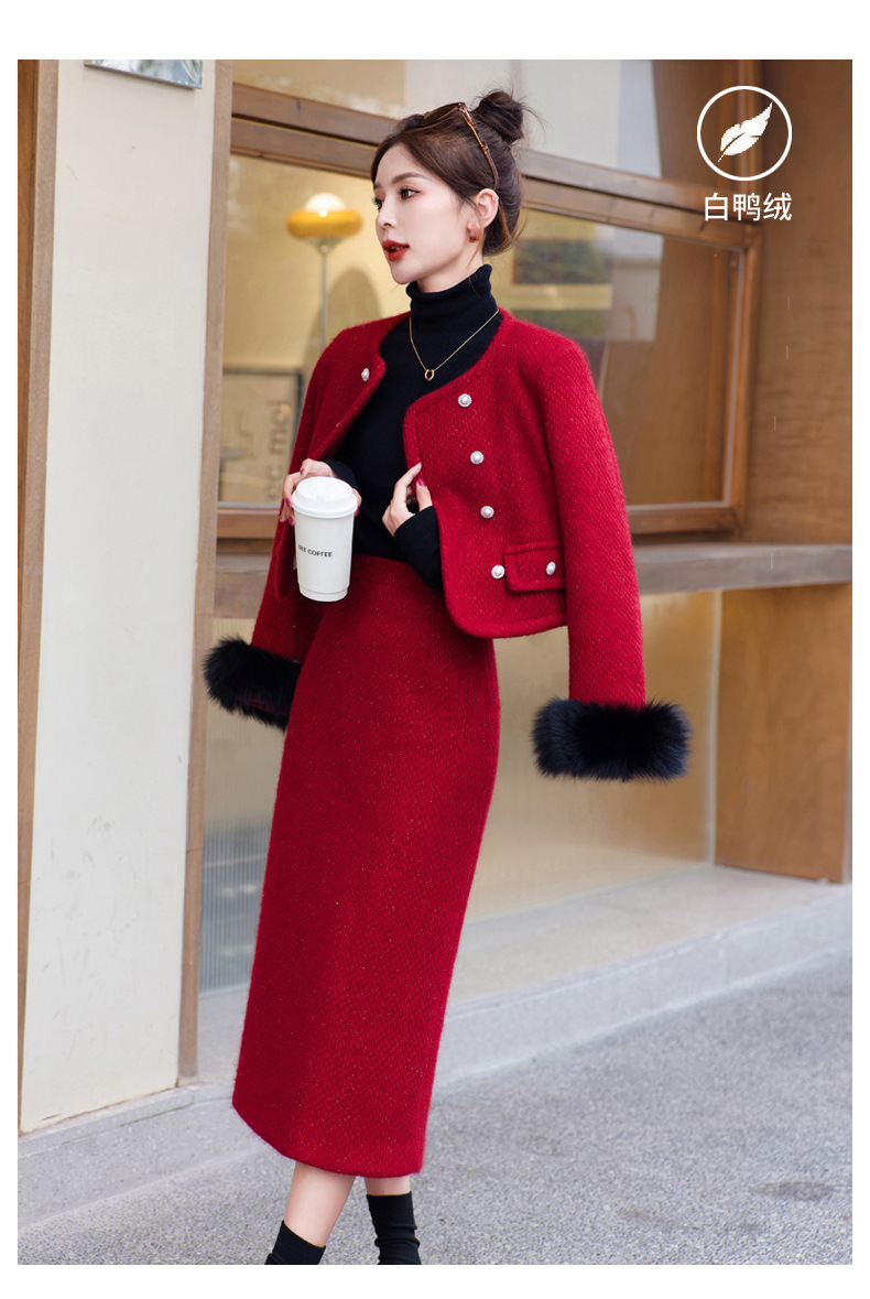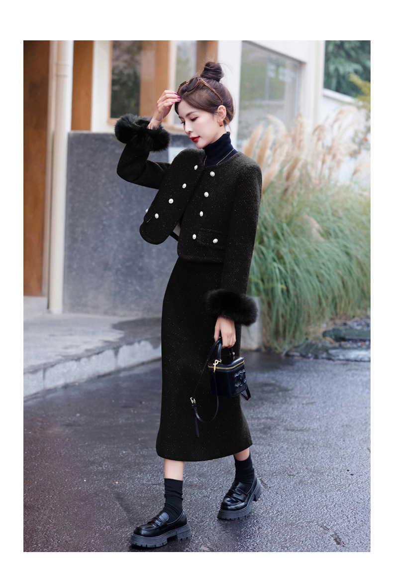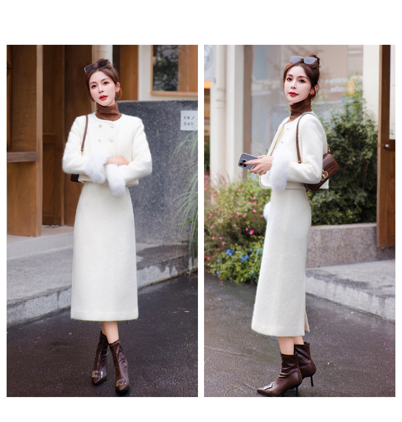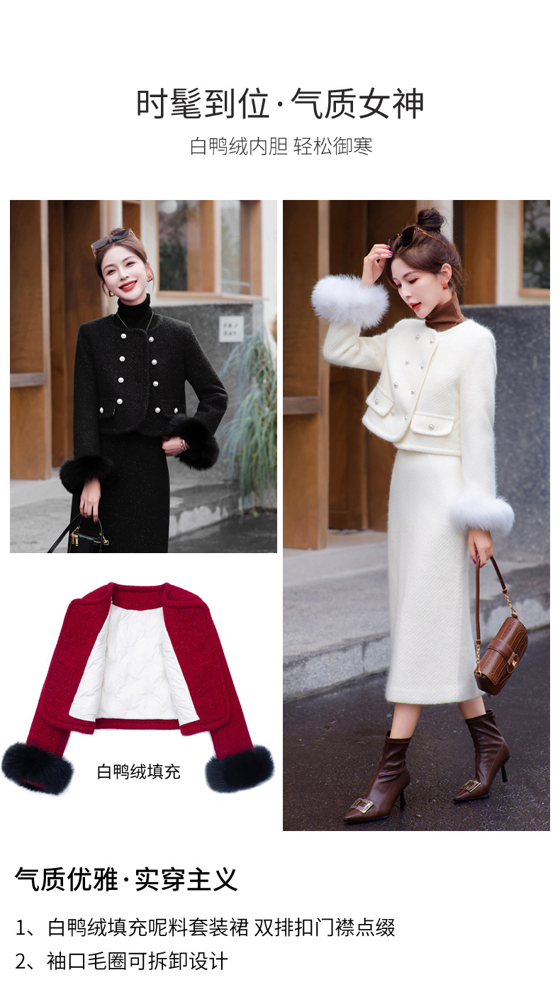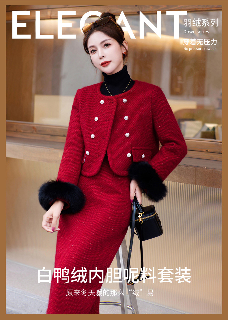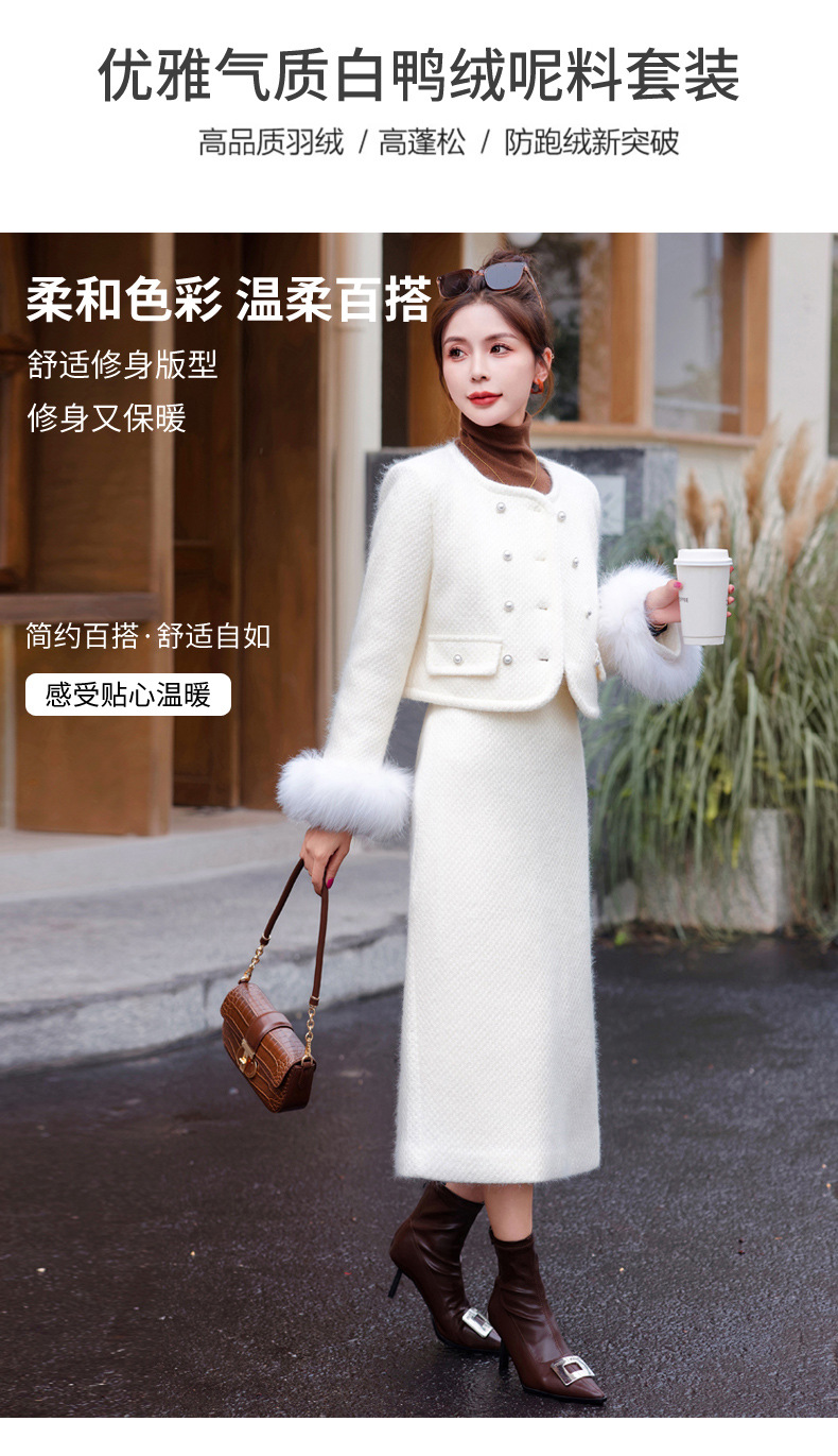 Bộ trang phục hai mảnh dành cho mùa lạnh, gồm áo khoác và chân váy. Áo được lót bên trong bằng lớp lông vũ nhẹ ấm, giúp giữ nhiệt tốt. Kiểu dáng thiết kế mang phong cách trẻ trung, thanh lịch. Chất liệu bên ngoài là dạng dệt dày dặn, ít thấm nước. Phối hợp cùng chân váy đồng bộ, tạo vẻ chỉn chu. Có thể mặc nguyên bộ hoặc phối với các trang phục khác. Phù hợp cho nhiều dịp đi làm, đi chơi hay dự tiệc nhẹ trong tiết trời se lạnh. | Tên sản phẩm: Áo Khoác Nữ Cả Bộ 2 Món Hàng Mùa Xuân Thu Đông - Thời Trang Nữ | Mã sản phẩm: B6547 - Giá: 3.750.000đ | Mã nhà sản xuất: HADG-G06Hình ảnh sản phẩm