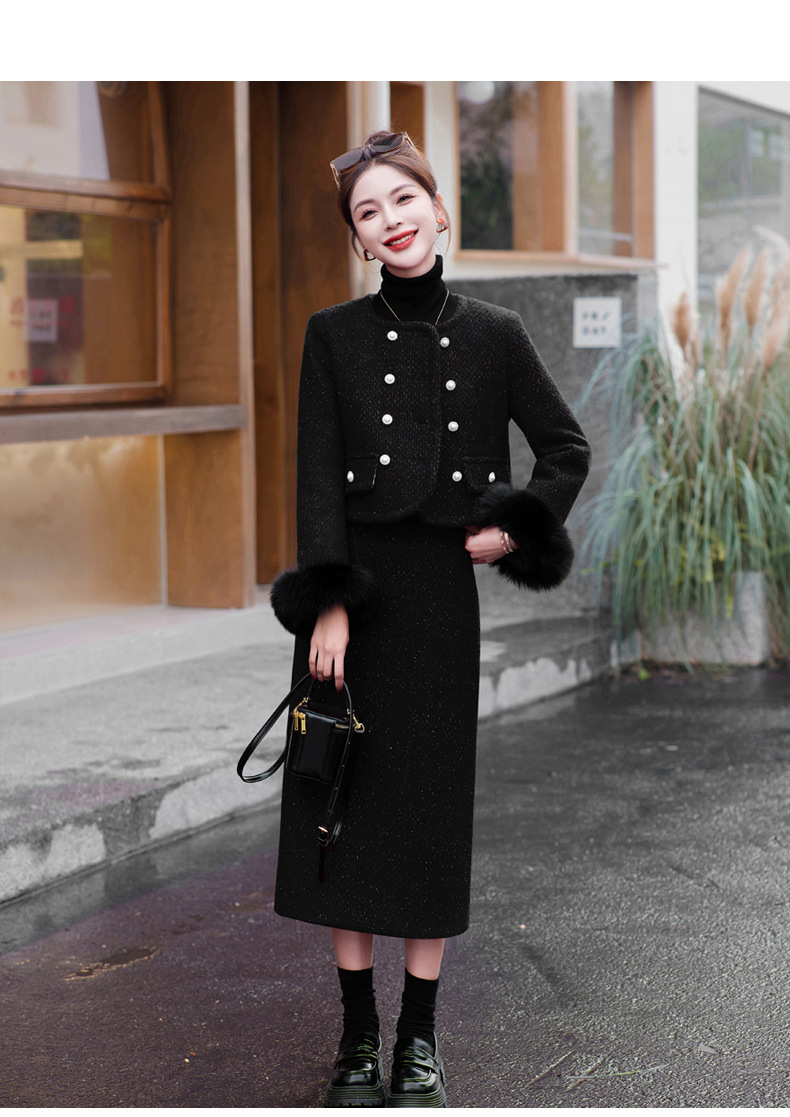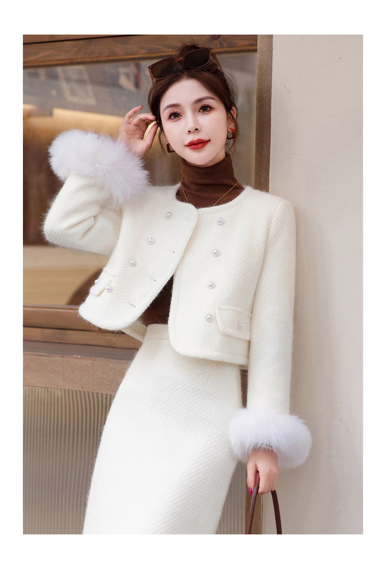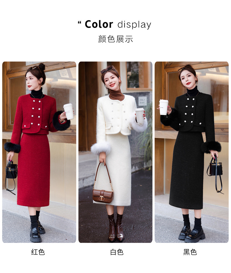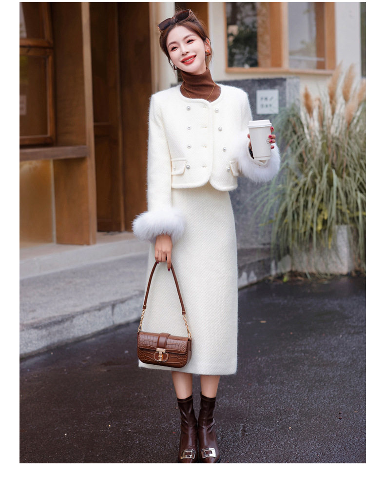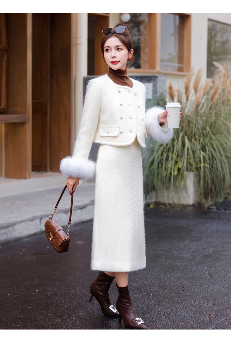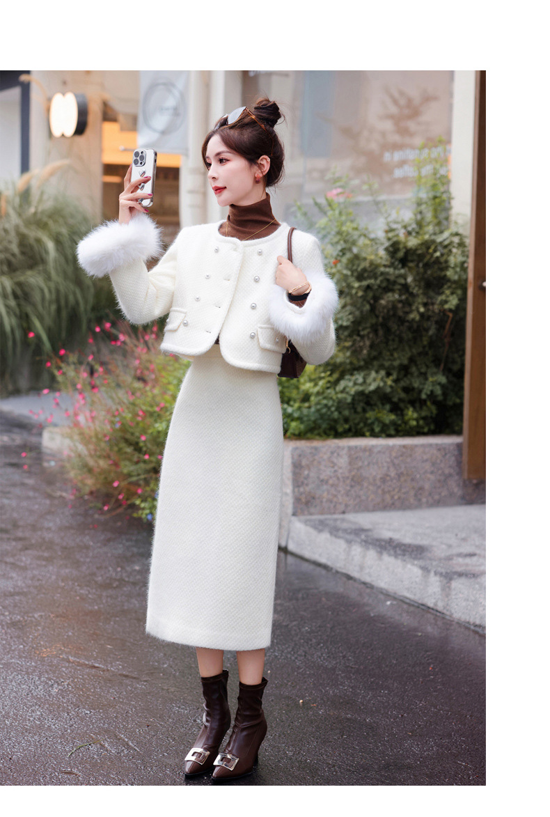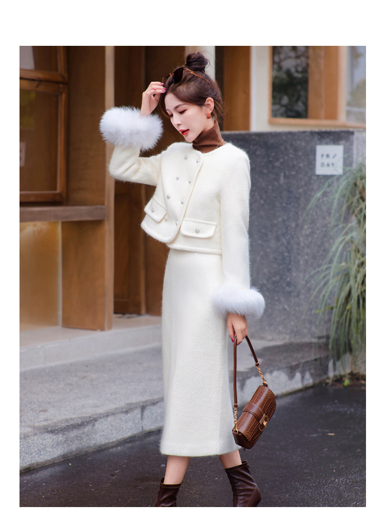 Bộ trang phục hai mảnh dành cho mùa lạnh, gồm áo khoác và chân váy. Áo được lót bên trong bằng lớp lông vũ nhẹ ấm, giúp giữ nhiệt tốt. Kiểu dáng thiết kế mang phong cách trẻ trung, thanh lịch. Chất liệu bên ngoài là dạng dệt dày dặn, ít thấm nước. Phối hợp cùng chân váy đồng bộ, tạo vẻ chỉn chu. Có thể mặc nguyên bộ hoặc phối với các trang phục khác. Phù hợp cho nhiều dịp đi làm, đi chơi hay dự tiệc nhẹ trong tiết trời se lạnh. | Tên sản phẩm: Áo Khoác Nữ Cả Bộ 2 Món Hàng Mùa Xuân Thu Đông - Thời Trang Nữ | Mã sản phẩm: B6547 - Giá: 3.750.000đ | Mã nhà sản xuất: HADG-G06Hình ảnh sản phẩm