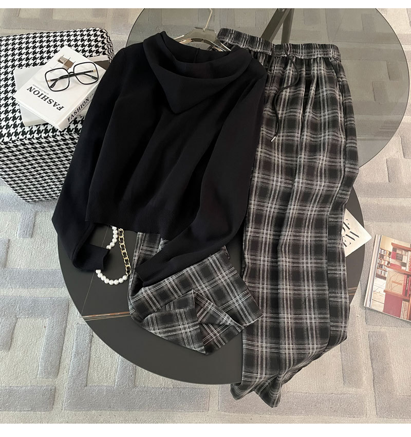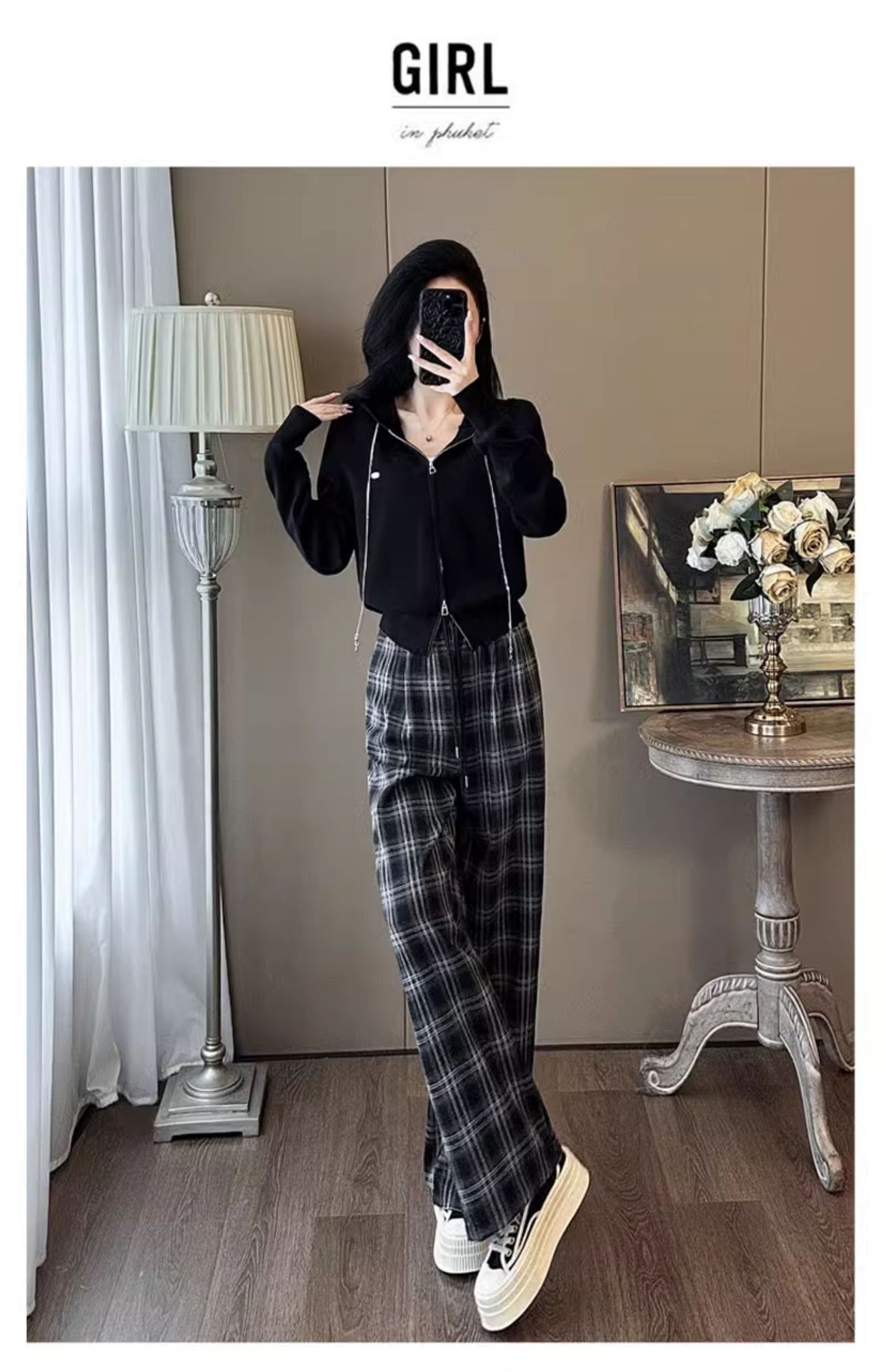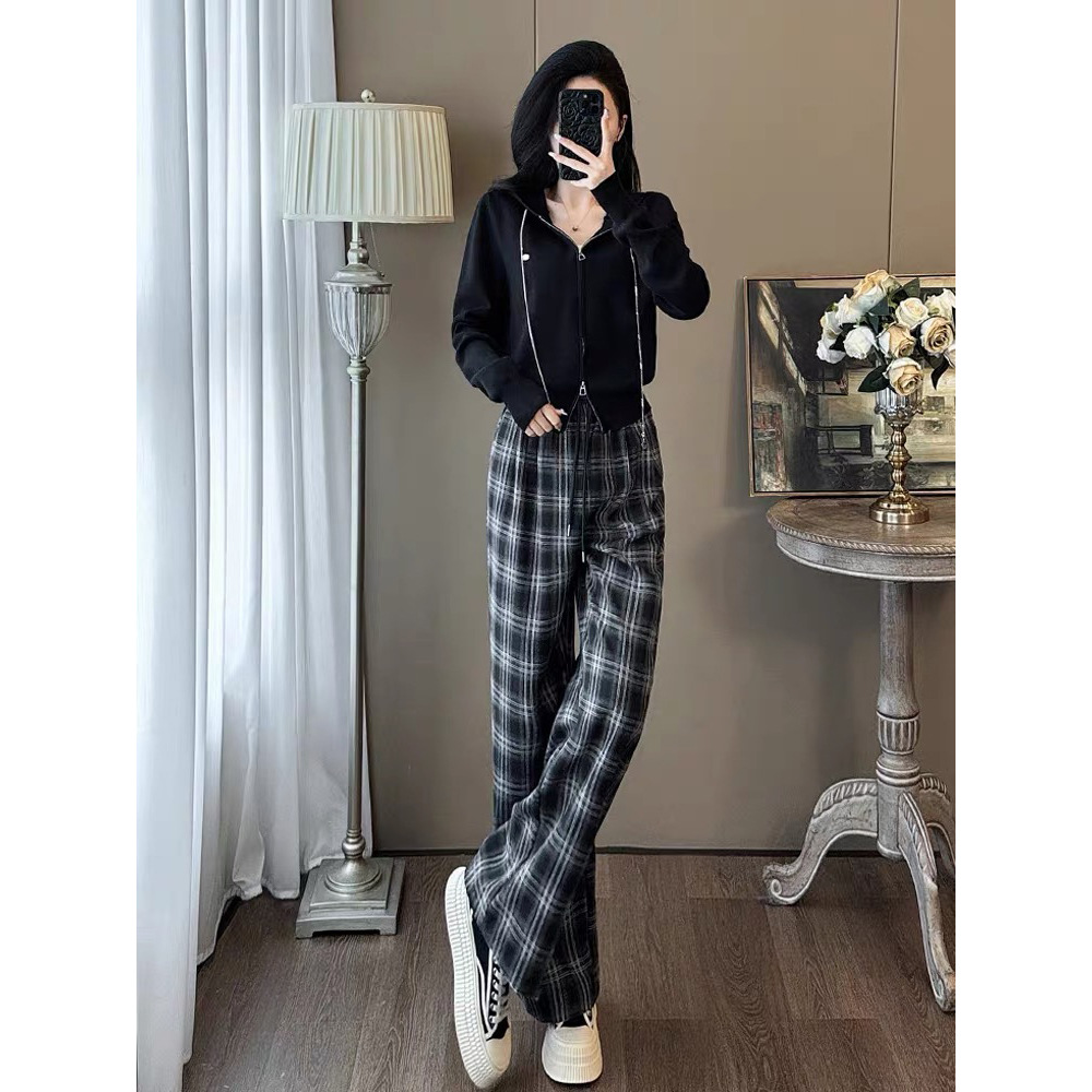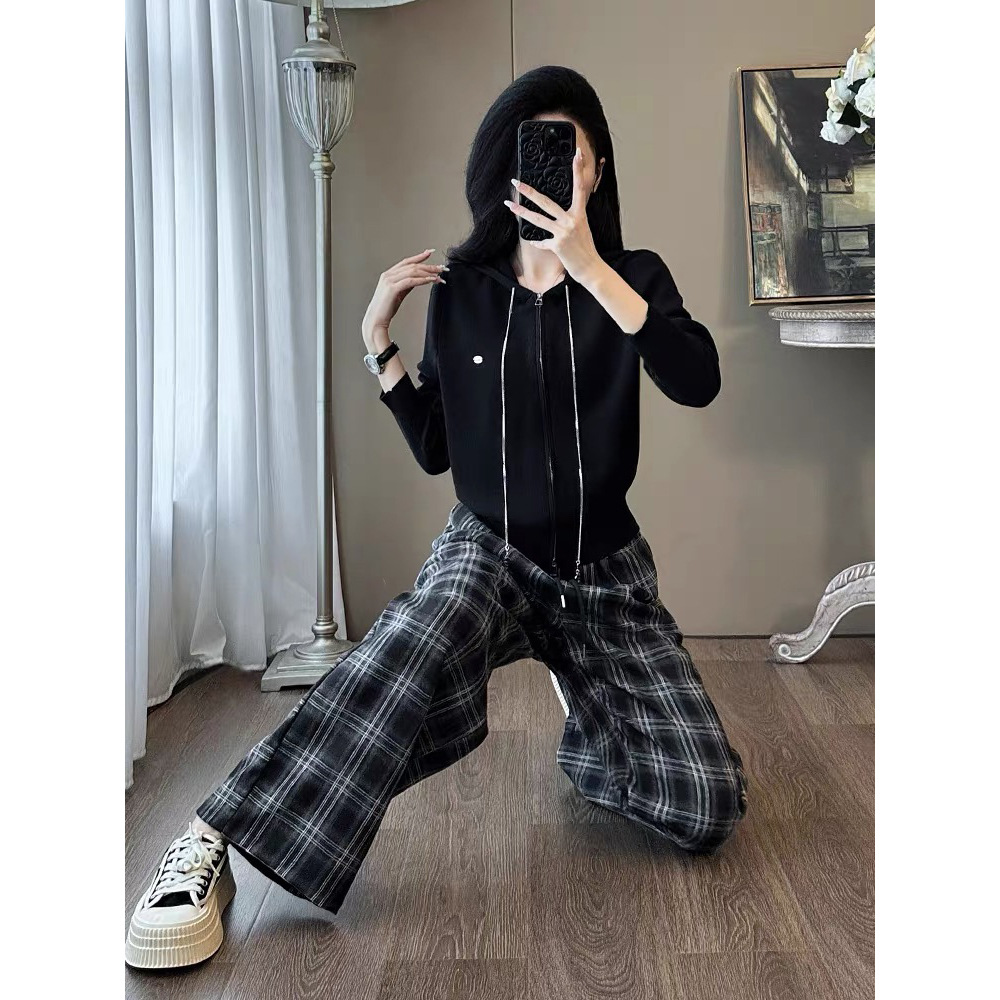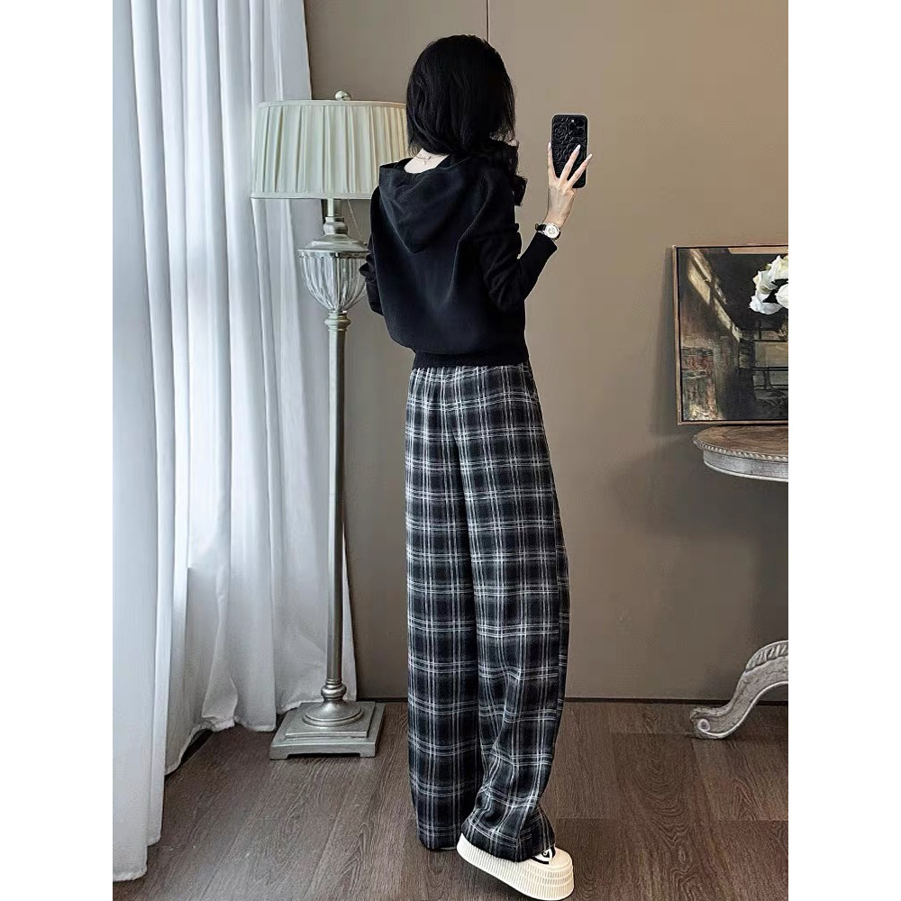 Bộ trang phục nữ này gồm áo khoác dáng ngắn màu đen và quần ống rộng họa tiết kẻ caro. Thiết kế tạo điểm nhấn ở eo, giúp tôn dáng người mặc. Chất vải dày dặn, phù hợp giữ ấm trong tiết trời se lạnh. Bạn có thể mặc nguyên bộ để có phong cách đồng bộ, hoặc phối với các trang phục khác. Sản phẩm dễ dàng kết hợp, mang đến vẻ ngoại hình trẻ trung, năng động. | Tên sản phẩm: Áo Khoác Nữ Cả Bộ 2 Món Kẻ Caro Trông Trẻ Hơn Tuổi Hàng Mùa Xuân Thu Đông - Thời Trang Nữ | Mã sản phẩm: C0040 - Giá: 1.440.000đ | Mã nhà sản xuất: AIANOR-G04Hình ảnh sản phẩm