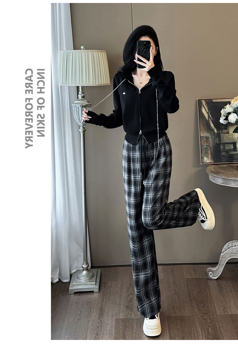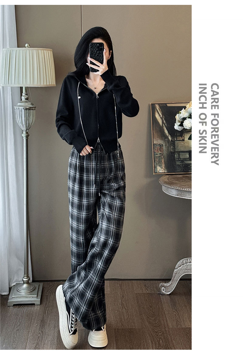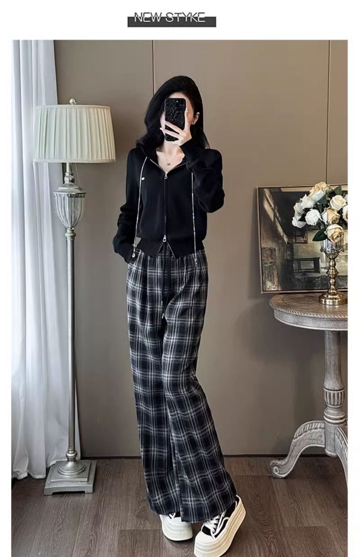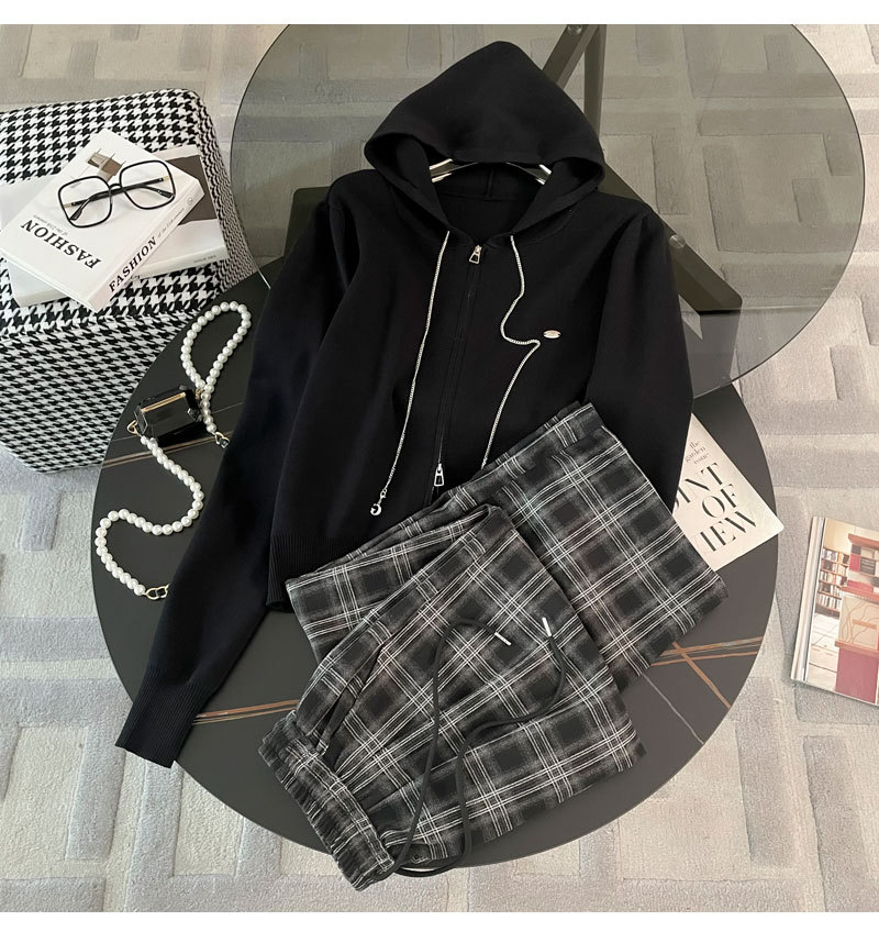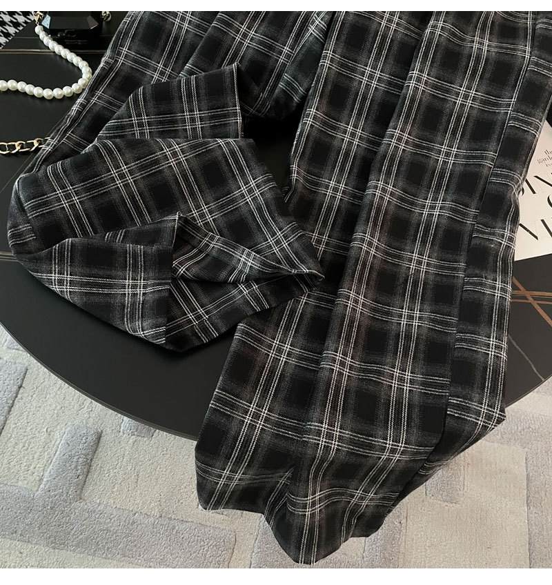 Bộ trang phục nữ này gồm áo khoác dáng ngắn màu đen và quần ống rộng họa tiết kẻ caro. Thiết kế tạo điểm nhấn ở eo, giúp tôn dáng người mặc. Chất vải dày dặn, phù hợp giữ ấm trong tiết trời se lạnh. Bạn có thể mặc nguyên bộ để có phong cách đồng bộ, hoặc phối với các trang phục khác. Sản phẩm dễ dàng kết hợp, mang đến vẻ ngoại hình trẻ trung, năng động. | Tên sản phẩm: Áo Khoác Nữ Cả Bộ 2 Món Kẻ Caro Trông Trẻ Hơn Tuổi Hàng Mùa Xuân Thu Đông - Thời Trang Nữ | Mã sản phẩm: C0040 - Giá: 1.440.000đ | Mã nhà sản xuất: AIANOR-G04Hình ảnh sản phẩm