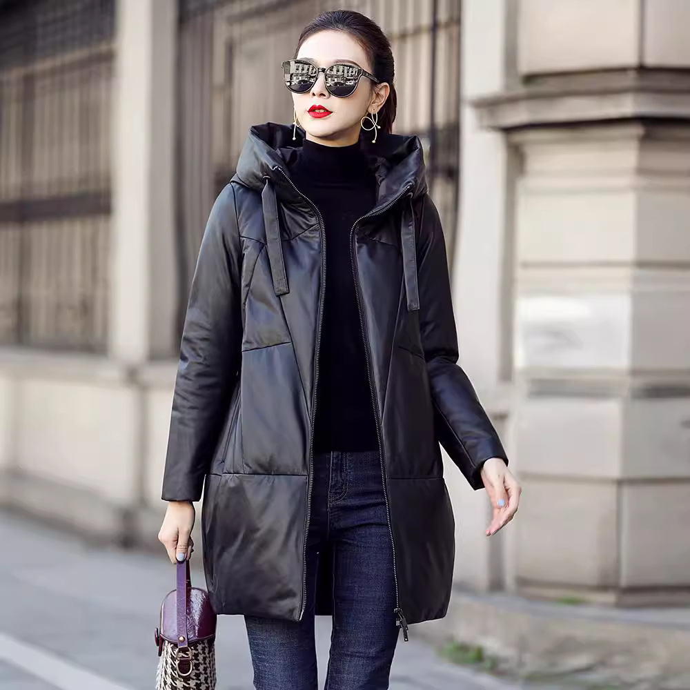 Áo khoác nữ dáng dài, được làm từ chất liệu da cừu mềm mại kết hợp cùng lớp lông vũ ấm áp bên trong. Kiểu dáng thời trang, phù hợp mặc trong những ngày thời tiết lạnh. Sản phẩm có thiết kế đơn giản, dễ dàng phối cùng nhiều loại trang phục khác nhau. Khi mặc, chỉ cần giữ sản phẩm tránh xa các vật sắc nhọn và vệ sinh nhẹ nhàng bằng khăn ẩm để giữ được độ bền đẹp. | Tên sản phẩm: Áo Khoác Nữ Chất Liệu Da Bò Hàng Mùa Xuân Thu Đông - Thời Trang Nữ | Mã sản phẩm: B8173 - Giá: 5.090.000đ | Mã nhà sản xuất: HADG-G06Hình ảnh sản phẩm