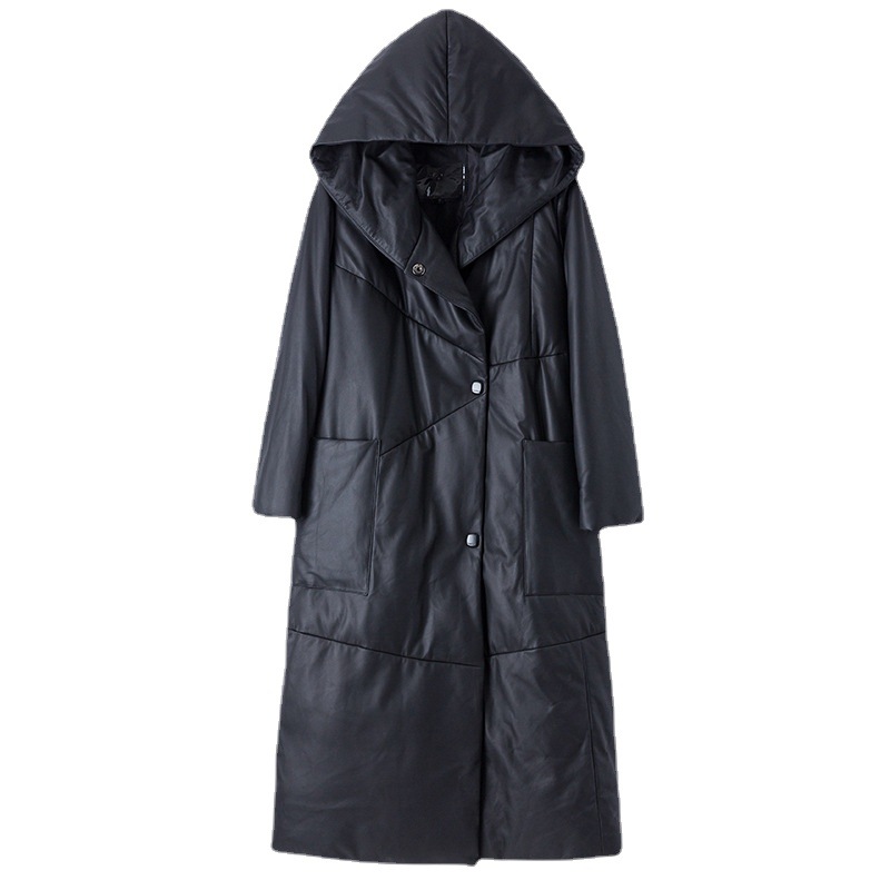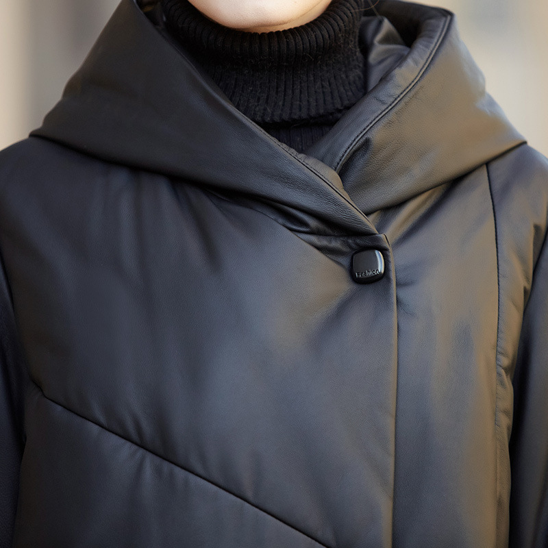Áo khoác dáng dài cho nữ, thiết kế kiểu áo liền mũ trùm tạo vẻ ngoài năng động. Sản phẩm được làm từ chất liệu da cừu mềm mại, bên trong có lớp lông vũ giữ ấm tốt, phù hợp cho thời tiết lạnh. Kiểu dáng rộng rãi giúp che đi khuyết điểm cơ thể và tạo cảm giác dễ chịu khi mặc. Bạn có thể mặc chiếc áo này để đi làm, đi chơi hoặc trong các hoạt động ngoài trời. | Tên sản phẩm: Áo Khoác Nữ Chất Liệu Da Bò Mũ Liền Dày Ấm Hàng Mùa Xuân Thu Đông - Thời Trang Nữ | Mã sản phẩm: G2568 - Giá: 6.660.000đ | Mã nhà sản xuất: HADGA-G06Hình ảnh sản phẩm