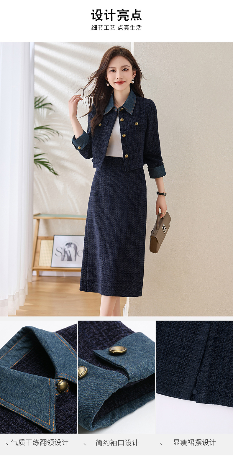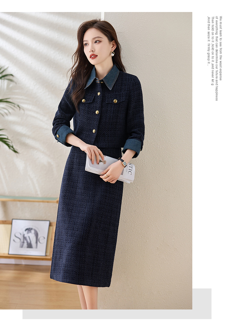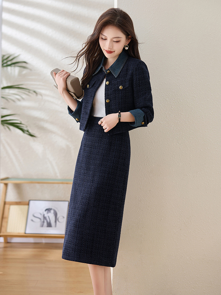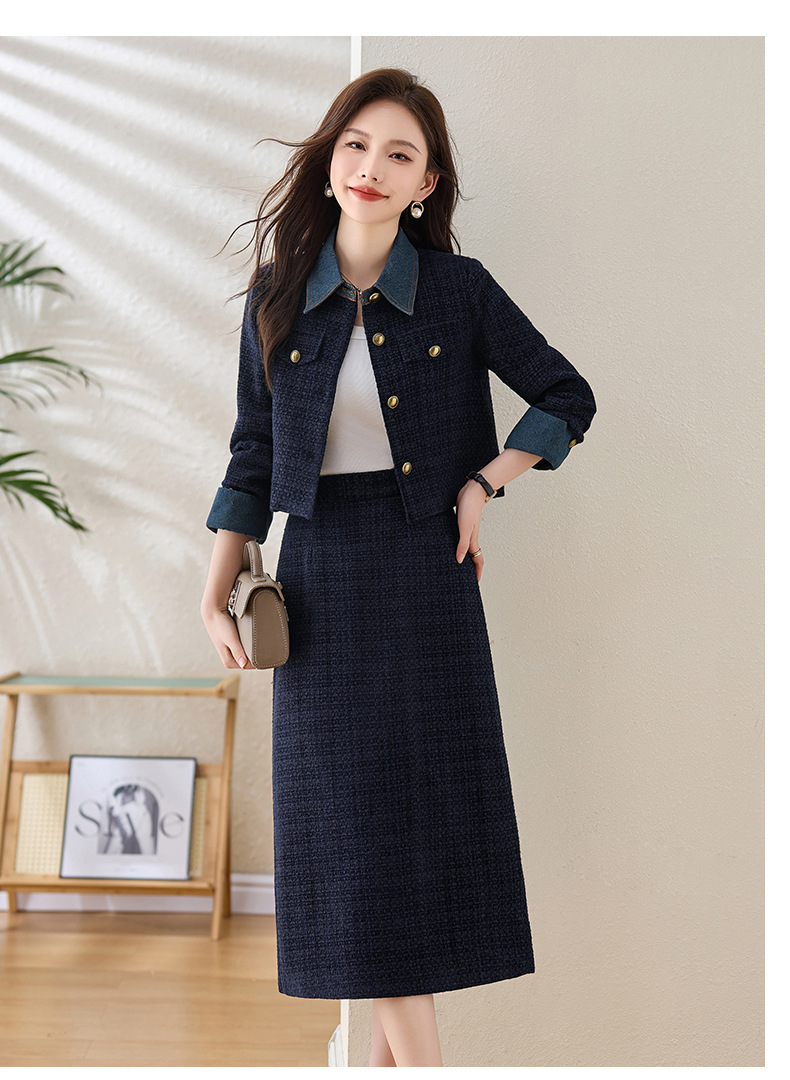 Bộ trang phục thời trang gồm áo khoác và chân váy, mang phong cách trẻ trung, năng động. Áo khoác kiểu dáng cổ điển, dễ mặc. Chân váy xòe nhẹ nhàng, tôn dáng người mặc. Chất liệu vải bền đẹp, thoải mái cho những ngày thu mát mẻ. Có thể phối cùng áo thun và giày thể thao để tạo vẻ ngoài cá tính. Phù hợp cho nhiều dịp đi chơi, gặp gỡ bạn bè. | Tên sản phẩm: Áo Khoác Nữ Chất Liệu Jean Bò Cả Bộ 2 Món Hàng Mùa Xuân Thu Đông Phong Cách Hàn Quốc - Thời Trang Nữ | Mã sản phẩm: B5709 - Giá: 2.130.000đ | Mã nhà sản xuất: HADG-G05Hình ảnh sản phẩm
