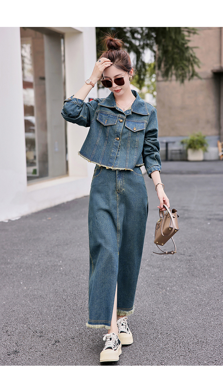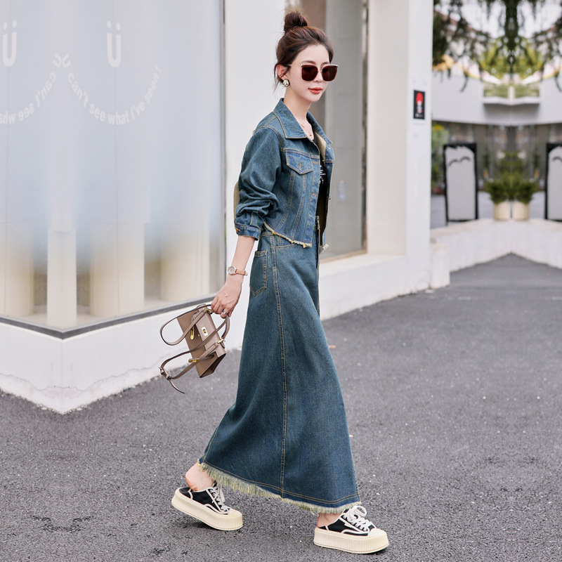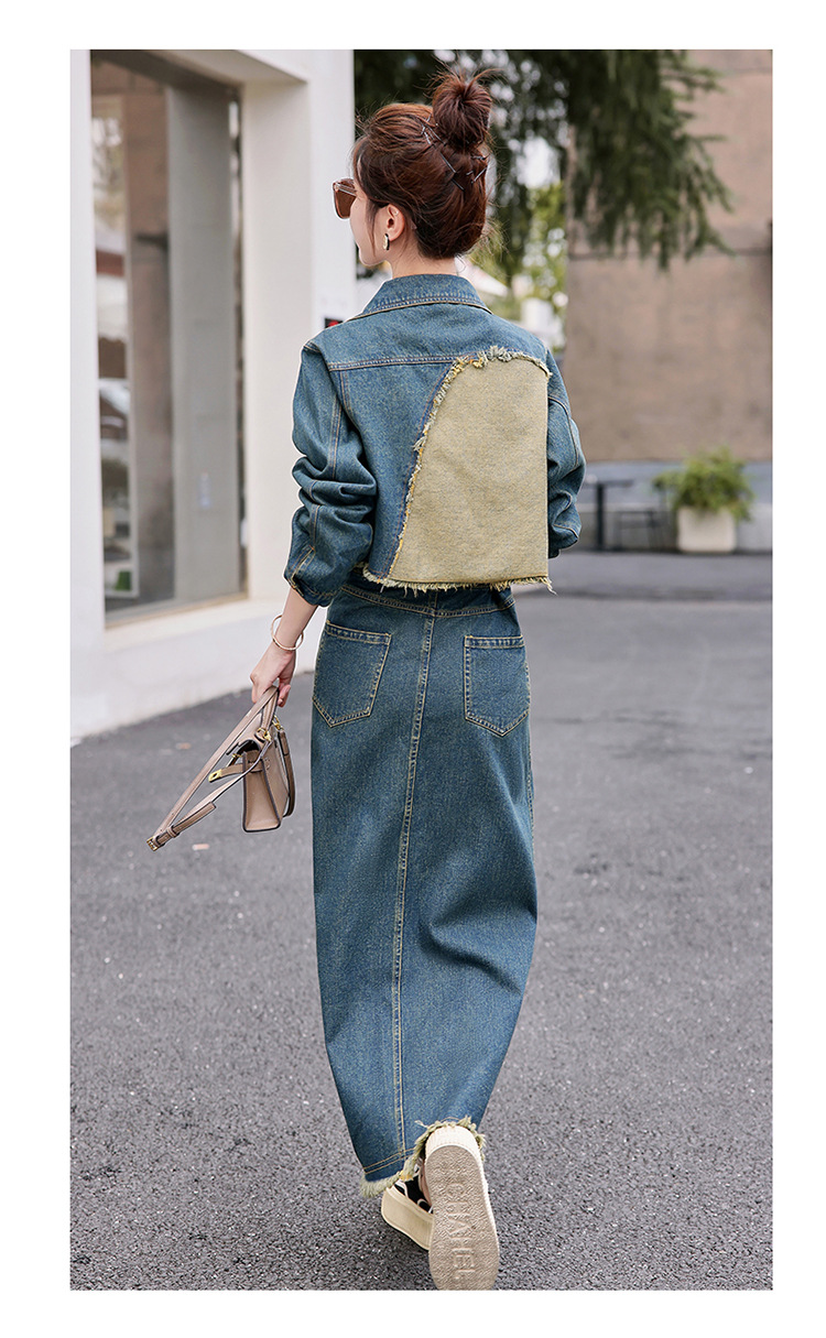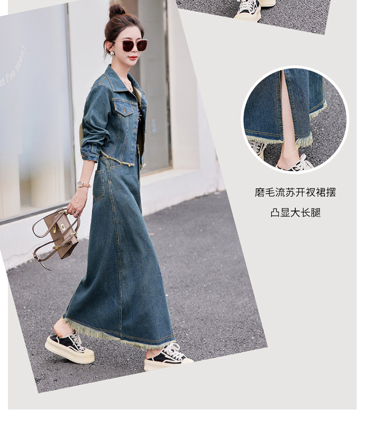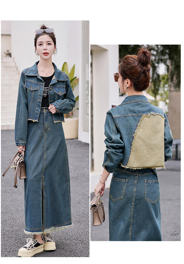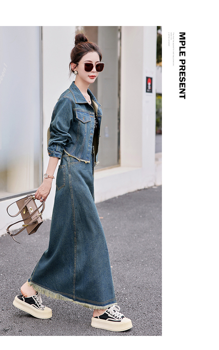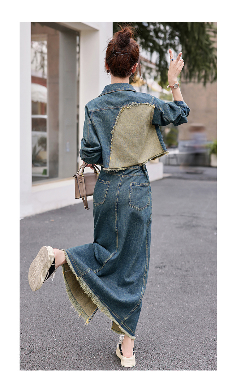 Bộ trang phục này gồm chân váy dài đến mắt cá chân và áo khoác kiểu ráp nối. Chất liệu vải dệt kim mang đến cảm giác mặc thoải mái, phù hợp cho tiết trời mùa xuân. Thiết kế cổ điển với phần eo cao giúp tôn dáng người mặc. Có thể kết hợp cùng áo thun bên trong và giày thể thao để tạo phong cách năng động. Món đồ dễ dàng phối hợp cho nhiều dịp sinh hoạt hằng ngày. | Tên sản phẩm: Áo Khoác Nữ Chất Liệu Jean Bò Cả Bộ 2 Món Trông Trẻ Hơn Tuổi Hàng Mùa Xuân Thu Đông - Thời Trang Nữ | Mã sản phẩm: L3649 - Giá: 2.160.000đ | Mã nhà sản xuất: WODIG-G05Hình ảnh sản phẩm