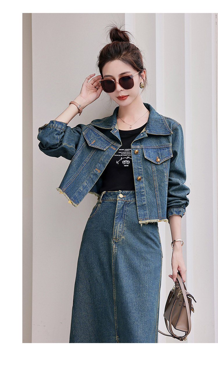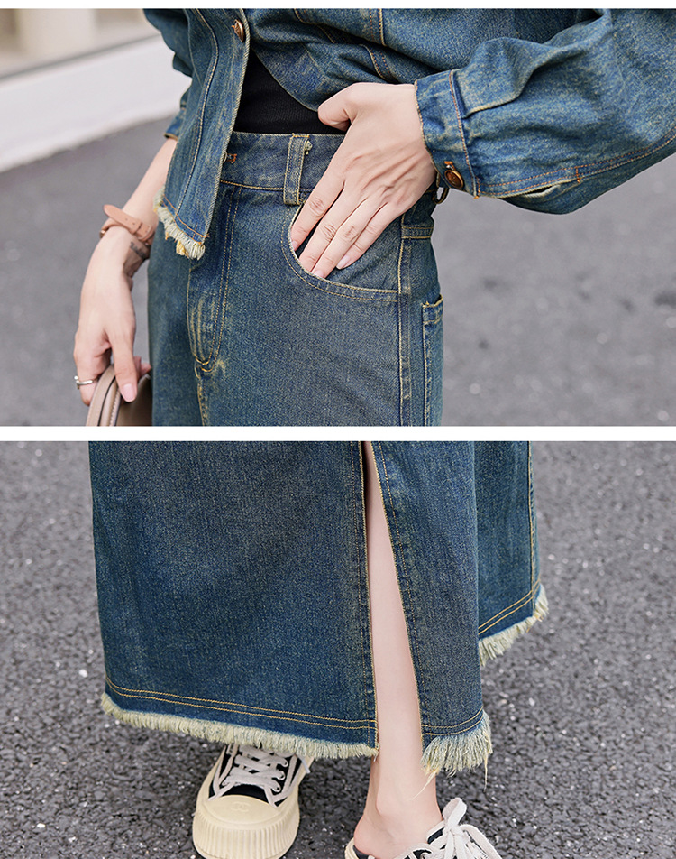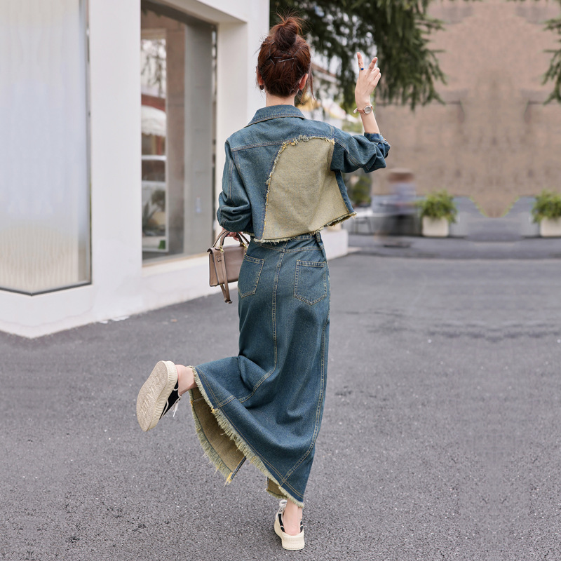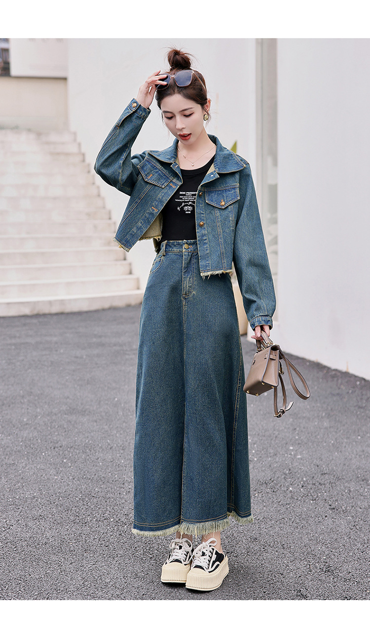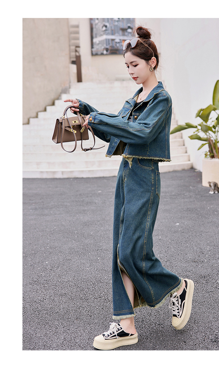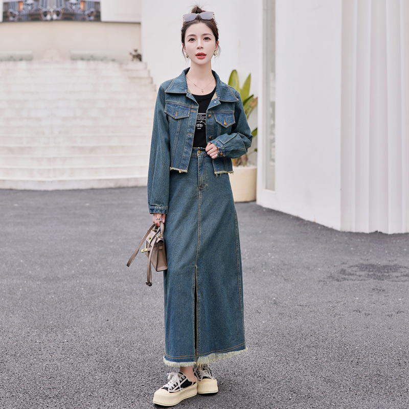 Bộ trang phục này gồm chân váy dài đến mắt cá chân và áo khoác kiểu ráp nối. Chất liệu vải dệt kim mang đến cảm giác mặc thoải mái, phù hợp cho tiết trời mùa xuân. Thiết kế cổ điển với phần eo cao giúp tôn dáng người mặc. Có thể kết hợp cùng áo thun bên trong và giày thể thao để tạo phong cách năng động. Món đồ dễ dàng phối hợp cho nhiều dịp sinh hoạt hằng ngày. | Tên sản phẩm: Áo Khoác Nữ Chất Liệu Jean Bò Cả Bộ 2 Món Trông Trẻ Hơn Tuổi Hàng Mùa Xuân Thu Đông - Thời Trang Nữ | Mã sản phẩm: L3649 - Giá: 2.160.000đ | Mã nhà sản xuất: WODIG-G05Hình ảnh sản phẩm