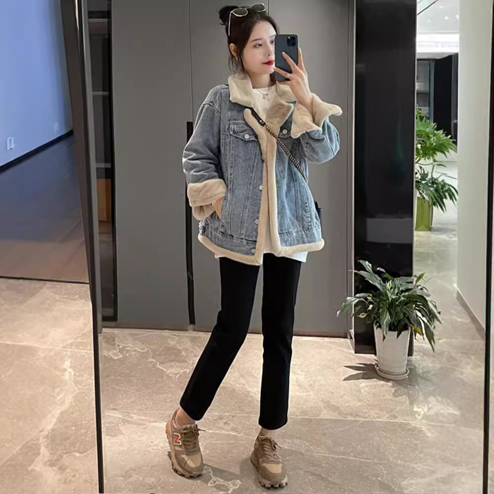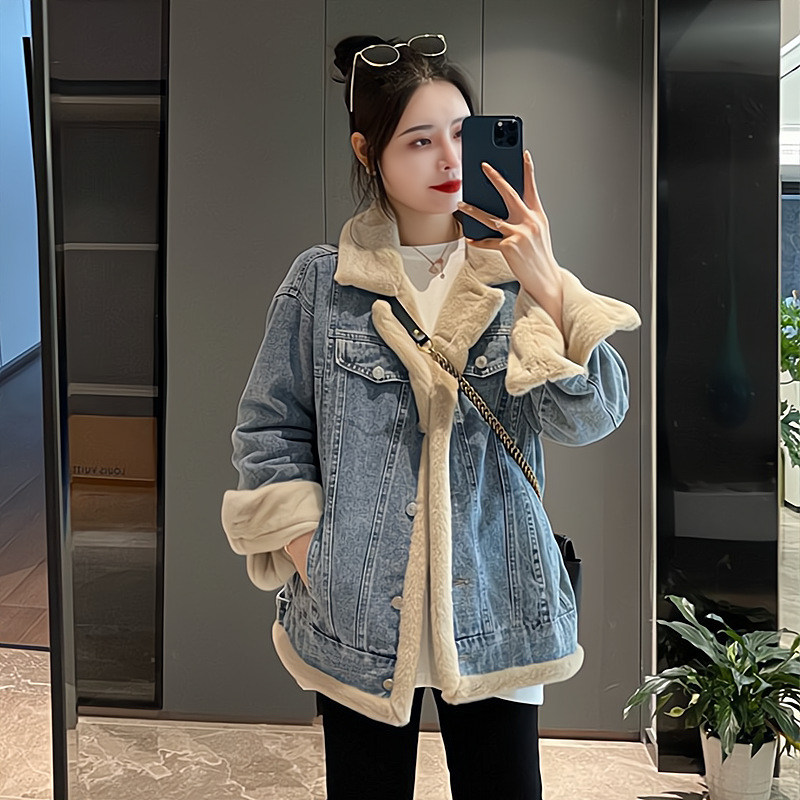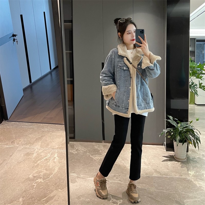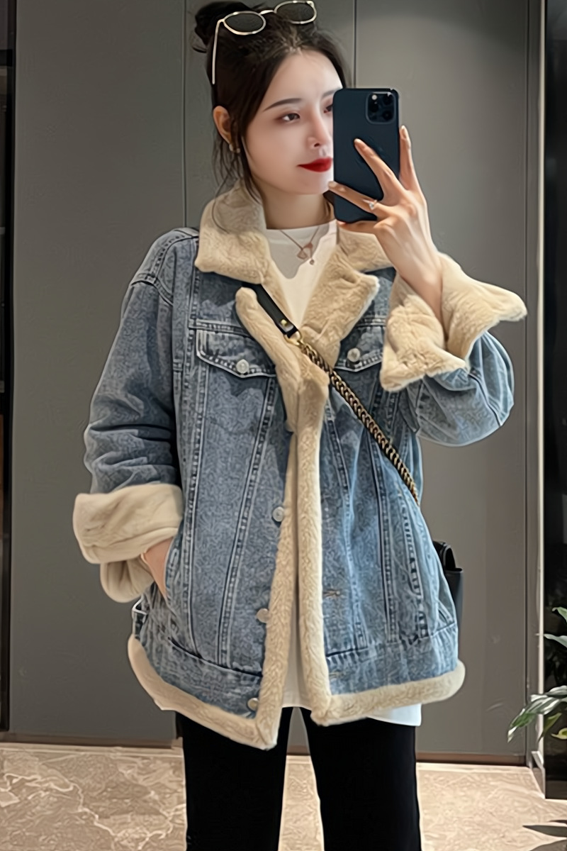 Áo khoác nữ dáng rộng, có lớp lót bông ấm áp, hoàn hảo cho mùa đông. Thiết kế mang phong cách trẻ trung, hiện đại với chất liệu dệt kim dày kết hợp lông cừu non bên trong, giữ nhiệt tốt. Bạn có thể mặc chiếc áo này để đi làm, đi chơi hay dạo phố. Cách sử dụng đơn giản, mặc trực tiếp như một chiếc áo khoác ngoài cùng với quần jeans và áo thun bên trong. | Tên sản phẩm: Áo Khoác Nữ Chất Liệu Jean Bò Dày Ấm Hàng Mùa Xuân Thu Đông Phong Cách Hàn Quốc - Thời Trang Nữ | Mã sản phẩm: K1984 - Giá: 880.000đ | Mã nhà sản xuất: SHREIA-G03Hình ảnh sản phẩm